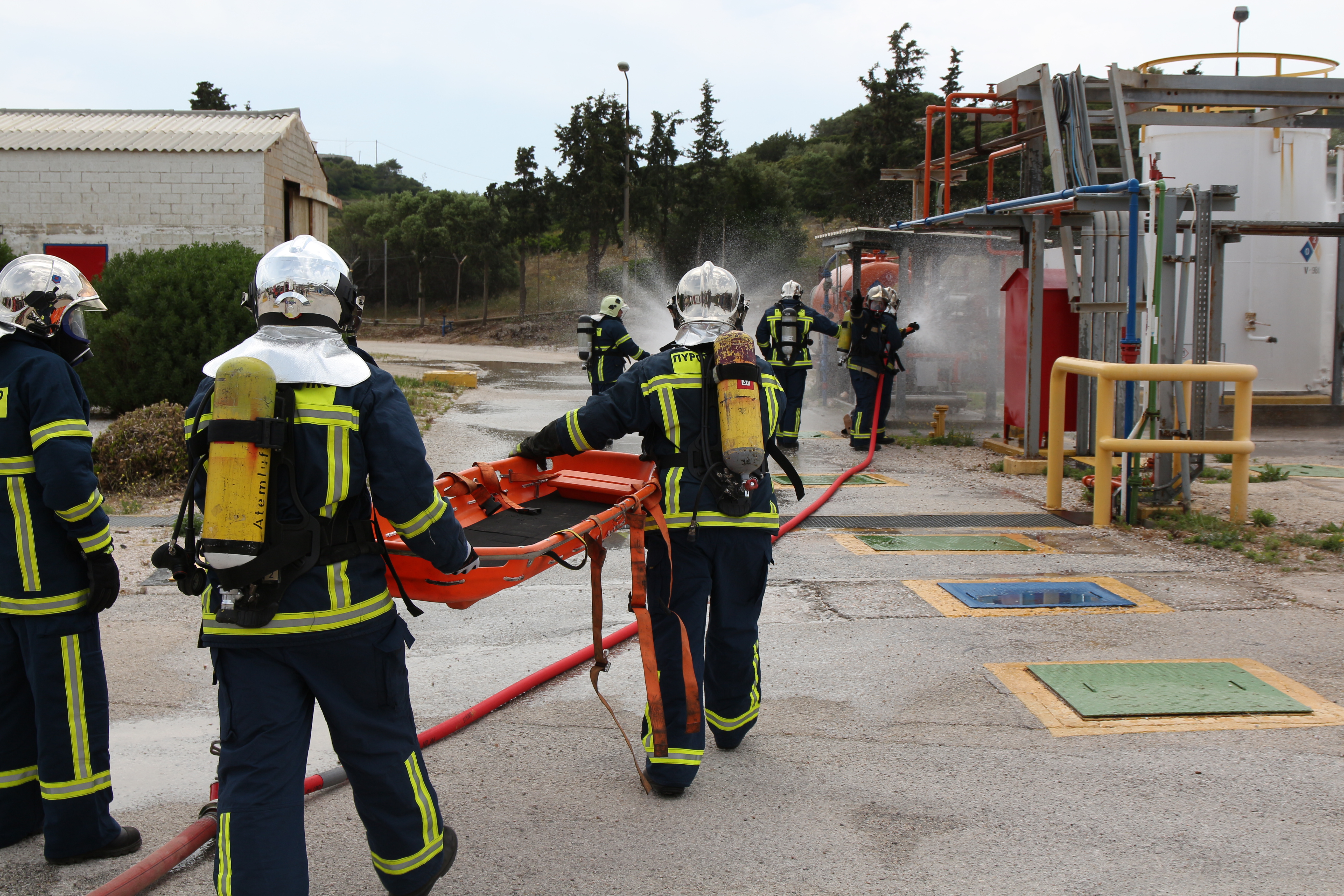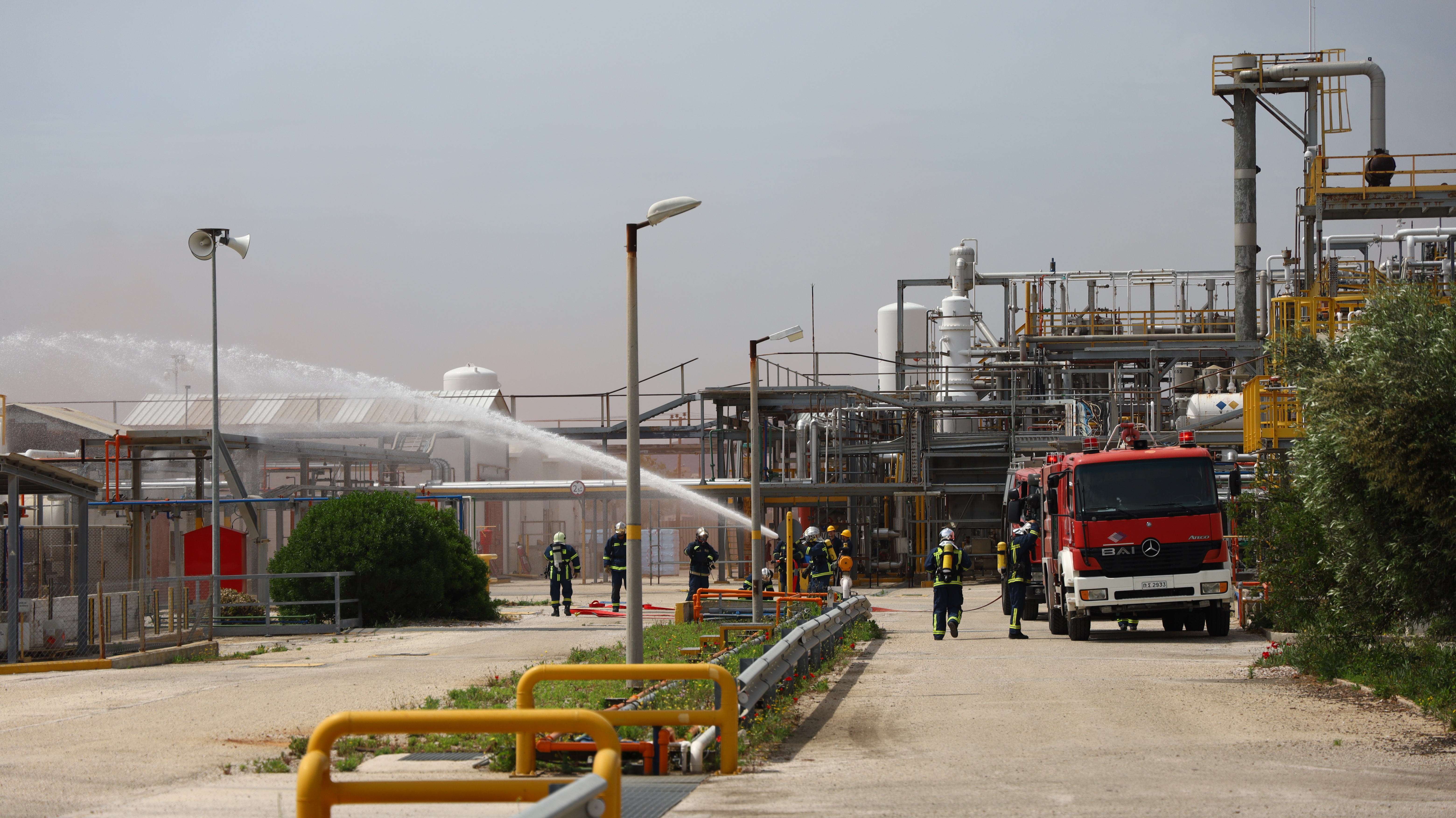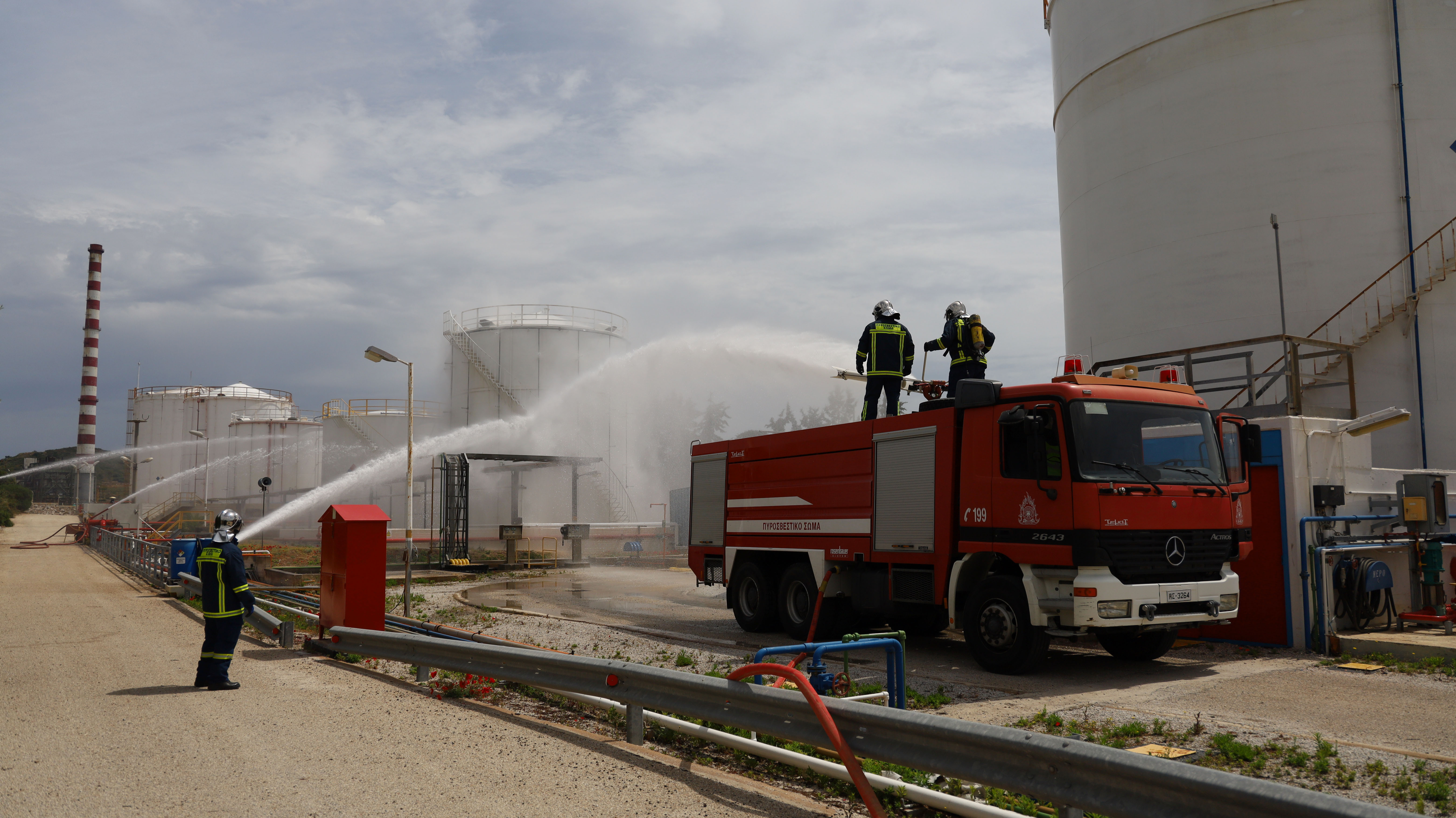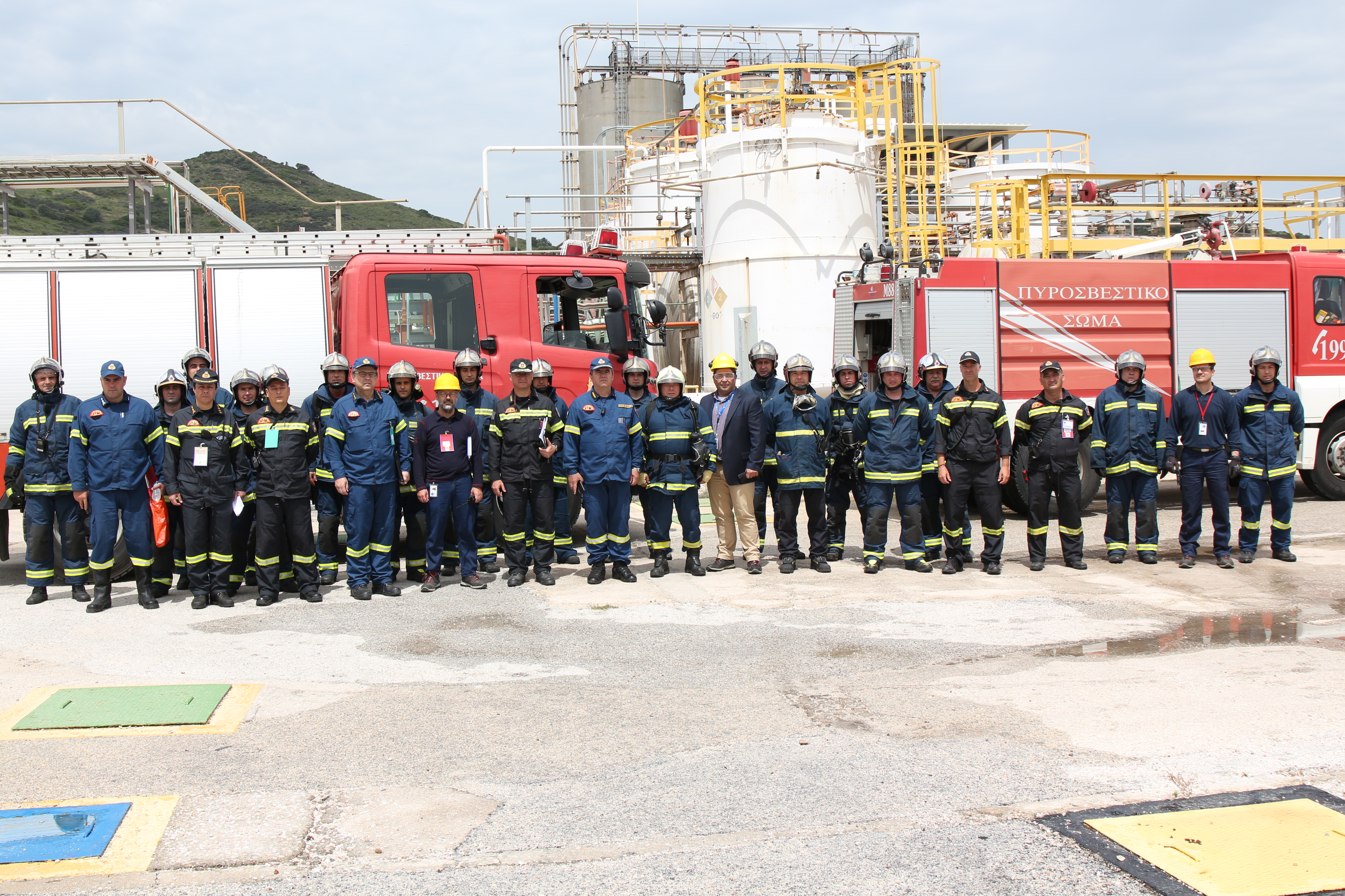Στην άσκηση έλαβαν μέρος η ομάδα πυρασφάλειας της επιχείρησης, προσωπικό και οχήματα από τις Π.Υ. Λαυρίου, Μαρκοπούλου και Κορωπίου και από την 1η Ε.Μ.Α.Κ., η ΕΛ.ΑΣ., η Τροχαία και το Ε.Κ.Α.Β.