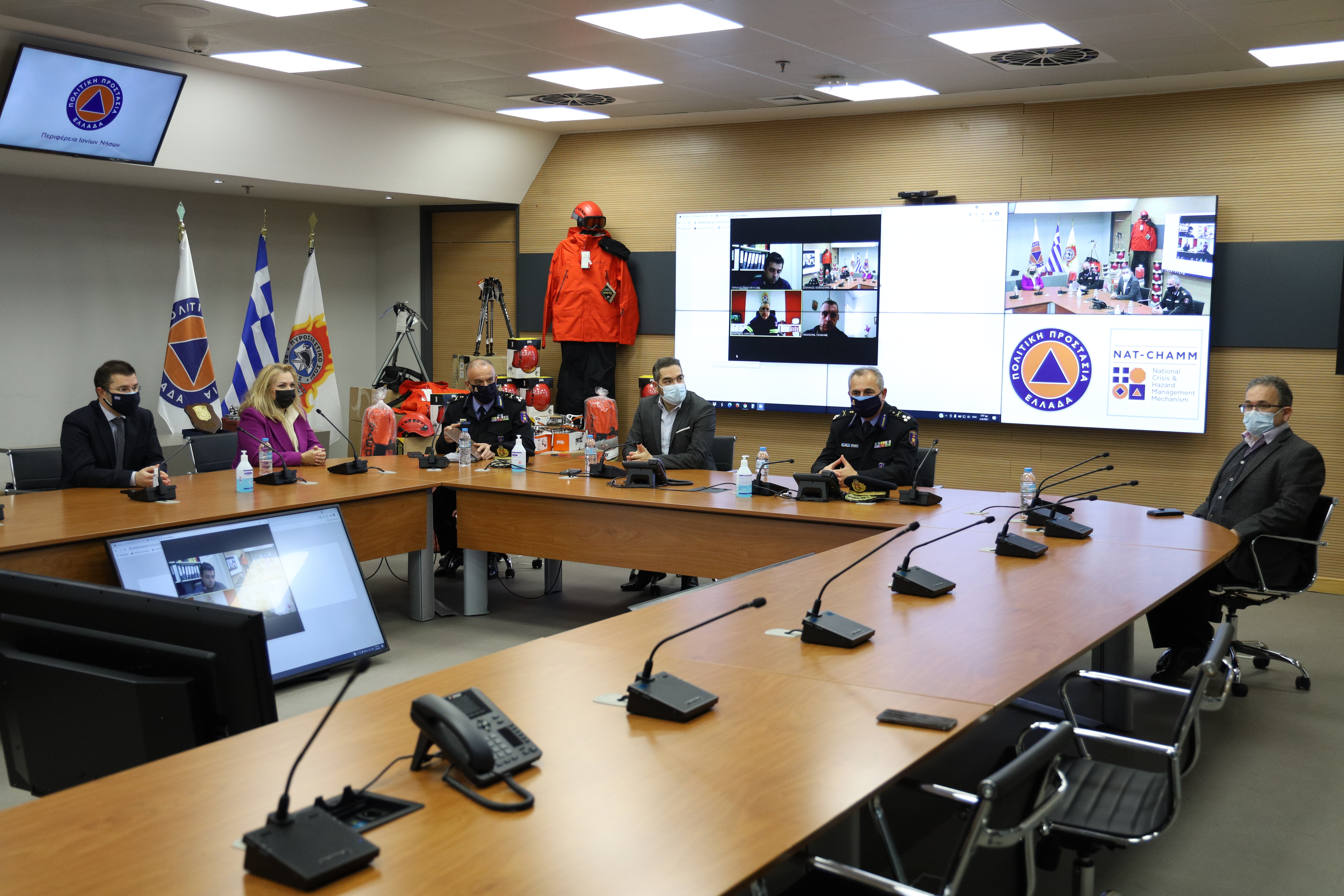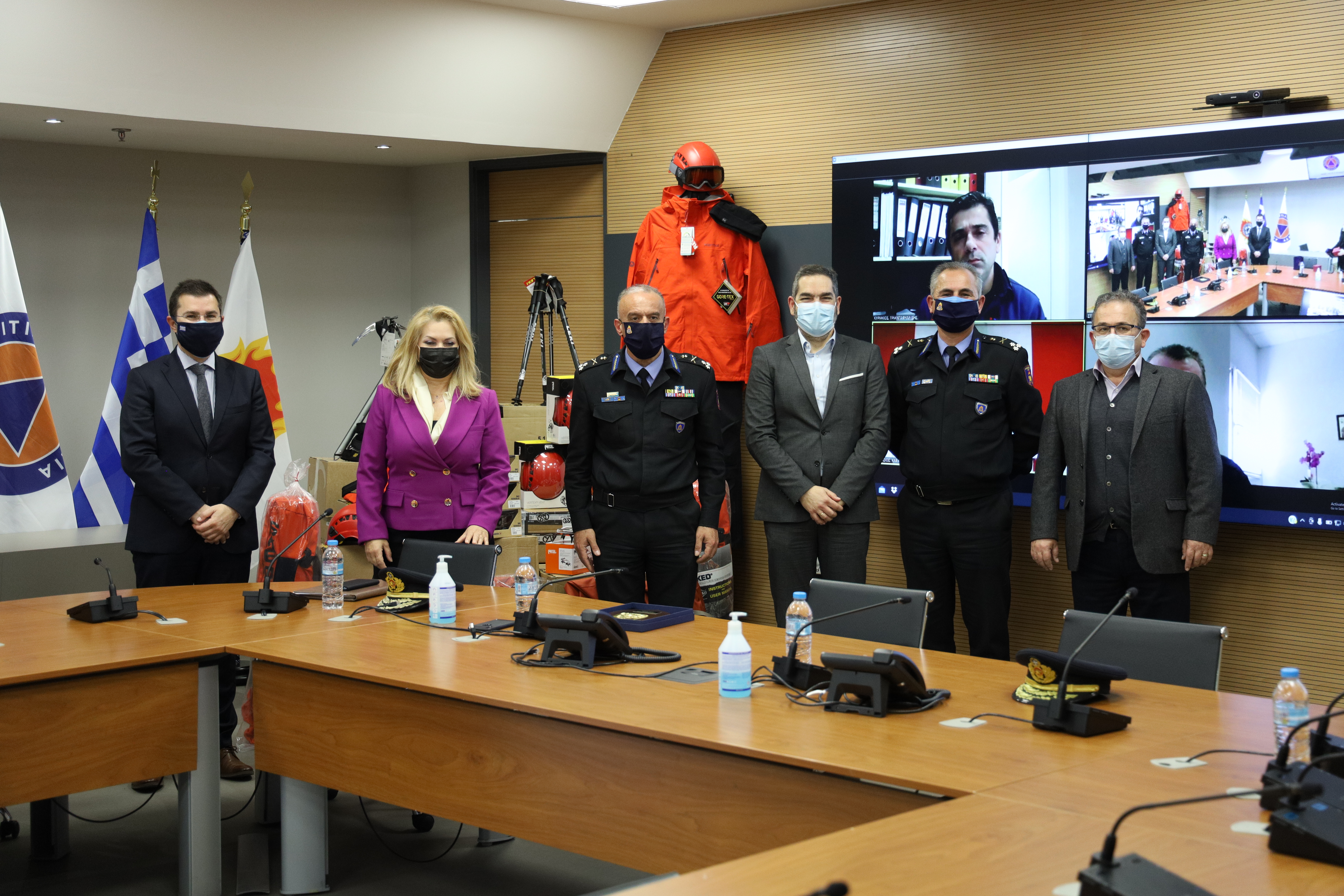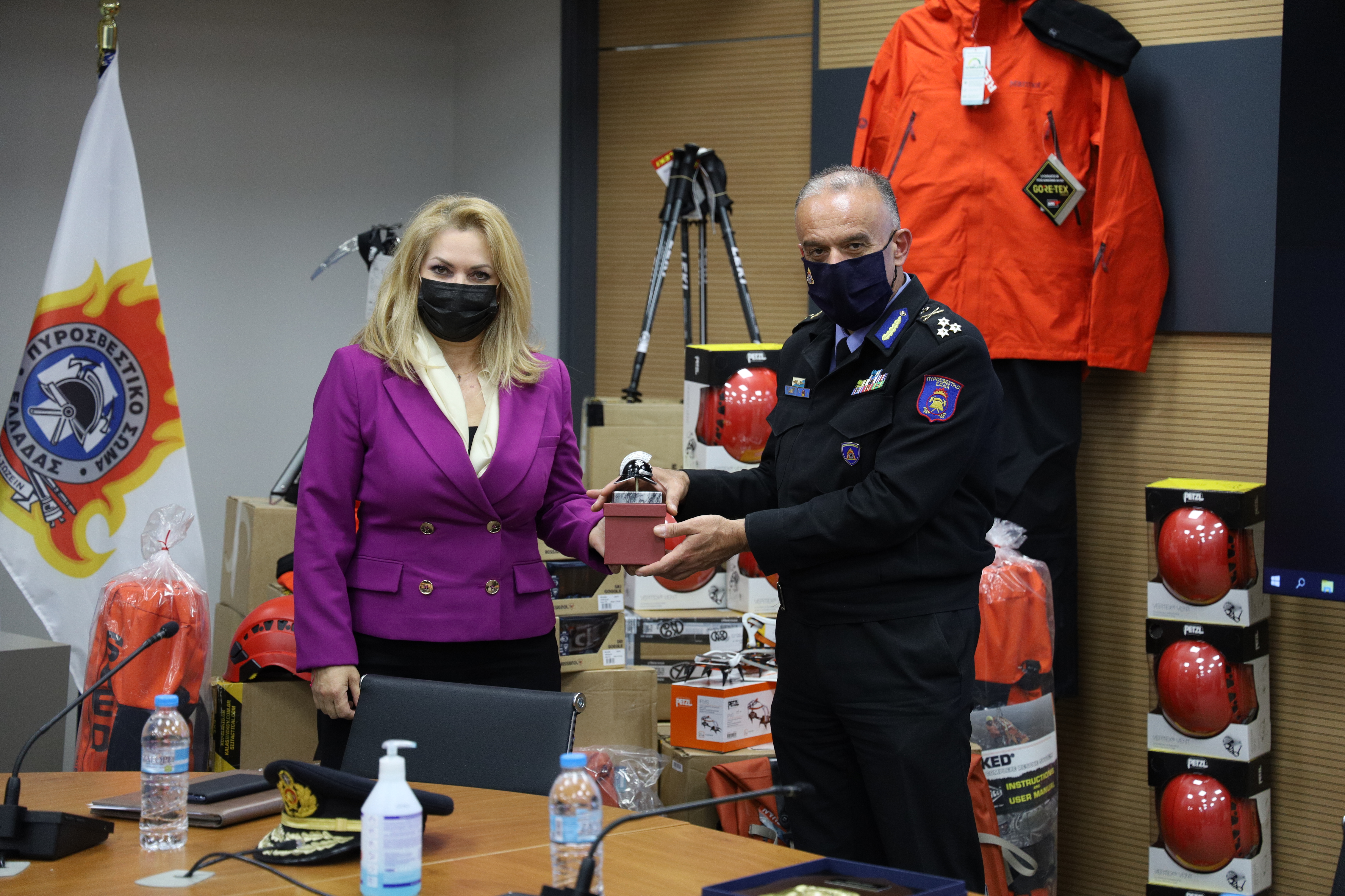 Παρουσία του Αρχηγού Π.Σ. Αντιστράτηγου Στέφανου Κολοκούρη, του Υπαρχηγού Π.Σ. Αντιστράτηγου Ιάκωβου Κλεφτοσπύρου και της Βουλευτή Πιερίας Άννας Μάνη Παπαδημητρίου, πραγματοποιήθηκε την Παρασκευή 02 Απριλίου 2021, στις νέες εγκαταστάσεις του Αρχηγείου του Πυροσβεστικού Σώματος - κτίριο Φάρος - η παράδοση ορειβατικού εξοπλισμού, αξίας περίπου 40.000 χιλιάδων ευρώ, δωρεά της εταιρείας ΠΑΠΑΣΤΡΑΤΟΣ Α.Β.Ε.Σ.
