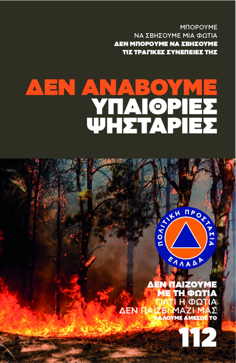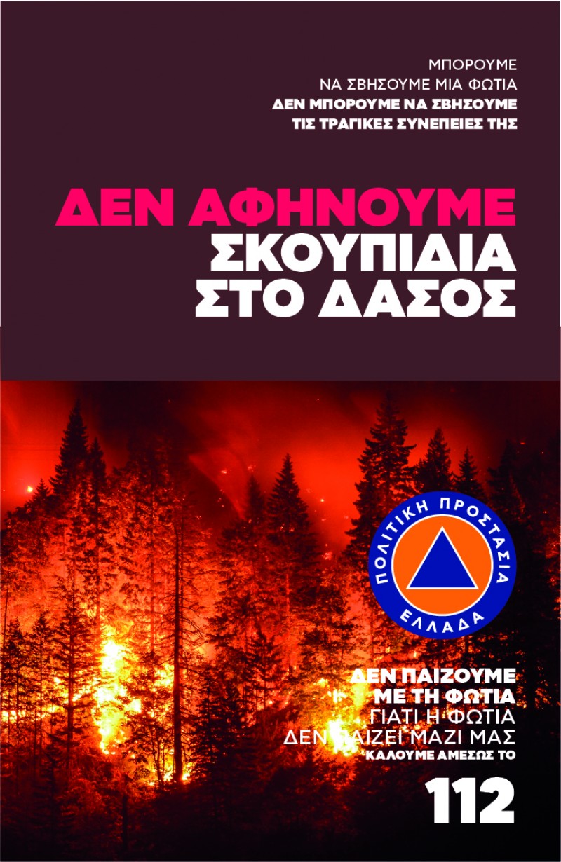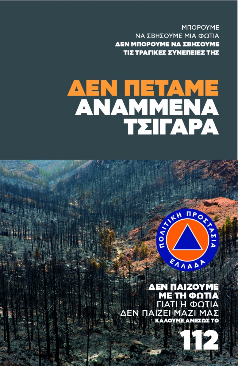 Στο πλαίσιο αυτό, είναι ήδη στον αέρα η ενημερωτική μας καμπάνια με κεντρικό μήνυμα: Μπορούμε να σβήσουμε μια φωτιά, αλλά δεν μπορούμε να σβήσουμε τις τραγικές συνέπειές της. Δεν παίζουμε με τη φωτιά, γιατί η φωτιά δεν παίζει μαζί μας!