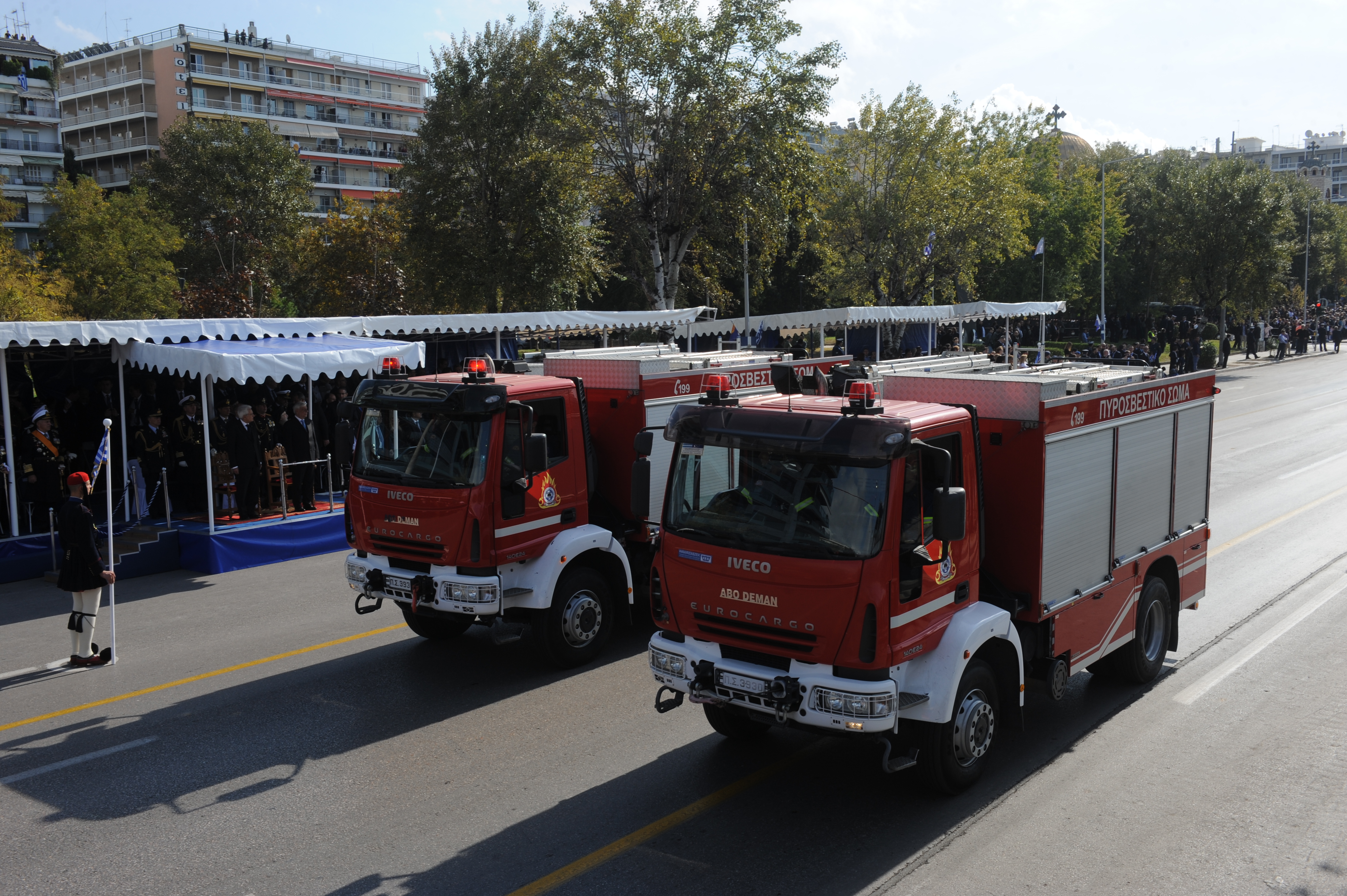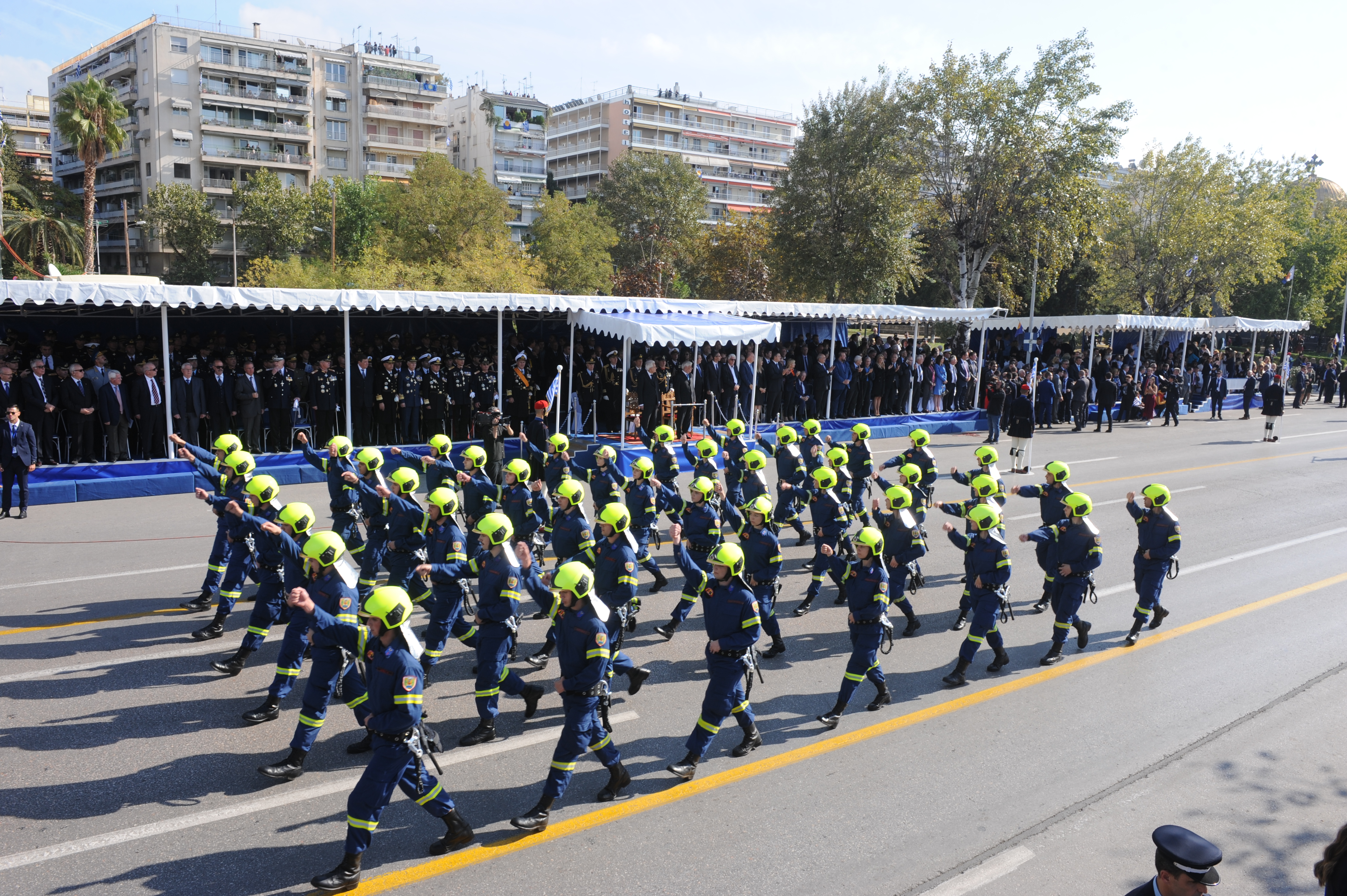 Ενώπιον του Προέδρου της Ελληνικής Δημοκρατίας κ.κ. Προκοπίου Παυλοπούλου, πραγματοποιήθηκε και φέτος στη Θεσσαλονίκη, η καθιερωμένη παρέλαση των Ενόπλων Δυνάμεων και των Σωμάτων Ασφαλείας. Το Πυροσβεστικό Σώμα συμμετείχε με πεζοπόρο τμήμα Δοκίμων Πυροσβεστών της Σχολής Πυροσβεστών Πτολεμαΐδας και μηχανοκίνητα τμήματα. Ο Επιχειρησιακός Συντονιστής με έδρα τη Θεσσαλονίκη Υποστράτηγος ΠΣ Ναθαναήλ Ρήγας παρευρέθη στις εορταστικές εκδηλώσεις της πόλης.
