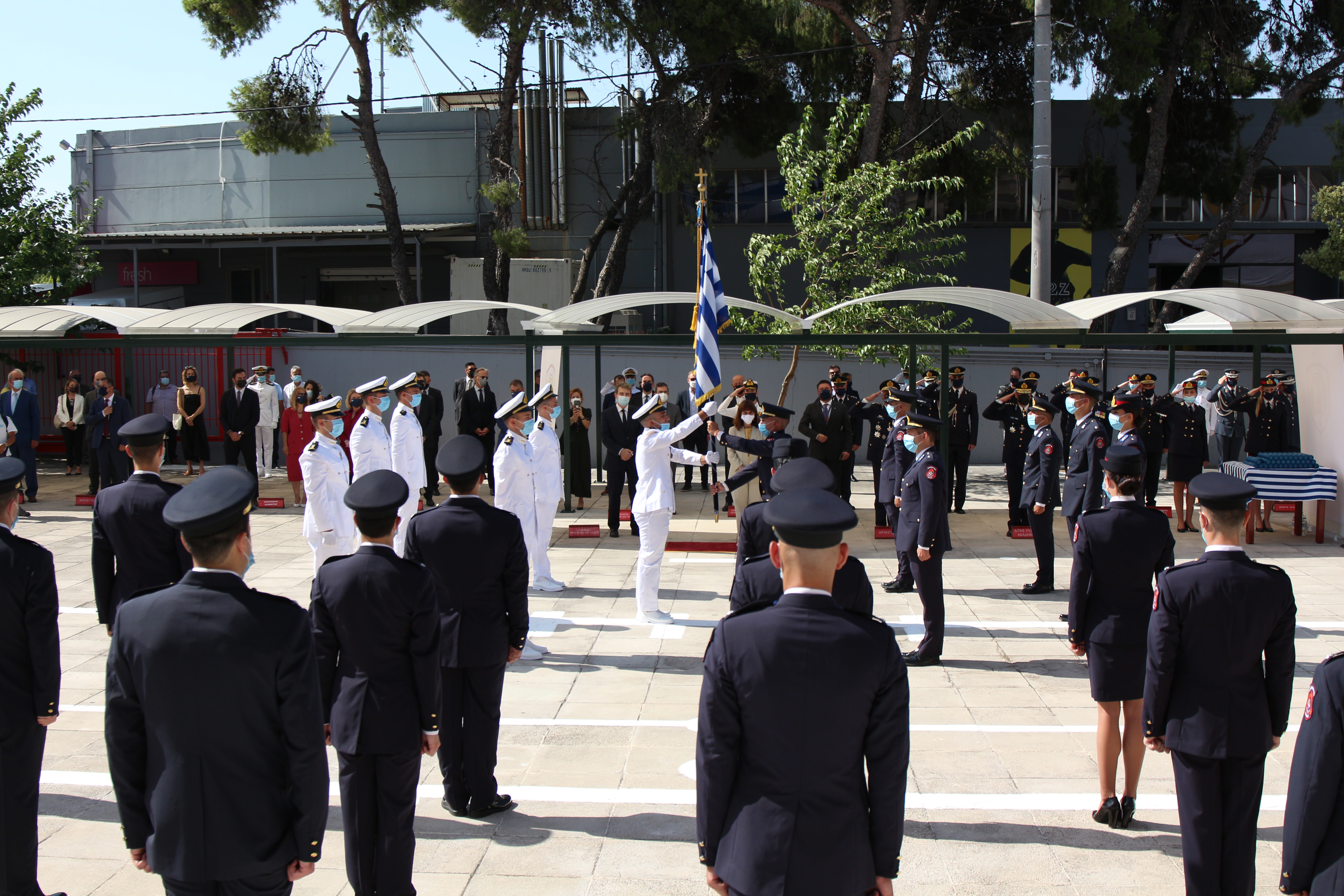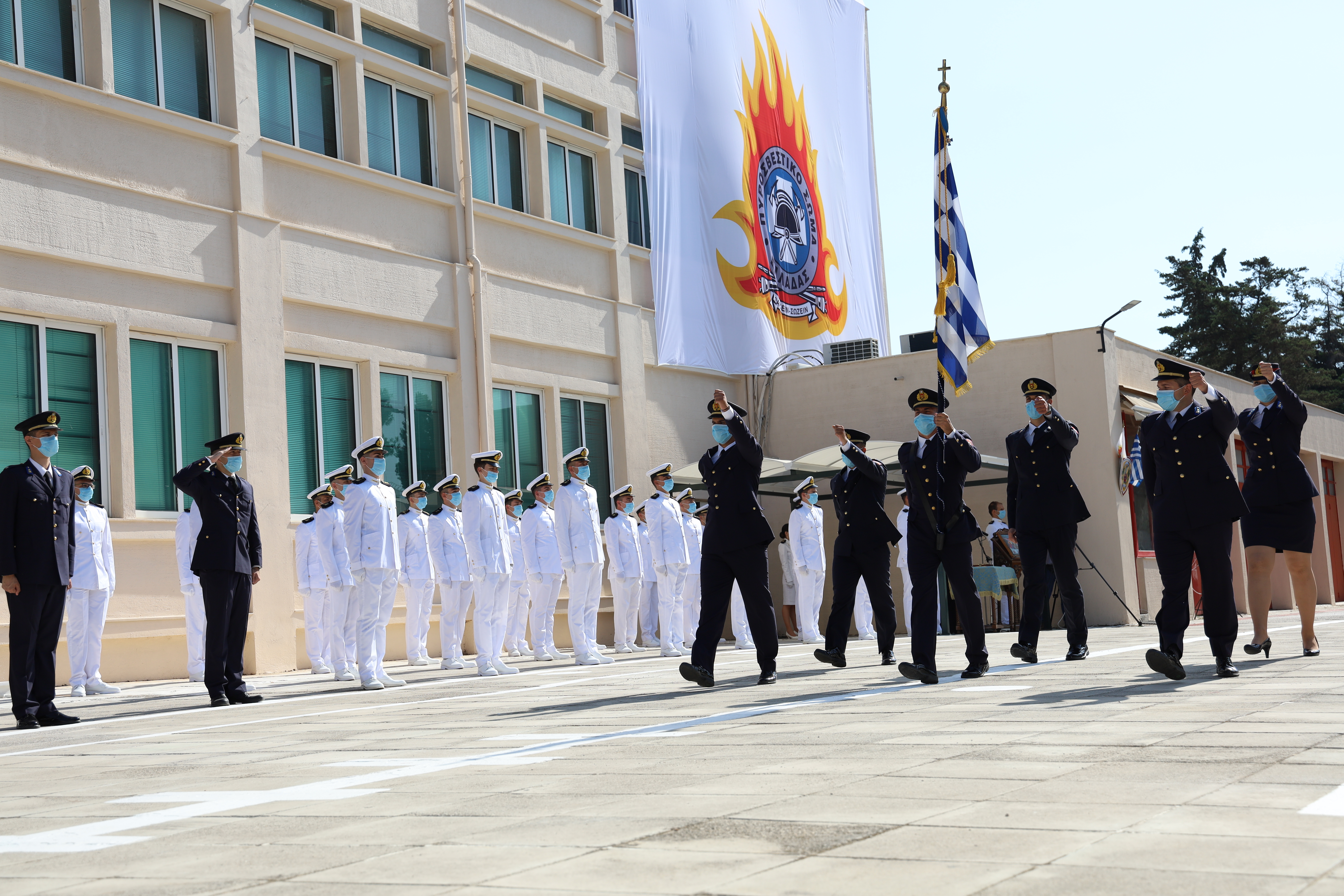 Φέτος, λόγω των ιδιαίτερων συνθηκών και ακολουθώντας πιστά τις οδηγίες του Ε.Ο.Δ.Υ. για την αντιμετώπιση της διασποράς του κορωνοϊού COVID-19, υπήρξε περιορισμένη φυσική παρουσία συγγενών στην τελετή και η αποφοίτηση μεταδόθηκε ζωντανά μέσω live streaming στον σύνδεσμο: www.fireservice.gr/live