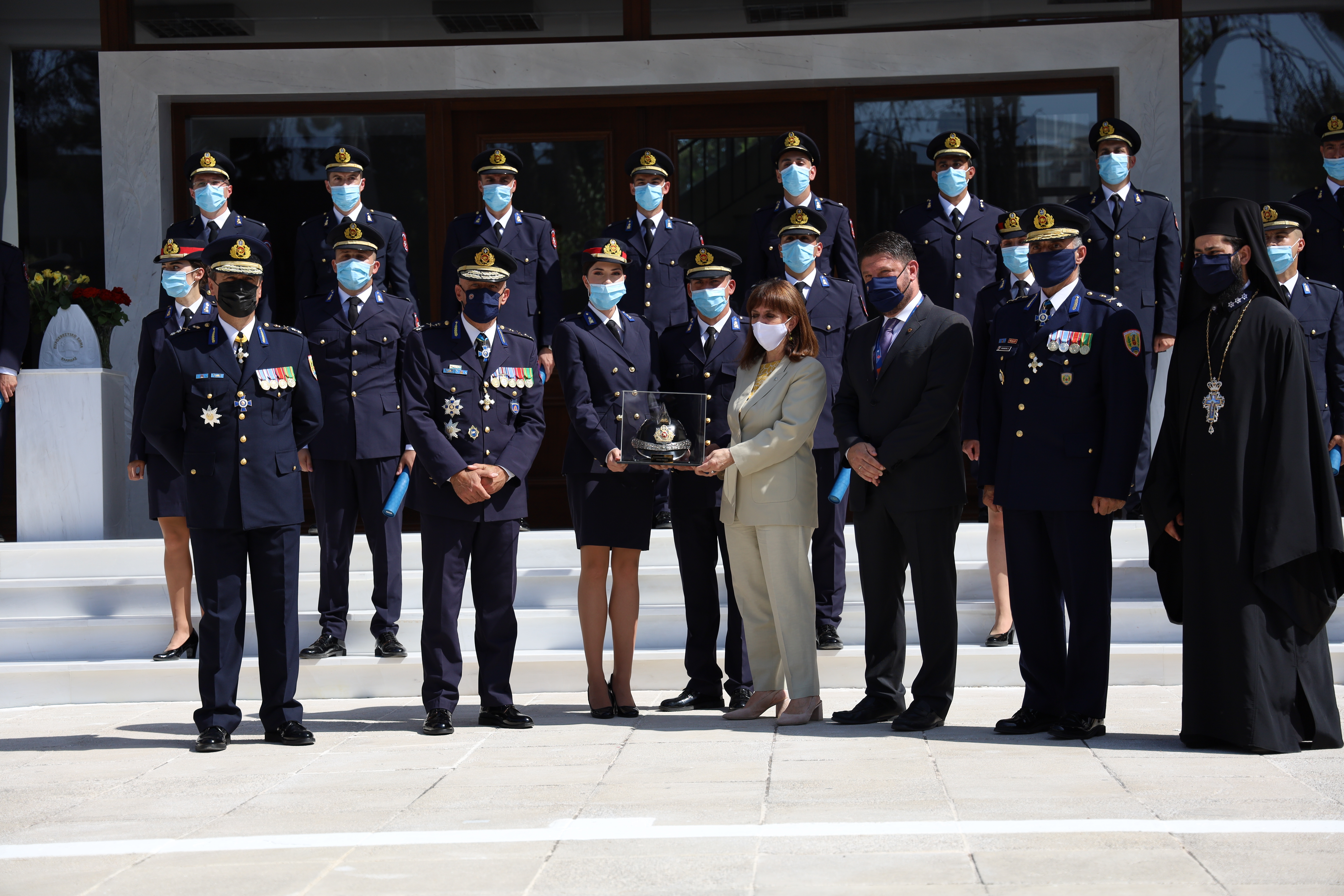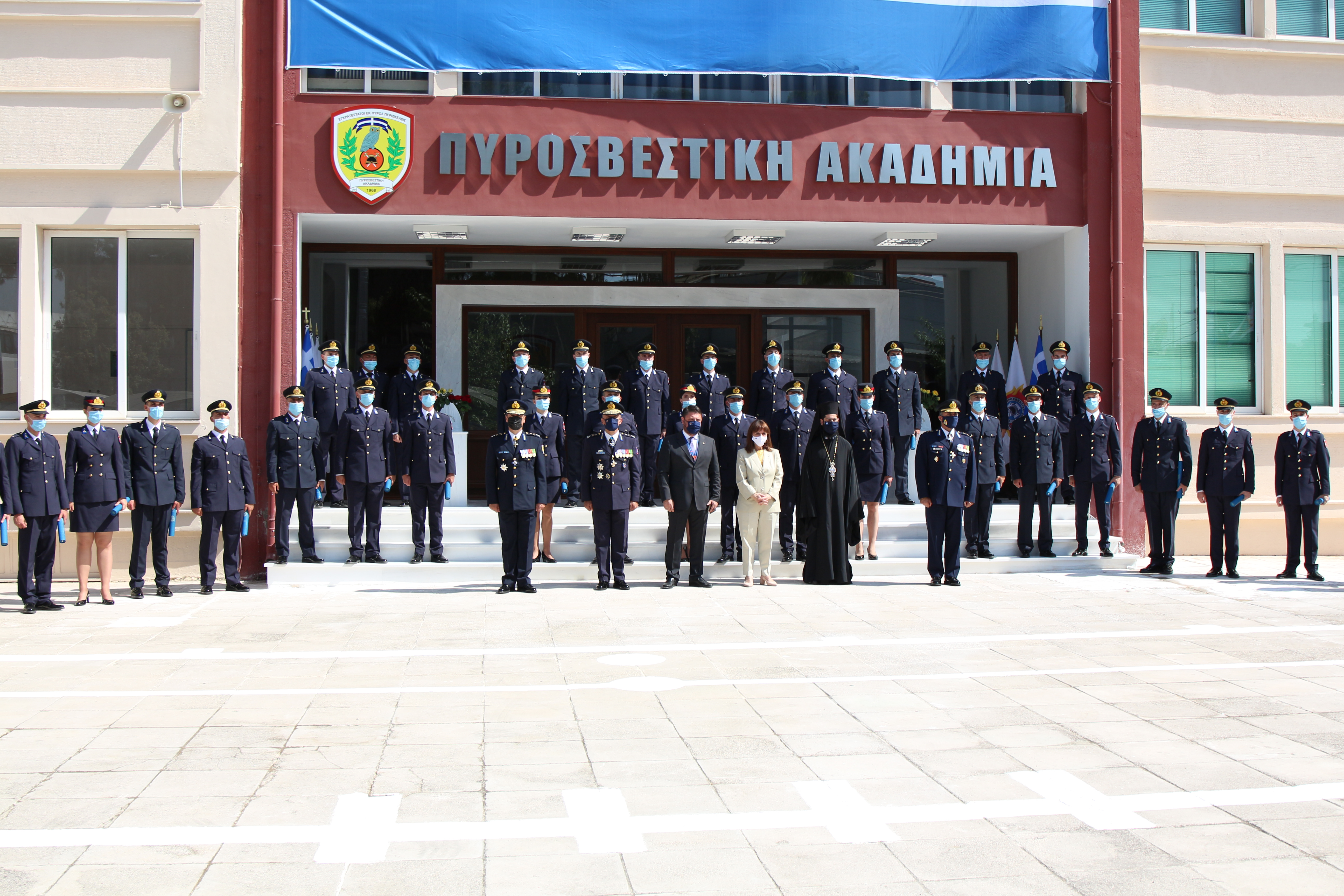 Τα πτυχία στους νέους Ανθυποπυραγούς παρέδωσε η Α.Ε. η Πρόεδρος της Ελληνικής Δημοκρατίας Κατερίνα Σακελλαροπούλου, παρουσία του Υπουργού Προστασίας του Πολίτη Μιχάλη Χρυσοχοΐδη, ως εκπροσώπου της κυβέρνησης, του Υφυπουργού Πολιτικής Προστασίας και Διαχείρισης Κρίσεων Νίκου Χαρδαλιά, του Γενικού Γραμματέα Πολιτικής Προστασίας Βασίλη Παπαγεωργίου, του Αν. Γενικού Γραμματέα Πολιτικής Προστασίας Γεωργίου- Μάριου Καραγιάννη, του Αρχηγού του Πυροσβεστικού Σώματος Αντιστράτηγου Στέφανου Κολοκούρη και του Διοικητή της Πυροσβεστικής Ακαδημίας Υποστράτηγου ΠΣ Σπυρίδων Πέτρου, σε τελετή που πραγματοποιήθηκε σήμερα στην Πυροσβεστική Ακαδημία, στην Κάτω Κηφισιά.