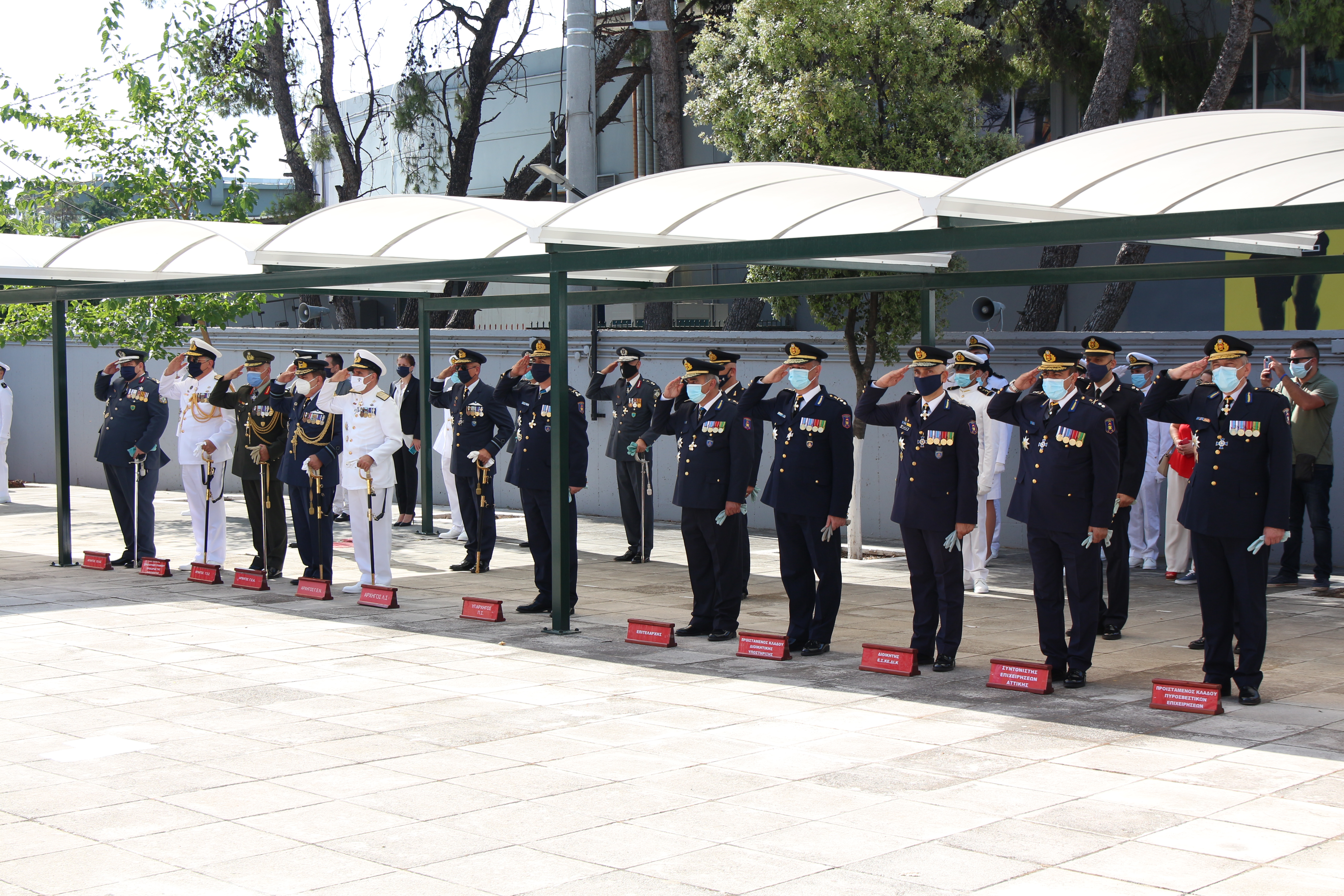 Από πλευράς Πυροσβεστικού Σώματος παρέστησαν, ο Υπαρχηγός του Πυροσβεστικού Σώματος Αντιστράτηγος Ιάκωβος Κλεφτοσπύρος, ο Επιτελάρχης του Πυροσβεστικού Σώματος Αντιστράτηγος Αλέξιος Ράπανος, ο Προϊστάμενος Κλάδου Διοικητικής Υποστήριξης Υποστράτηγος ΠΣ Χιώνης Χαράλαμπος, ο Διοικητής του ΕΣΚΕΔΙΚ Υποστράτηγος ΠΣ Σπυρίδων Βαρσάμης, ο Συντονιστής Επιχειρήσεων Αττικής με έδρα την Αθήνα Υποστράτηγος ΠΣ Ιωάννης Πετρούτσος ο Προϊστάμενος Κλάδου Επιχειρήσεων Υποστράτηγος ΠΣ Χρήστος Λάμπρης, καθώς και Ανώτατοι και Ανώτεροι Αξιωματικοί του Πυροσβεστικού Σώματος.