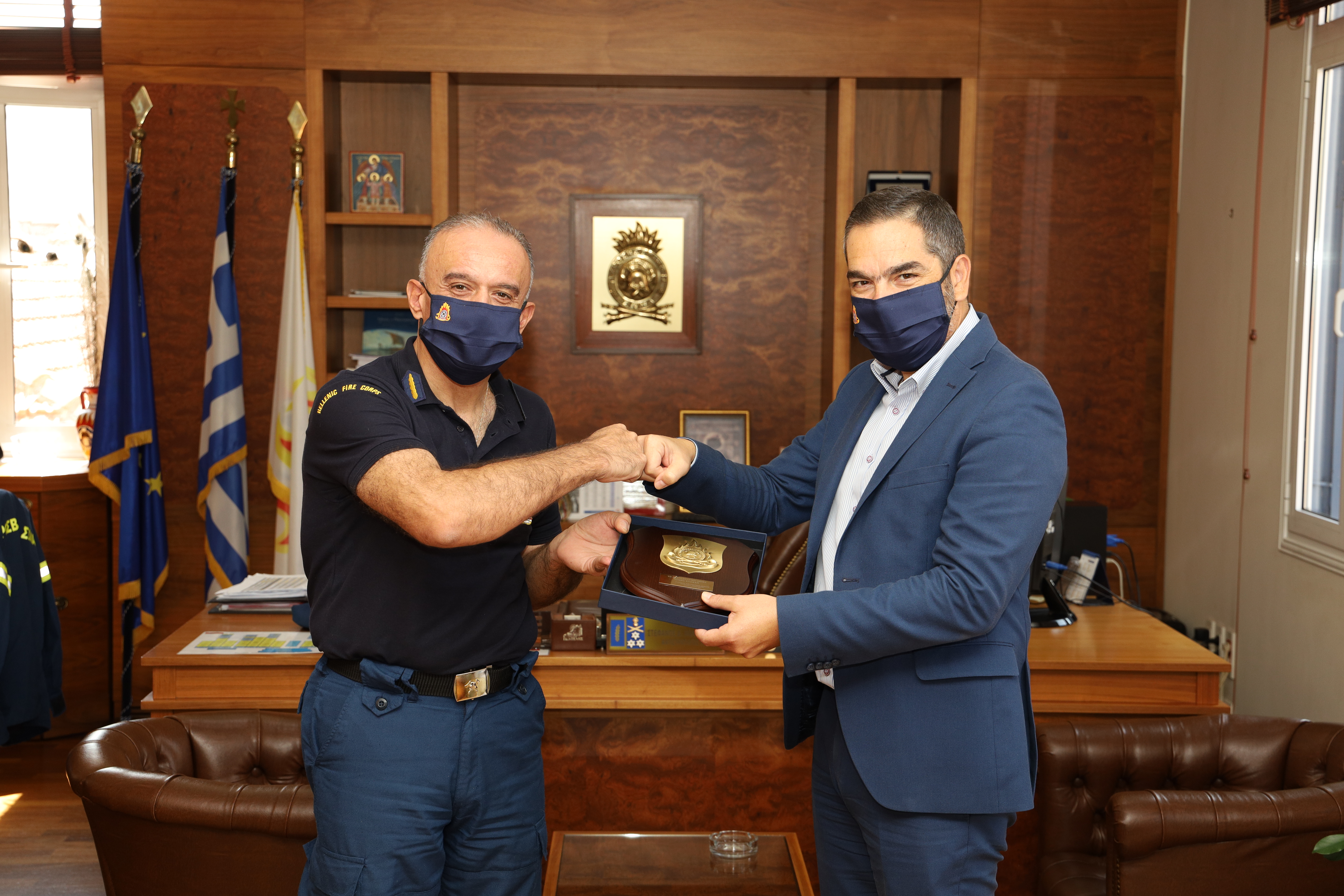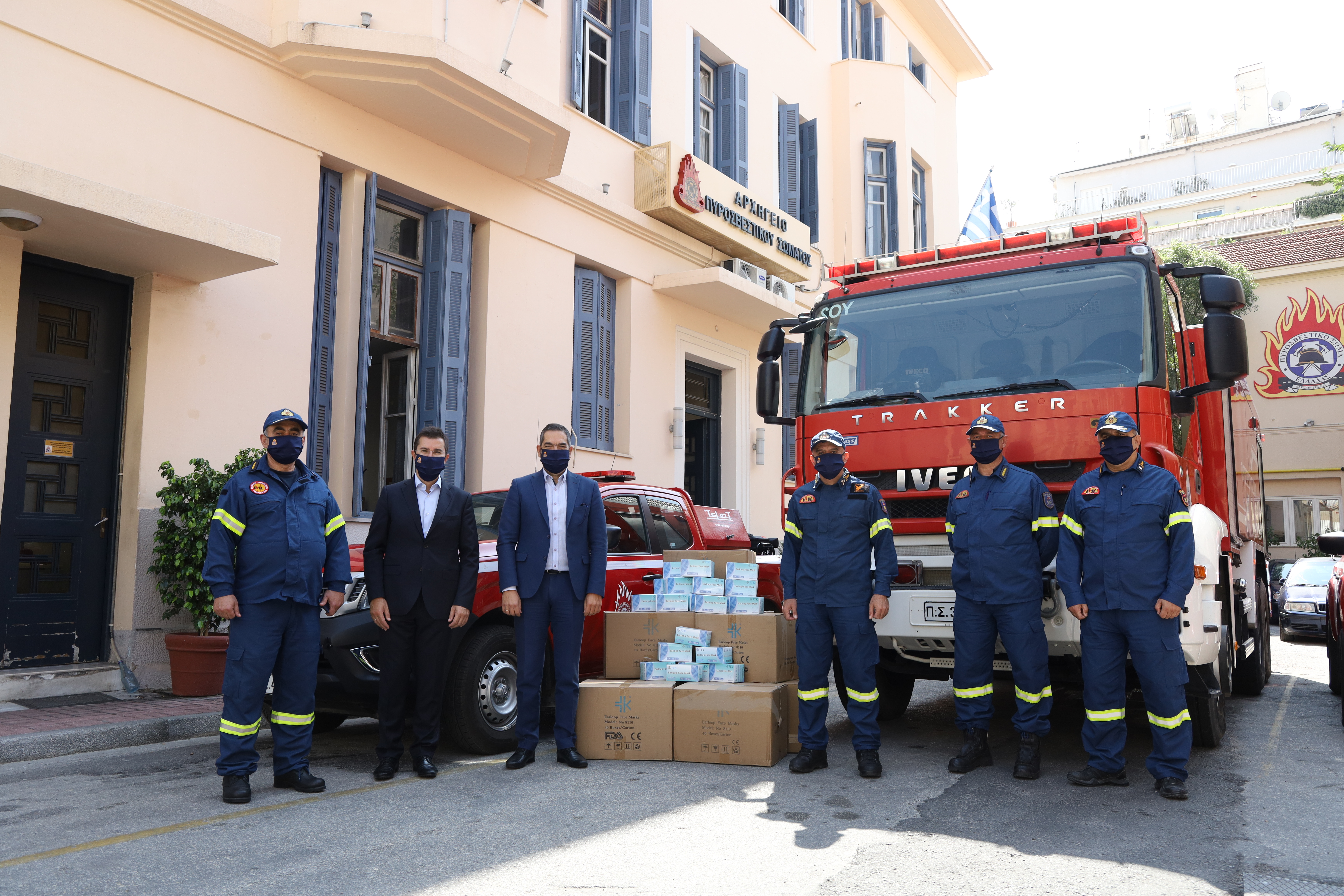 Τελετή παράδοσης είκοσι χιλιάδων (20.000) μέσων ατομικής προστασίας (προστατευτικές μάσκες μίας χρήσης), δωρεά της εταιρείας ΠΑΠΑΣΤΡΑΤΟΣ Α.Β.Ε.Σ. στο Πυροσβεστικό Σώμα