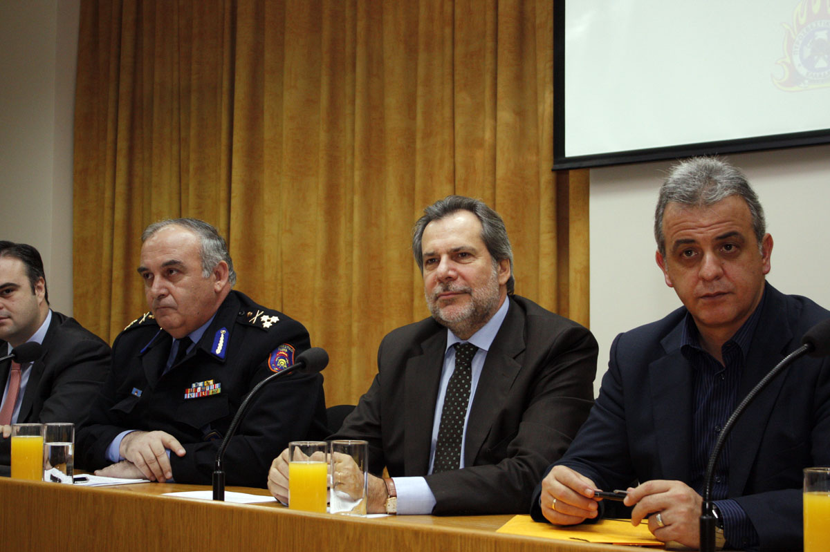Παρουσία του Υπουργού Προστασίας του Πολίτη κ. Χρήστου Παπουτσή και του Υφυπουργού κ. Μανώλη Όθωνα πραγματοποιήθηκε σήμερα, σύσκεψη για τον απολογισμό της Αντιπυρικής Περιόδου 2010, στις εγκαταστάσεις του 199 - Σ.Ε.Κ.Υ.Π.Σ., στο Χαλάνδρι.