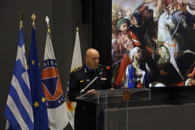 Παρουσία του Αρχηγού Πυροσβεστικού Σώματος Αντιστράτηγου Θεόδωρου Βάγια πραγματοποιήθηκε σήμερα, στις εγκαταστάσεις του Υπουργείου Κλιματικής Κρίσης και Πολιτικής Προστασίας, στο Μαρούσι, η κεντρική εκδήλωση για τον εορτασμό της Εθνικής Επετείου της 25ης Μαρτίου 1821