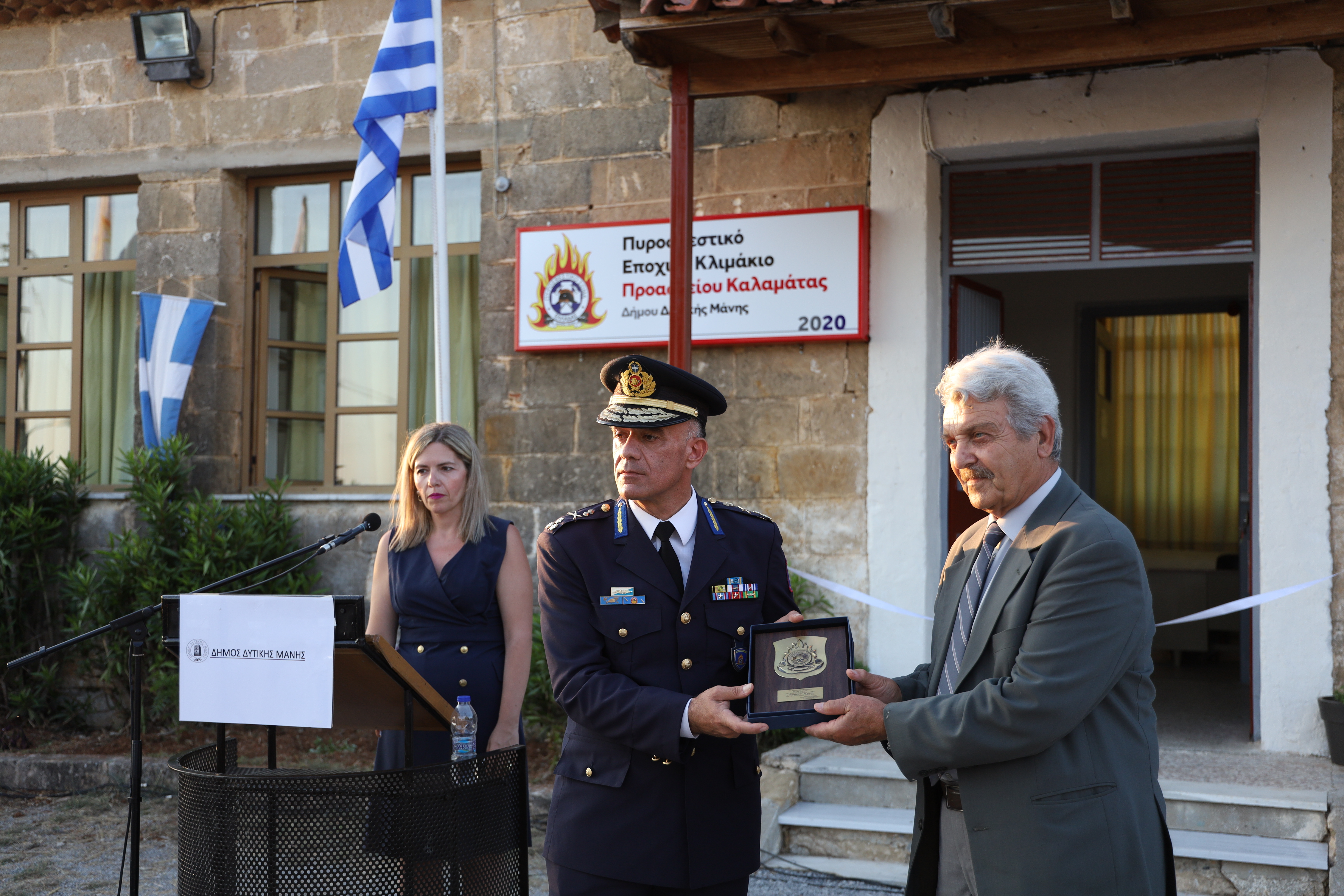 Παρουσία Αρχηγού Πυροσβεστικού Σώματος Αντιστράτηγου Στέφανου Κολοκούρη, πραγματοποιήθηκαν εχθές, 28 Ιουνίου 2020, τα εγκαίνια του Πυροσβεστικού Κλιμακίου Προαστείου, στο Δήμο Δυτικής Μάνης, της Περιφερειακής Ενότητας Μεσσηνίας, για την εξυπηρέτηση επιχειρησιακών και μόνο, εποχικών αναγκών της αντιπυρικής περιόδου.