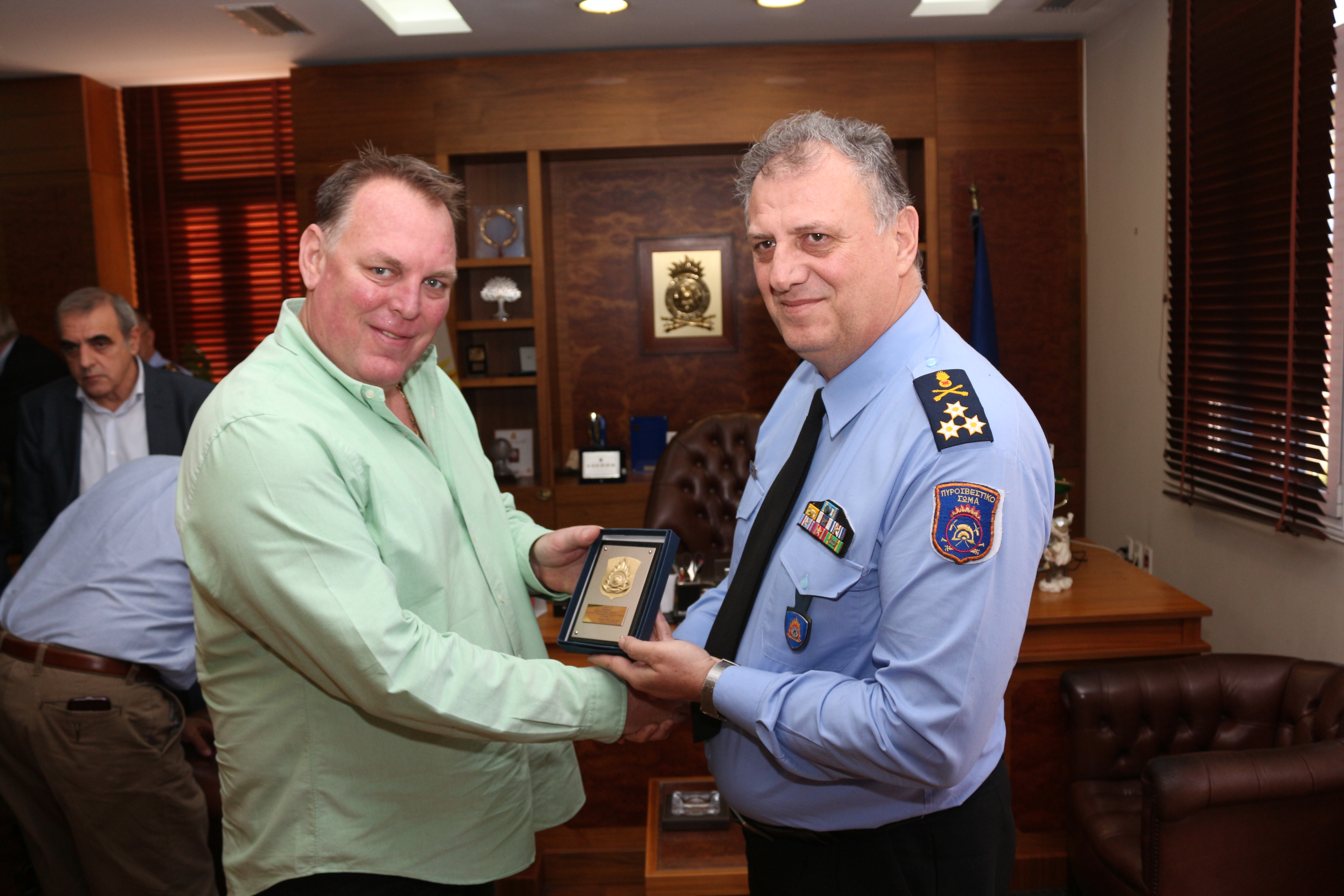 Στη συνάντηση παρόντες ήταν επίσης, ο Γενικός Γραμματέας Πολιτικής Προστασίας Γιάννης Καπάκης, ο ειδικός σύμβουλος για τα εναέρια μέσα του Υπουργείου Προστασίας του Πολίτη Αντιπτέραρχος ε.α. Ιωάννης Βυζάντιος, ο Διευθυντής του Κέντρου Μελετών Ασφάλειας Ιωάννης Ταφύλλης, οι Υπαρχηγοί Υποστήριξης και Επιχειρήσεων του Πυροσβεστικού Σώματος, Αντιστράτηγος ΠΣ Σωτήριος Τερζούδης και Αντιστράτηγος ΠΣ Ιωάννης Βασιλειάδης και ο Συντονιστής Υποστήριξης Α.Π.Σ., Υποστράτηγος ΠΣ Ιωάννης Ράμφος.