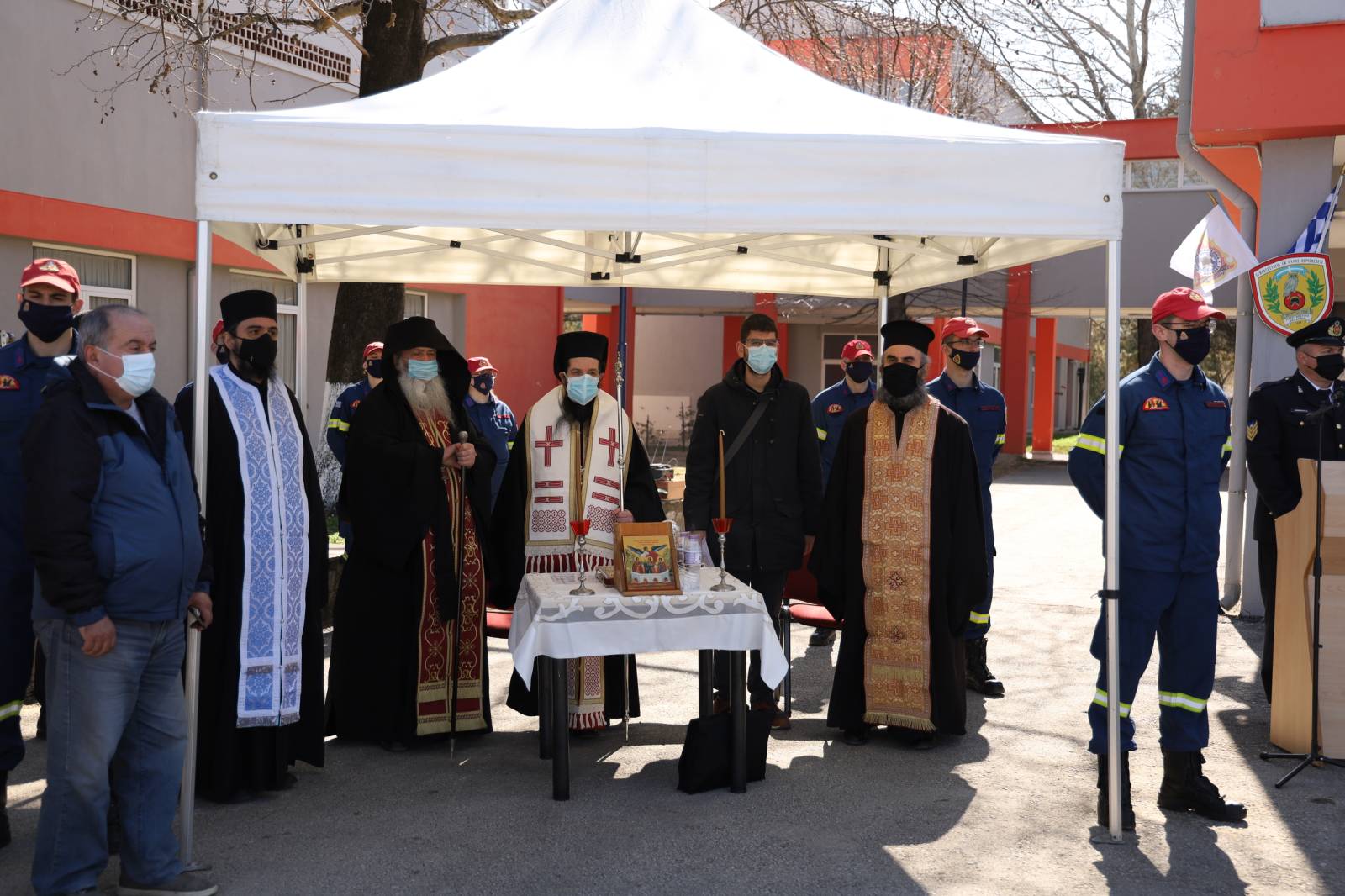 Από πλευράς του Πυροσβεστικού Σώματος παρέστησαν ο Υπαρχηγός του Πυροσβεστικού Σώματος Αντιστράτηγος Ιάκωβος Κλεφτοσπύρος, ο Συντονιστής Επιχειρήσεων Ηπείρου - Δυτ. Μακεδονίας και Νήσων (Κέρκυρα, Λευκάδα, Παξοί) Υποστράτηγος ΠΣ Δημήτριος Κοντογιάννης, ο Διοικητής της Πυροσβεστικής Ακαδημίας Υποστράτηγος ΠΣ Σπυρίδων Πέτρου και ο Διοικητής ΠΕ.ΠΥ.Δ. Δυτικής Μακεδονίας Αρχιπύραρχος Σωτήριος Κορέλας.