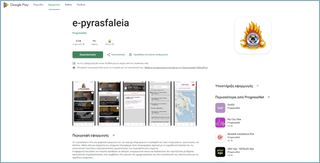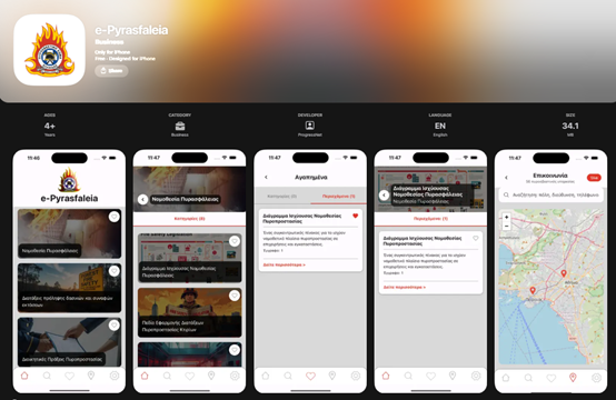 Η εφαρμογή «e-Pyrasfaleia» είναι διαθέσιμη για δωρεάν λήψη σε όλες τις συσκευές: