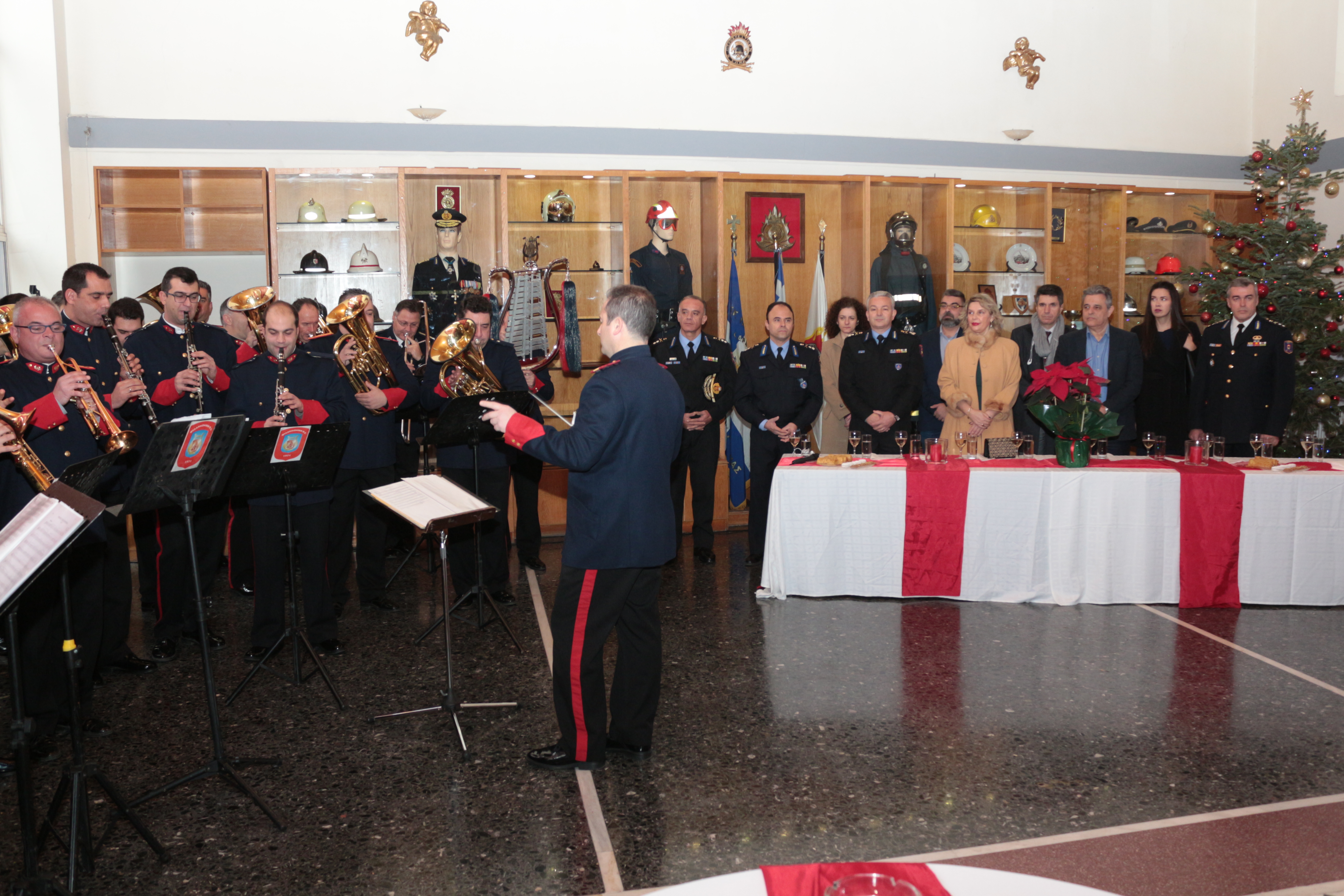 Παρουσία της Υφυπουργού Προστασίας του Πολίτη Αικατερίνης Παπακώστα – Σιδηροπούλου, του Γενικού Γραμματέα Πολιτικής Προστασίας Γιάννη Ταφύλλη, του Υπαρχηγού Επιχειρήσεων Αντιστράτηγου ΠΣ Κωνσταντίνου Γιόβα, του Συντονιστή Υποστήριξης Υποστράτηγου ΠΣ Ιωάννη Ράμφου, του Διοικητή Περιφερειακής Πυροσβεστικής Διοίκησης Αττικής Υποστράτηγου ΠΣ Αχιλλέα Τζουβάρα και του Συντονιστή Επιχειρήσεων με έδρα τον Πειραιά Υποστράτηγου ΠΣ Στέφανου Κολοκούρη, ακούστηκαν και φέτος τα κάλαντα της Πρωτοχρονιάς από τη μεικτή μπάντα του Πυροσβεστικού Σώματος και της Ελληνικής Αστυνομίας, στην εορταστική εκδήλωση που πραγματοποιήθηκε σήμερα 31 Δεκεμβρίου, στις εγκαταστάσεις του Αρχηγείου του Πυροσβεστικού Σώματος.