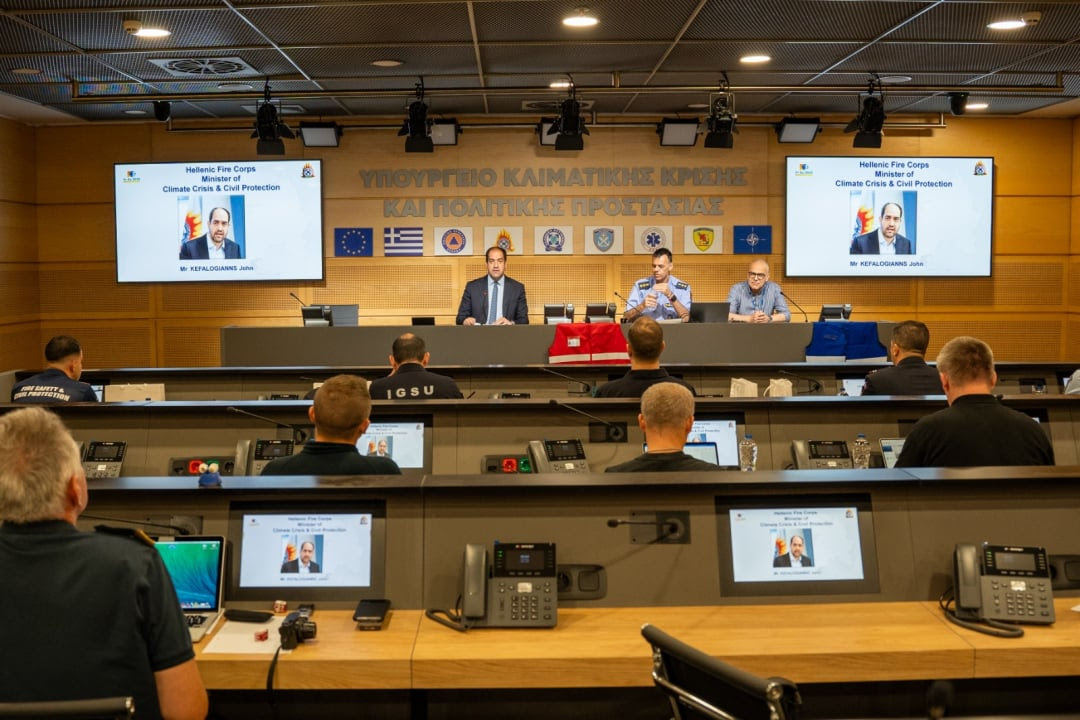 Ο Υπουργός Κλιματικής Κρίσης και Πολιτικής Προστασίας, Γιάννης Κεφαλογιάννης, απηύθυνε σήμερα, Τετάρτη 25 Ιουνίου 2025, χαιρετισμό κατά την υποδοχή των Ευρωπαίων Αρχηγών Αποστολών του προγράμματος Pre-Positioning.