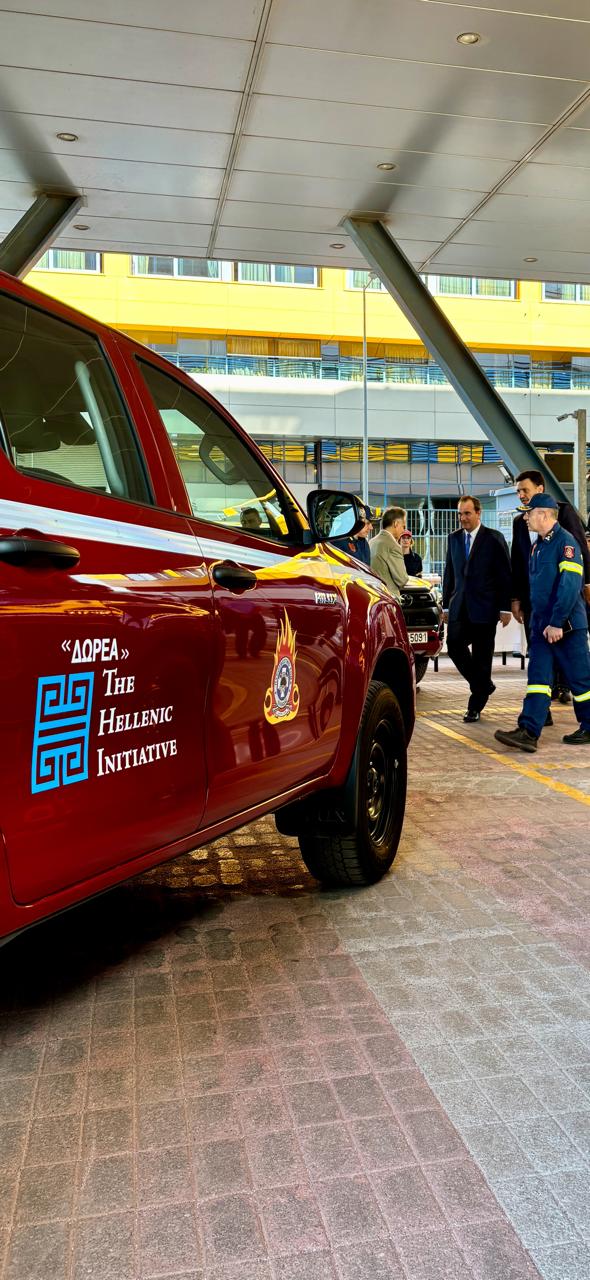 Αναγνωρίζοντας την προσπάθεια του Υπουργείου Κλιματικής Κρίσης και Πολιτικής Προστασίας για την διαχείριση των συνεπειών των ακραίων φυσικών φαινομένων που πλήττουν τη χώρα μας, όπως και όλο τον πλανήτη, ο Παγκόσμιος Μη Κερδοσκοπικός Οργανισμός The Hellenic Initiative- ο οποίος απαρτίζεται από Έλληνες ομογενείς- πραγματοποίησε δωρεά 5 οχημάτων pick up για τις ανάγκες των Μονάδων Δασοκομάντος (ΕΜΟΔΕ).
