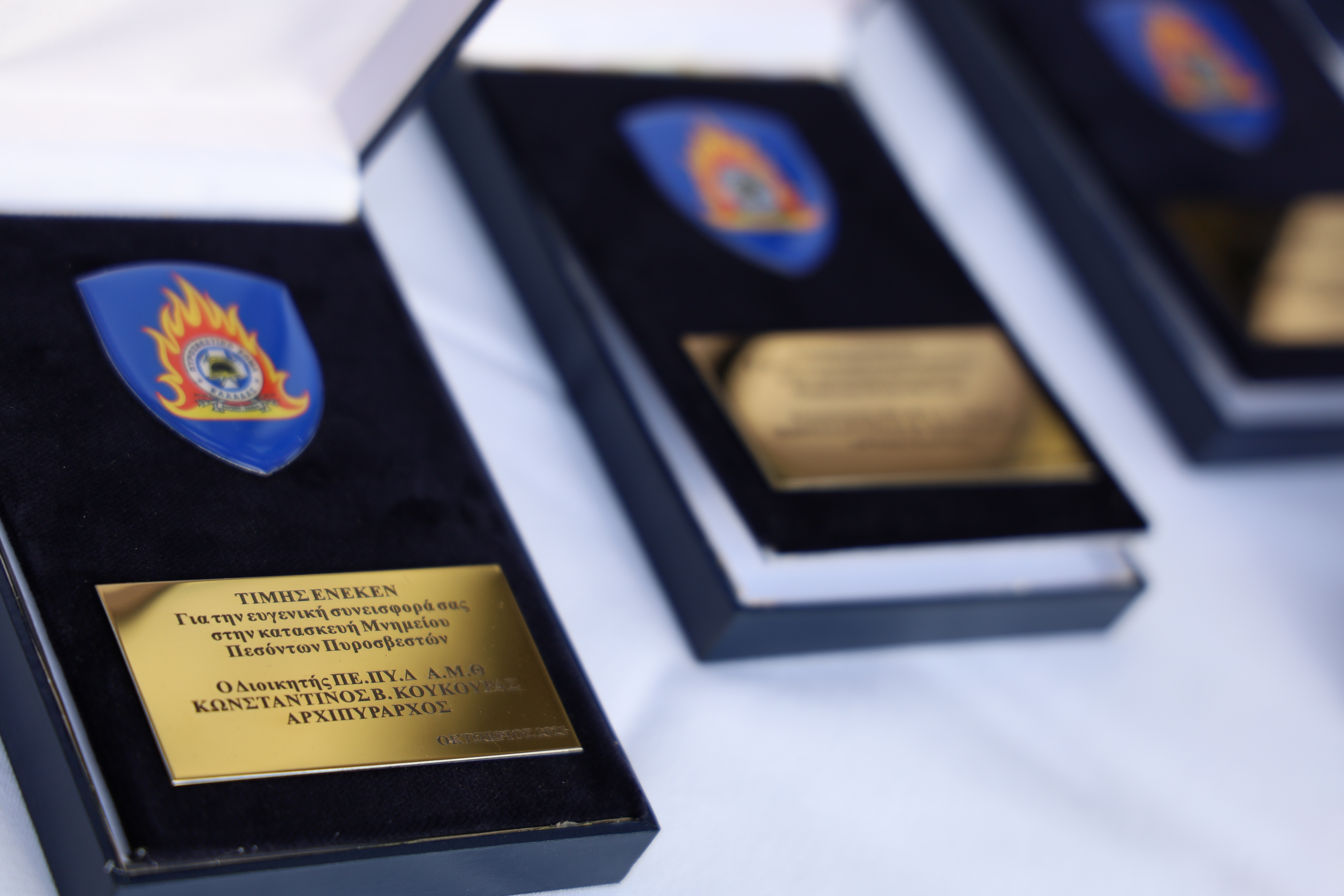 Ακολούθησε κατάθεση στεφάνων από τον Υφυπουργό Κλιματικής Κρίσης και Πολιτικής Προστασίας Ευάγγελο Τουρνά, τον Αρχηγό του Πυροσβεστικού Σώματος Αντιστράτηγο Στέφανο Κολοκούρη και από την οικογένεια του Ανθυποπυραγού Ιωάννη Ζαφειρόπουλου. Απονεμήθηκαν αναμνηστικές πλακέτες, στον Σεβασμιώτατο Μητροπολίτη Μαρωνείας και Κομοτηνής, κ.κ. Παντελεήμων, στην οικογένεια του Ανθυποπυραγού Ιωάννη Ζαφειρόπουλου, καθώς και στον εκπρόσωπο του Δημάρχου Κομοτηνής Τζενετίδη Παρθένιο και στον ιδιώτη Γιαννάκη Ιωάννη που συνέβαλαν στην υλοποίηση του έργου.