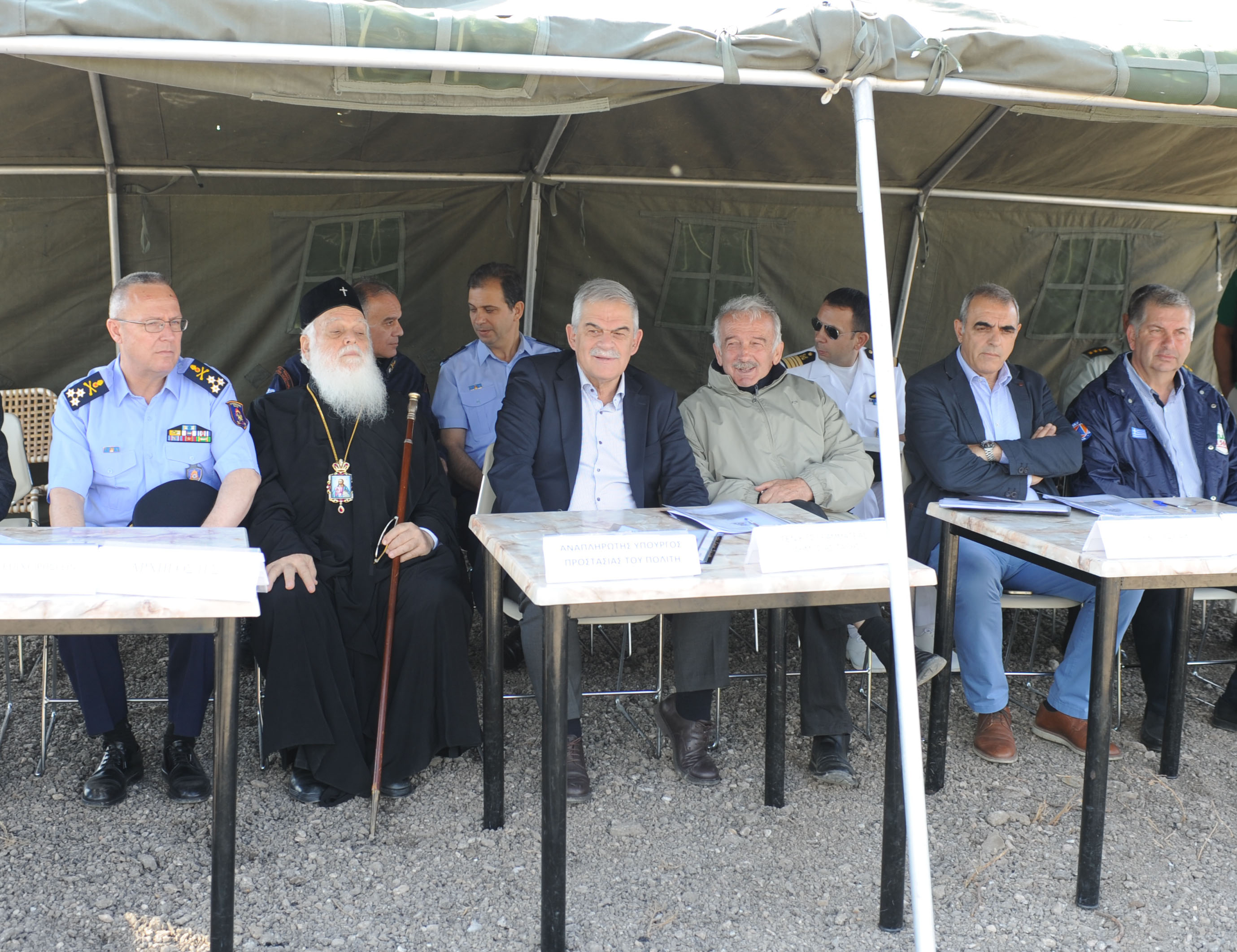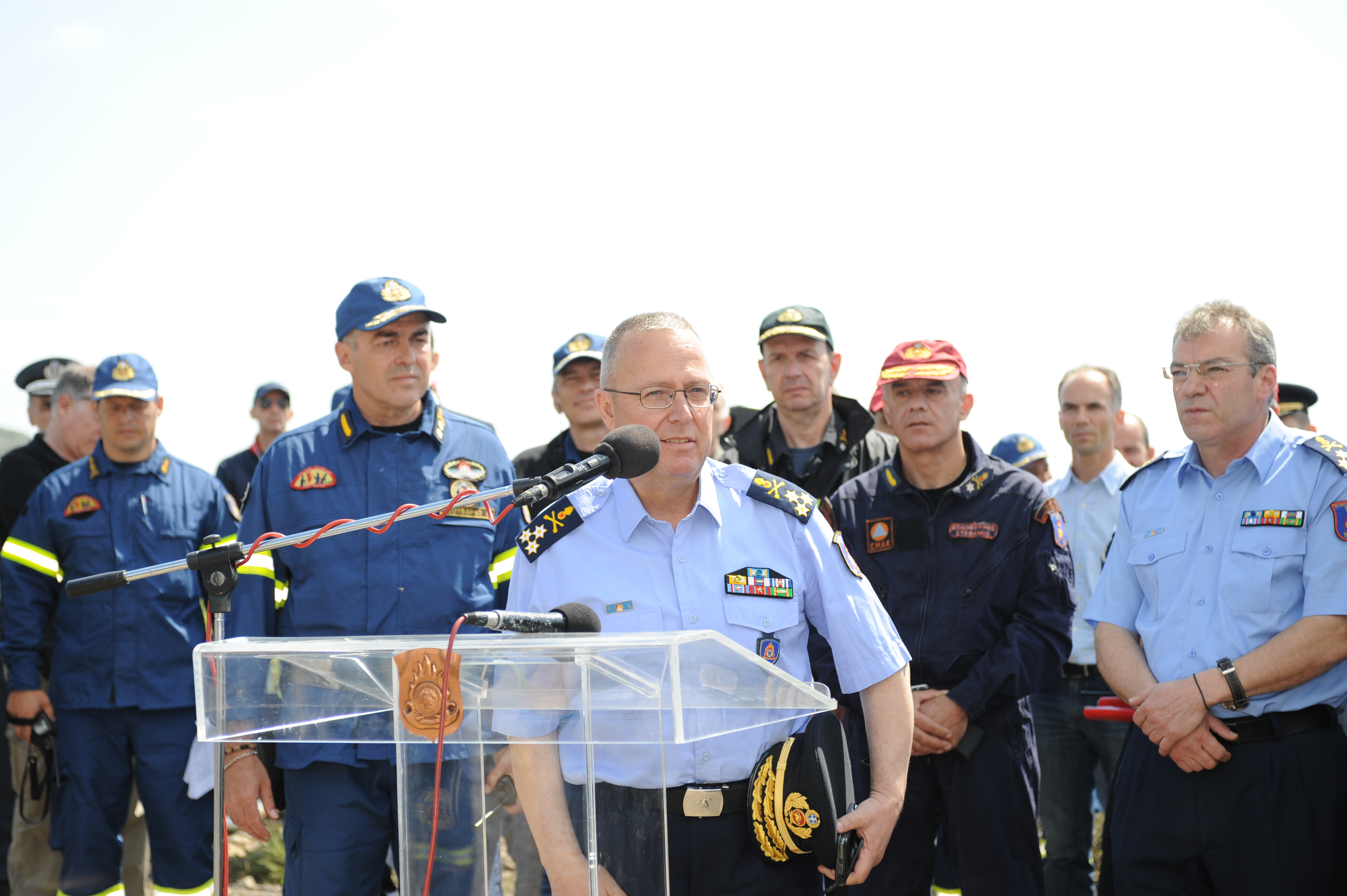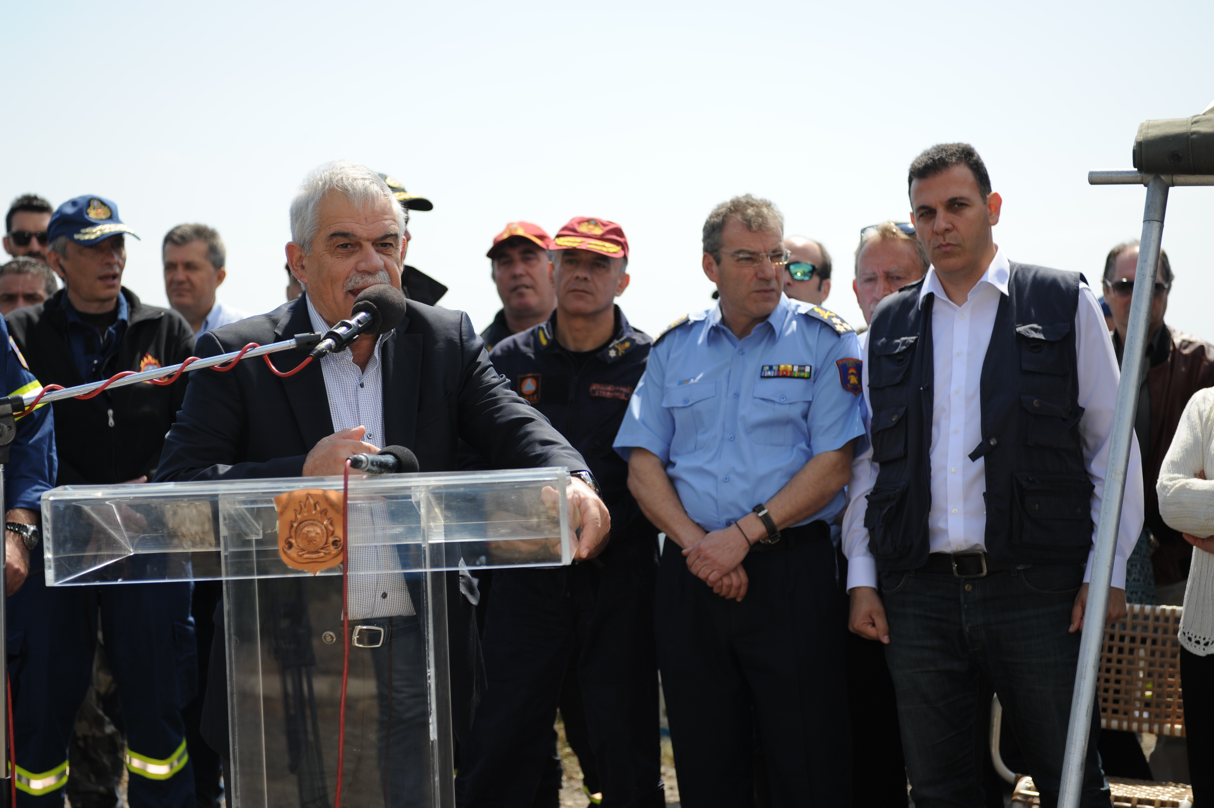 Ο Αναπληρωτής Υπουργός Προστασίας του Πολίτη στο σύντομο χαιρετισμό του είπε: «Δίνω συγχαρητήρια στο Πυροσβεστικό Σώμα για την πολύ καλά συντονισμένη, σχεδιασμένη, συγκροτημένη άσκηση. Είδατε ότι χρησιμοποιήθηκαν όλα τα μέσα, ακόμη και μέσα που βρήκαμε καταχωνιασμένα από την εποχή των Ολυμπιακών Αγώνων. Και μη νομίζετε ότι είναι τόσο εύκολο -το είδατε στη πράξη- να συγκεντρώσεις όλους αυτούς τους ανθρώπους και όλα αυτά τα μέσα.