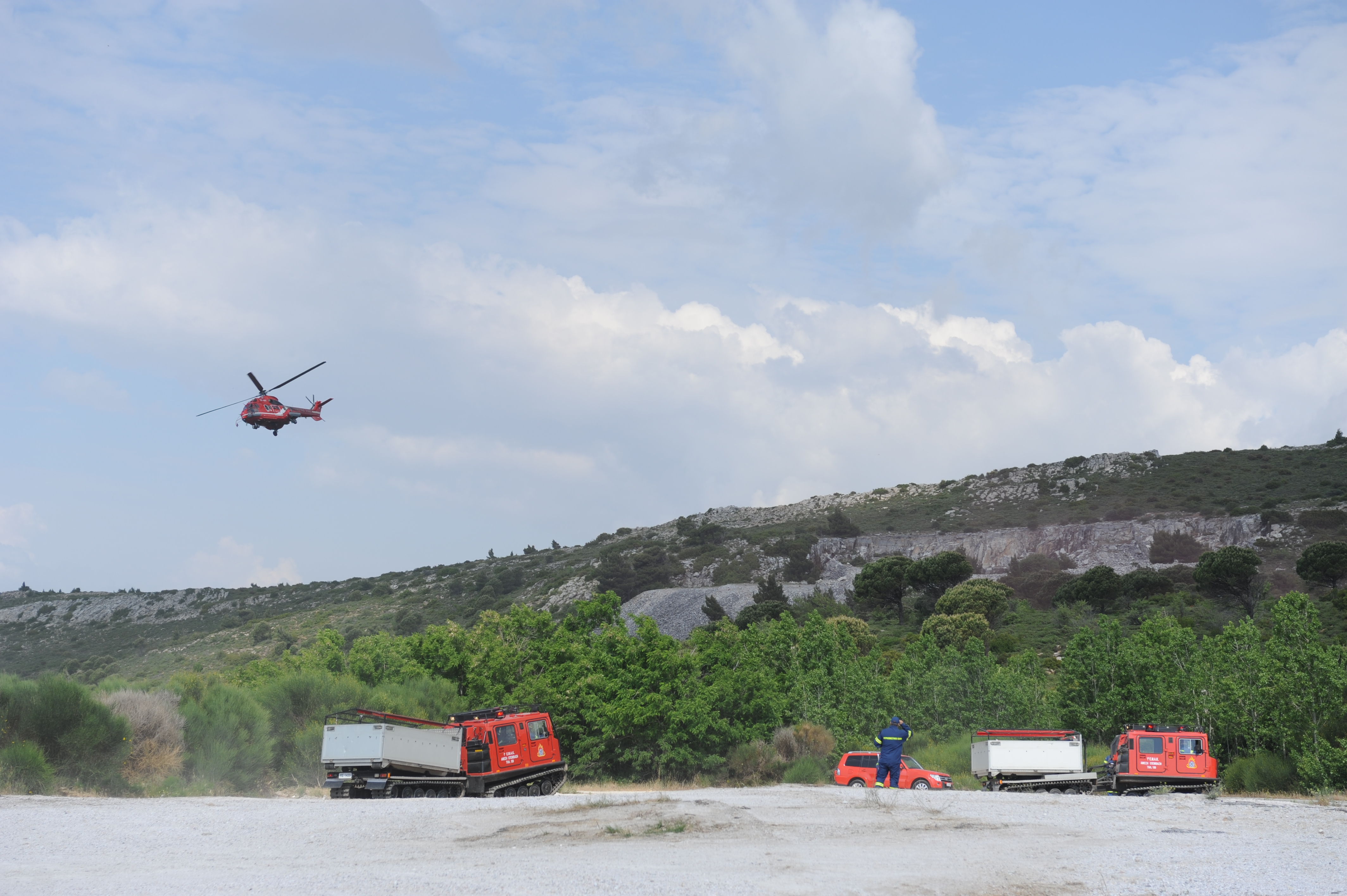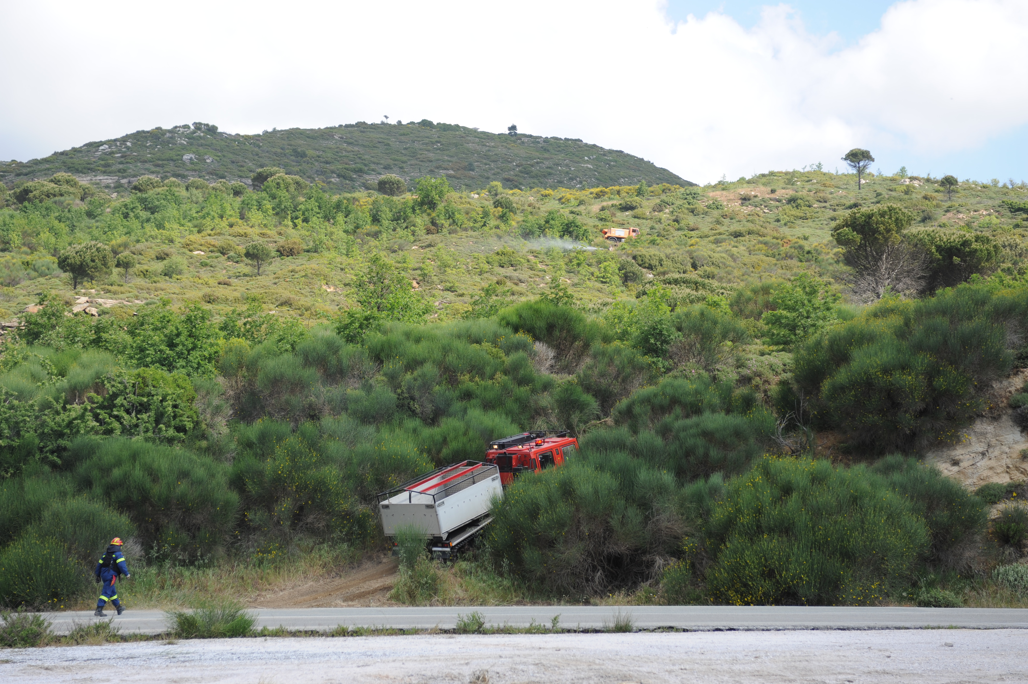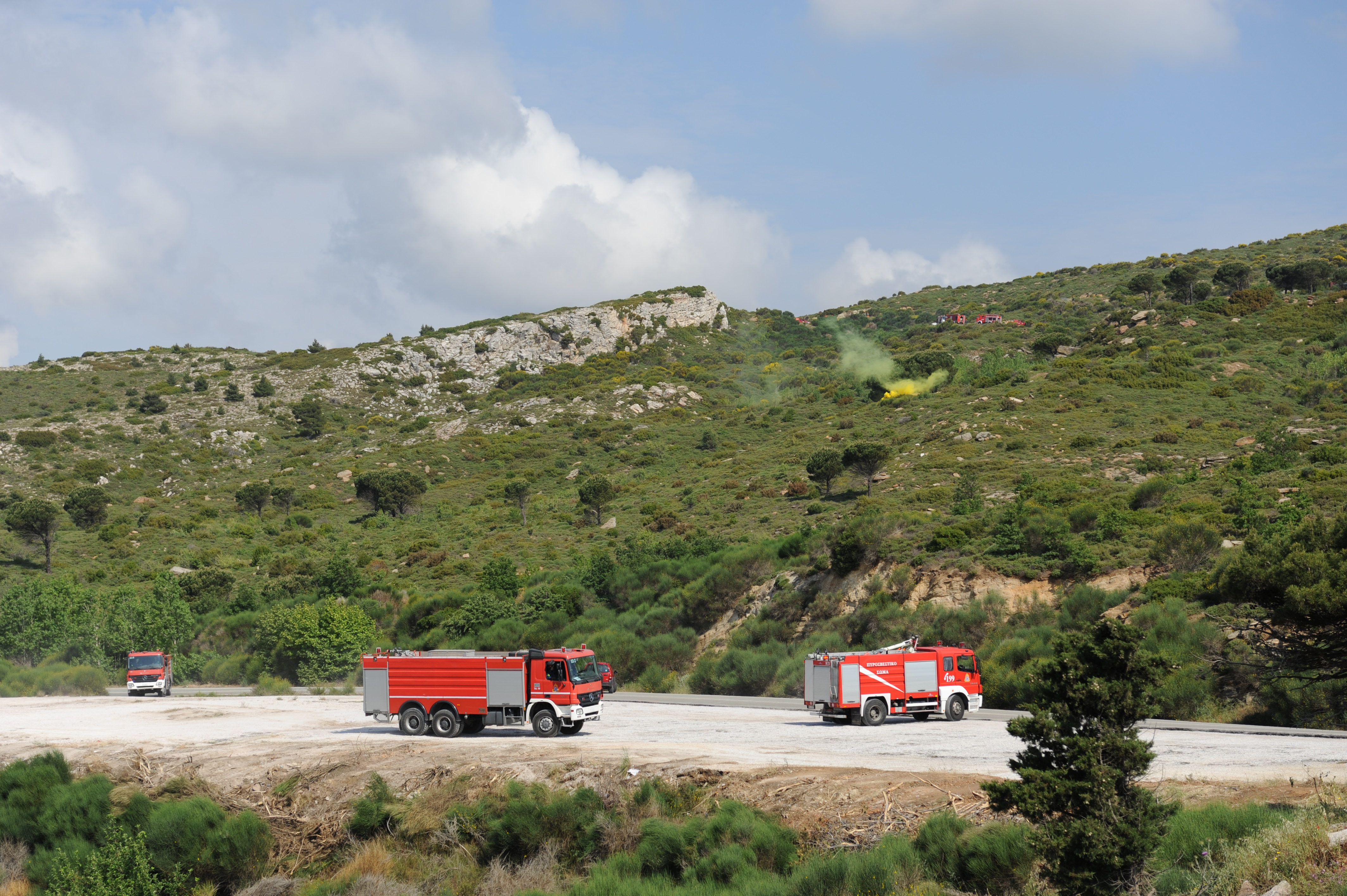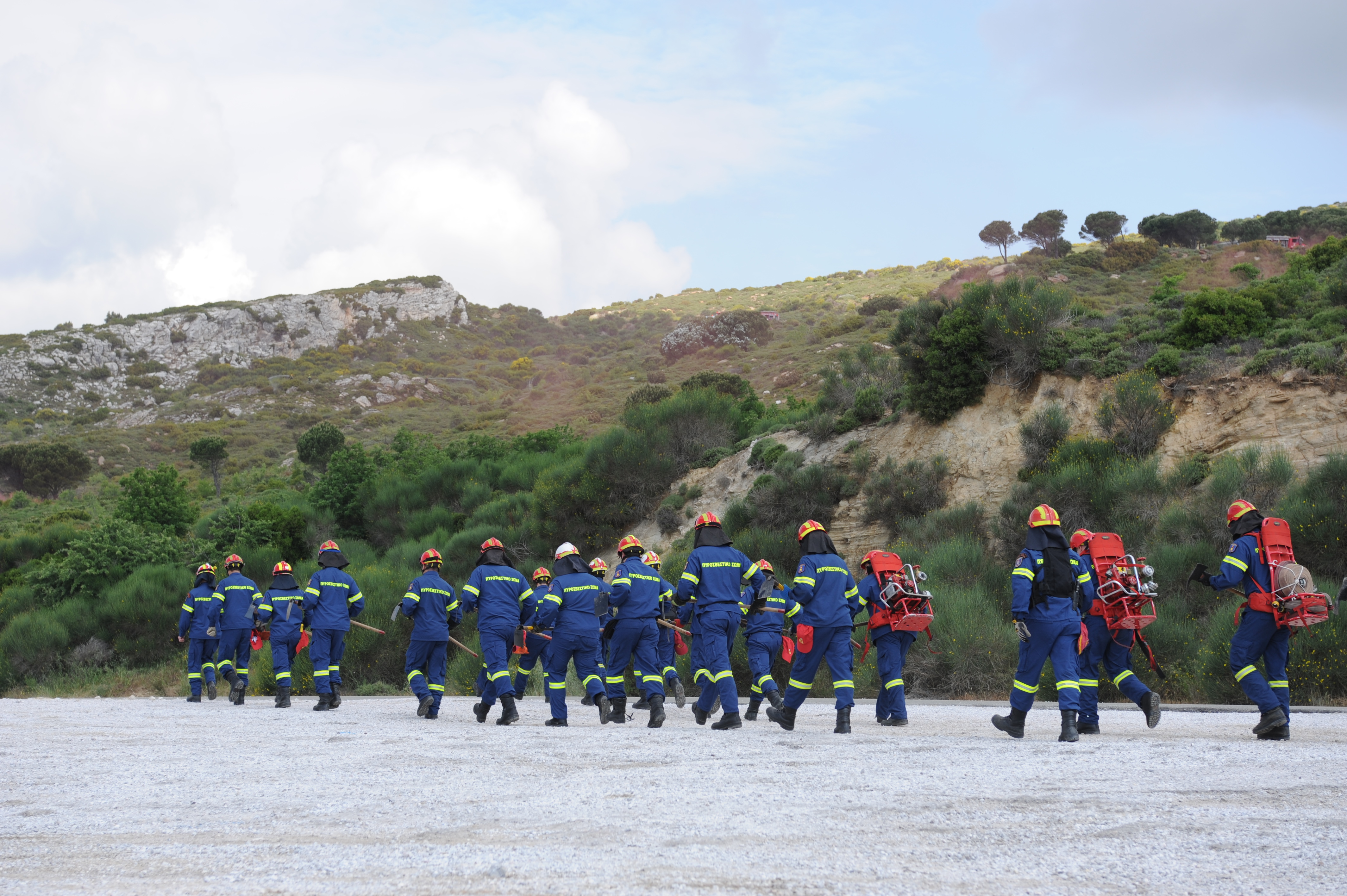 Παρουσία του Αναπληρωτή Υπουργού Προστασίας του Πολίτη Νίκου Τόσκα, του Γενικού Γραμματέα Πολιτικής Προστασίας Γιάννη Καπάκη και του Αρχηγού του Πυροσβεστικού Σώματος Αντιστράτηγου ΠΣ Σωτήριου Τερζούδη, πραγματοποιήθηκε σήμερα, Τρίτη 08 Μαΐου, άσκηση πεδίου με την κωδική ονομασία «Δια Πυρός 2018», σε δασική περιοχή στη θέση Πύριζα, του Πεντελικού όρους.