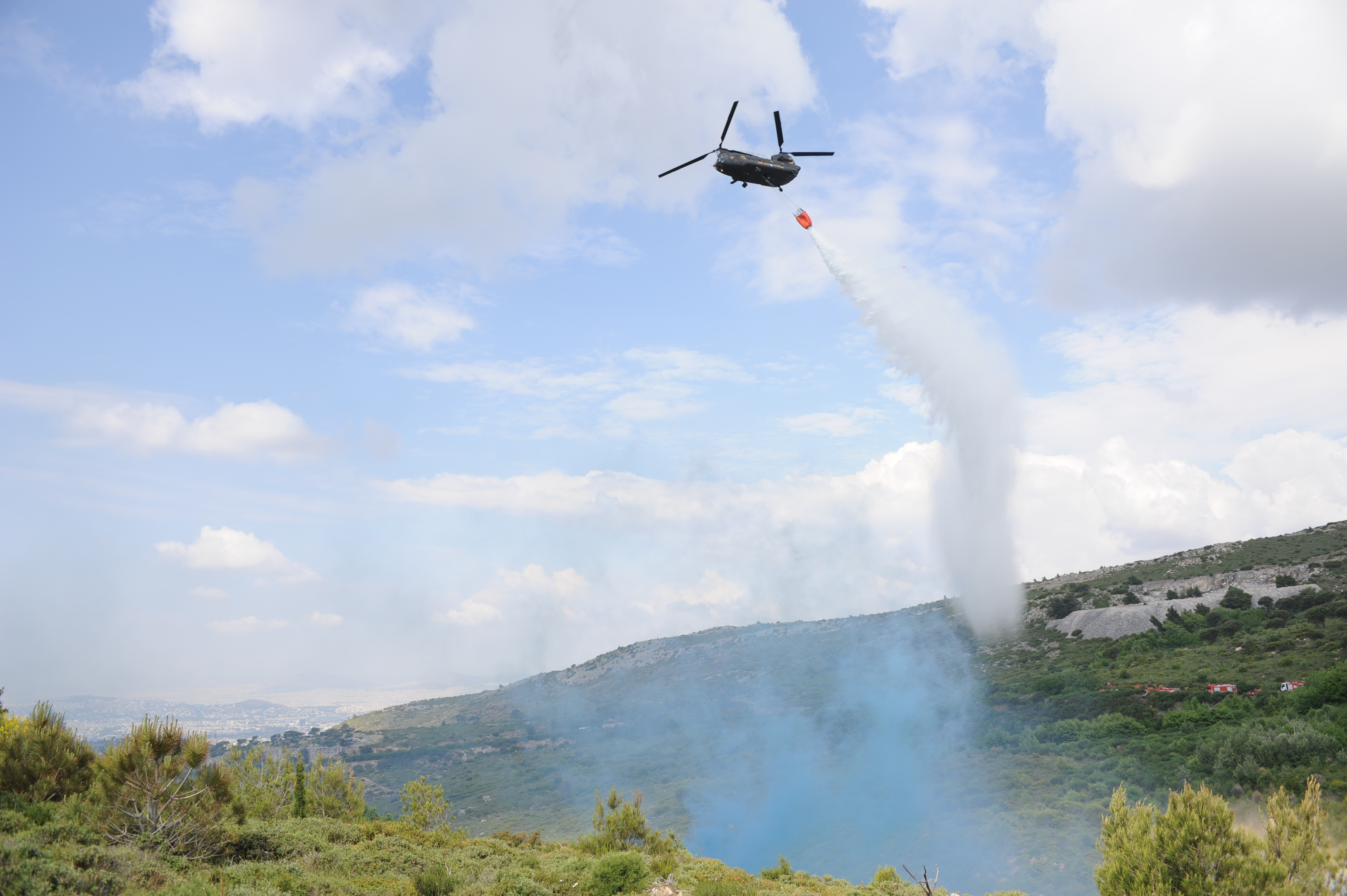 Κατά τη διεξαγωγή της άσκησης χρησιμοποιήθηκαν τα μη στελεχωμένα αεροσκάφη του Π.Σ. για τον εντοπισμό της εστία της πυρκαγιάς, τον τελικό έλεγχό της και την πρώτη αποτύπωση της καμένης έκτασης, πυροσβεστικά αεροσκάφη (PZL-CL), ελικόπτερο του Γ.Ε.Σ. (CHINOOK) και τα ελικόπτερα του Π.Σ. ΒΚ-117 και SUPER PUMA. Σε ετοιμότητα παρέμεναν κοντά στο πεδίο της άσκησης ένα ασθενοφόρο του ΠΣ και το Πυροσβεστικό Συνεργείο Αθηνών. Το κινητό επιχειρησιακό κέντρο «Όλυμπος» σε συνεργασία με το Ε.Σ.Κ.Ε. είχαν το συντονισμό όλων των εμπλεκόμενων φορέων της άσκησης.