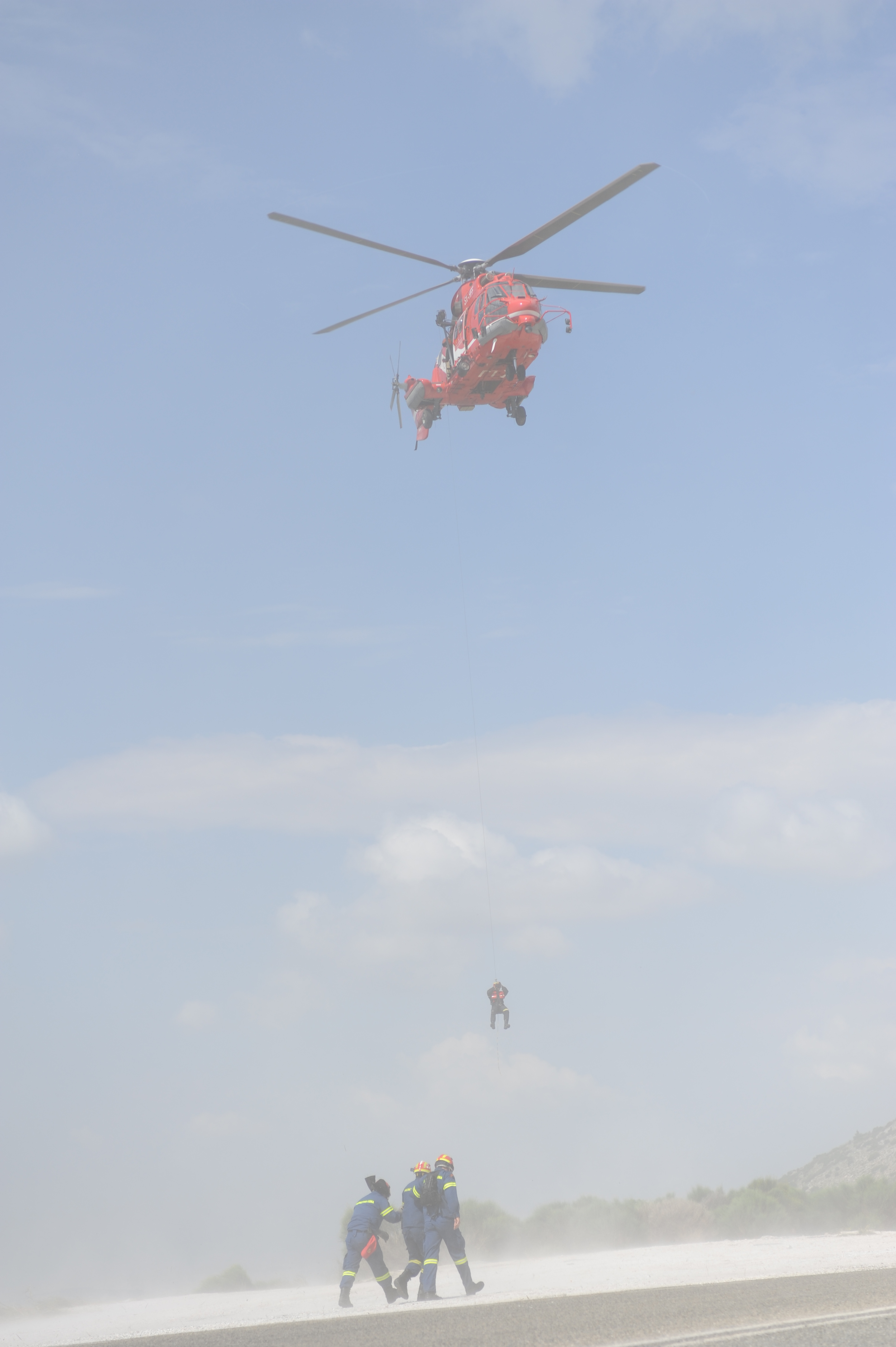 Κατά τη διάρκεια της κατάσβεσης ύστερα από πτώση τραυματίζεται πυροσβέστης του πεζοπόρου της 1ης ΕΜΑΚ στον δεξί ώμο. Λόγω του ότι η πυρκαγιά είναι σε πλήρη εξέλιξη αποφασίζεται να ενεργοποιήσει το SUPER PUMA για να παραλάβει και να μεταφέρει τον πυροσβέστη σε ασφαλές σημείο.