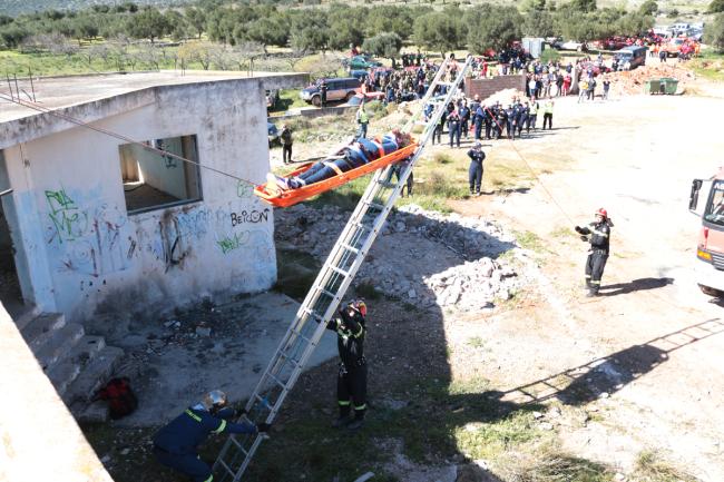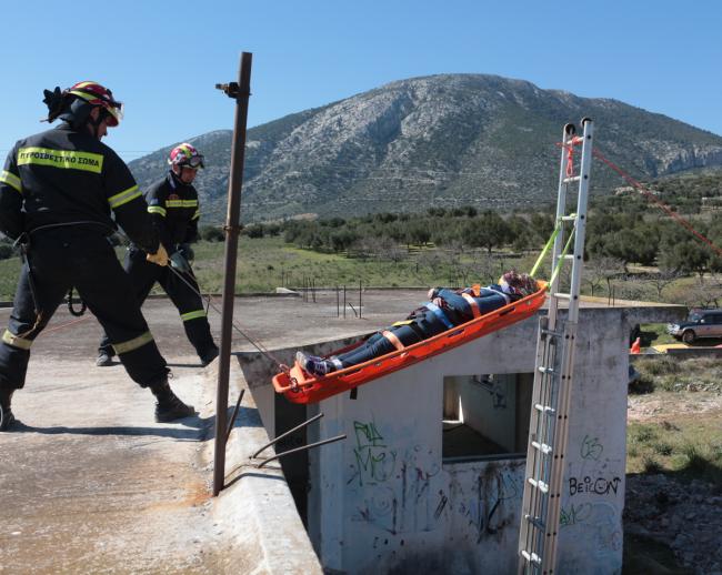 • Το τέταρτο προέβλεπε επιχείρηση διάσωσης, με την χρήση διασωστικού τρίποδα, εγκλωβισμένου ατόμου σε κτήριο που είχε καταρρεύσει, με κάθετη διείσδυση