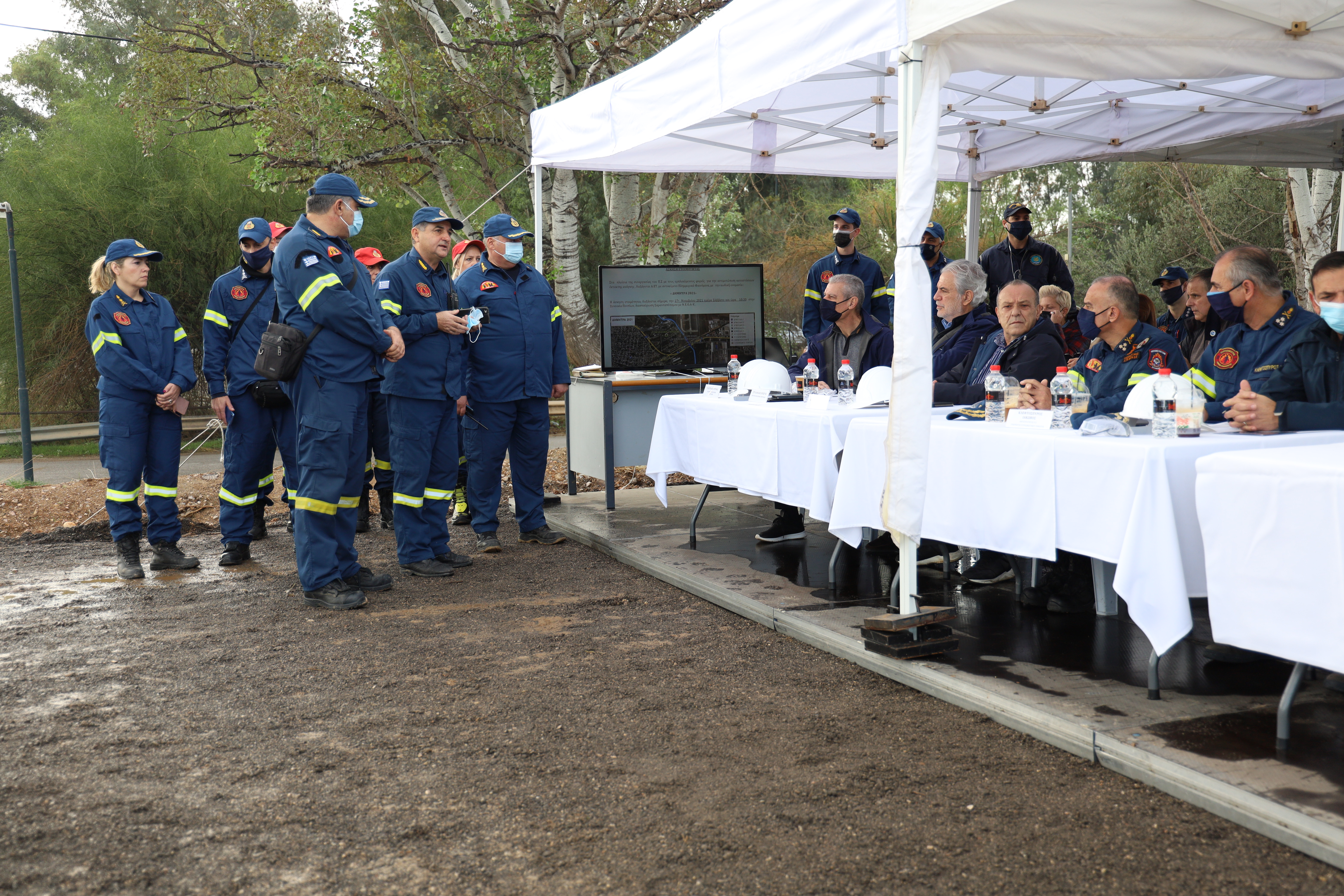 Παρουσία του Υπουργού Κλιματικής Κρίσης και Πολιτικής Προστασίας Χρήστου Στυλιανίδη, του Υφυπουργού Ευάγγελου Τουρνά, του Εθνικού Διοικητή Πολιτικής Προστασίας Θεοδόσιου Δημακογιάννη, του Αρχηγού Πυροσβεστικού Σώματος Αντιστράτηγου Στέφανου Κολοκούρη, καθώς και του Γενικού Διευθυντή Συντονισμού της Γ.Γ.Π.Π., Φοίβου Θεοδώρου, πραγματοποιήθηκε σήμερα, Σάββατο, 27 Νοεμβρίου 2021 και ώρα 10:30, στην Ελευσίνα, η άσκηση ετοιμότητας, για την αντιμετώπιση επιπτώσεων από πλημμυρικά φαινόμενα, με την κωδική ονομασία «ΔΗΜΗΤΡΑ 2021».