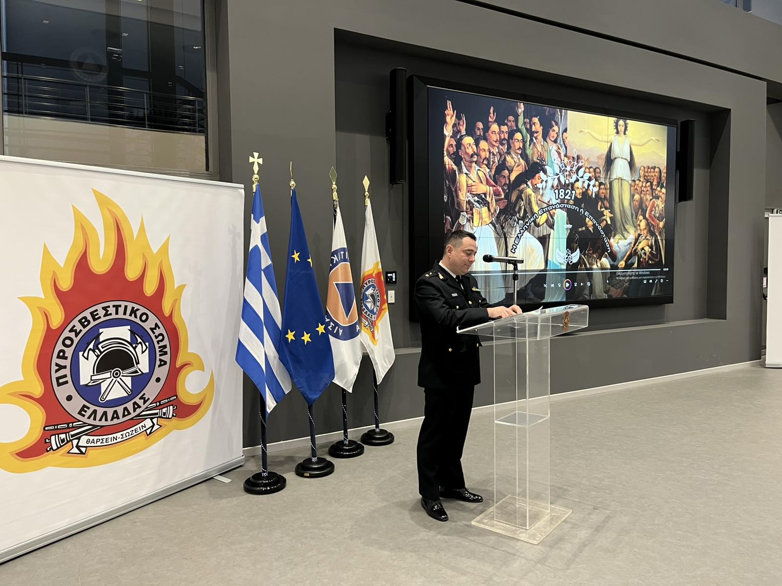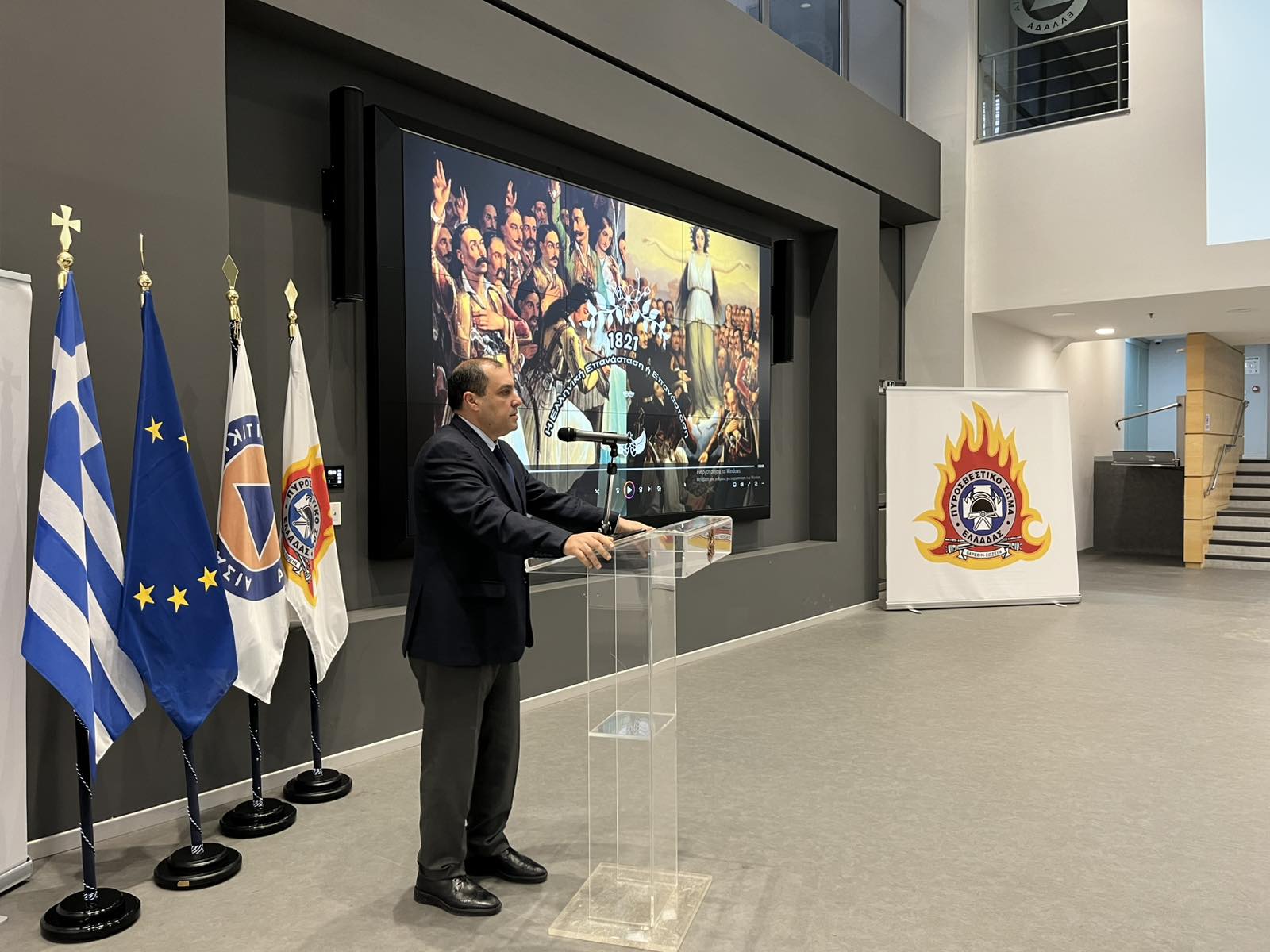 Ομιλητής στην φετινή εκδήλωση, της 204ης επετείου, ήταν ο Επιπυραγός Σαμαράς Κωνσταντίνος, Τμηματάρχης Δικαστικού της Διεύθυνσης Νομικής Υποστήριξης του Α.Π.Σ., ο οποίος εξήρε την προσφορά και τη γενναιότητα των Ελλήνων, με ιδιαίτερη έμφαση στο νόημα και τα μηνύματα της επανάστασης του 1821 και μεταξύ άλλων, ανέφερε ότι: