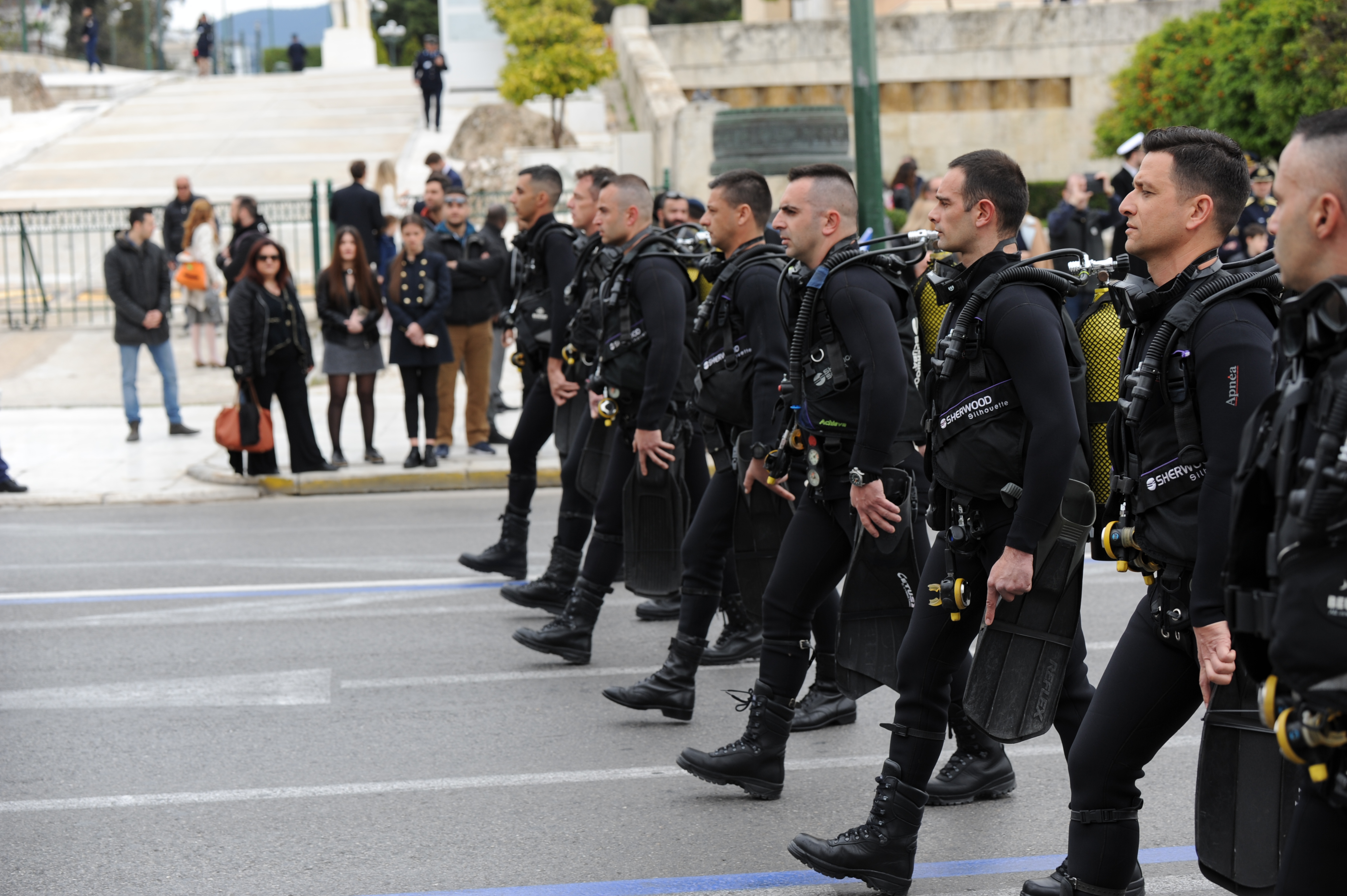 Η παρέλαση των πεζοπόρων και μηχανοκίνητων τμημάτων των Ενόπλων Δυνάμεων και των Σωμάτων Ασφαλείας υπήρξε υποδειγματική.