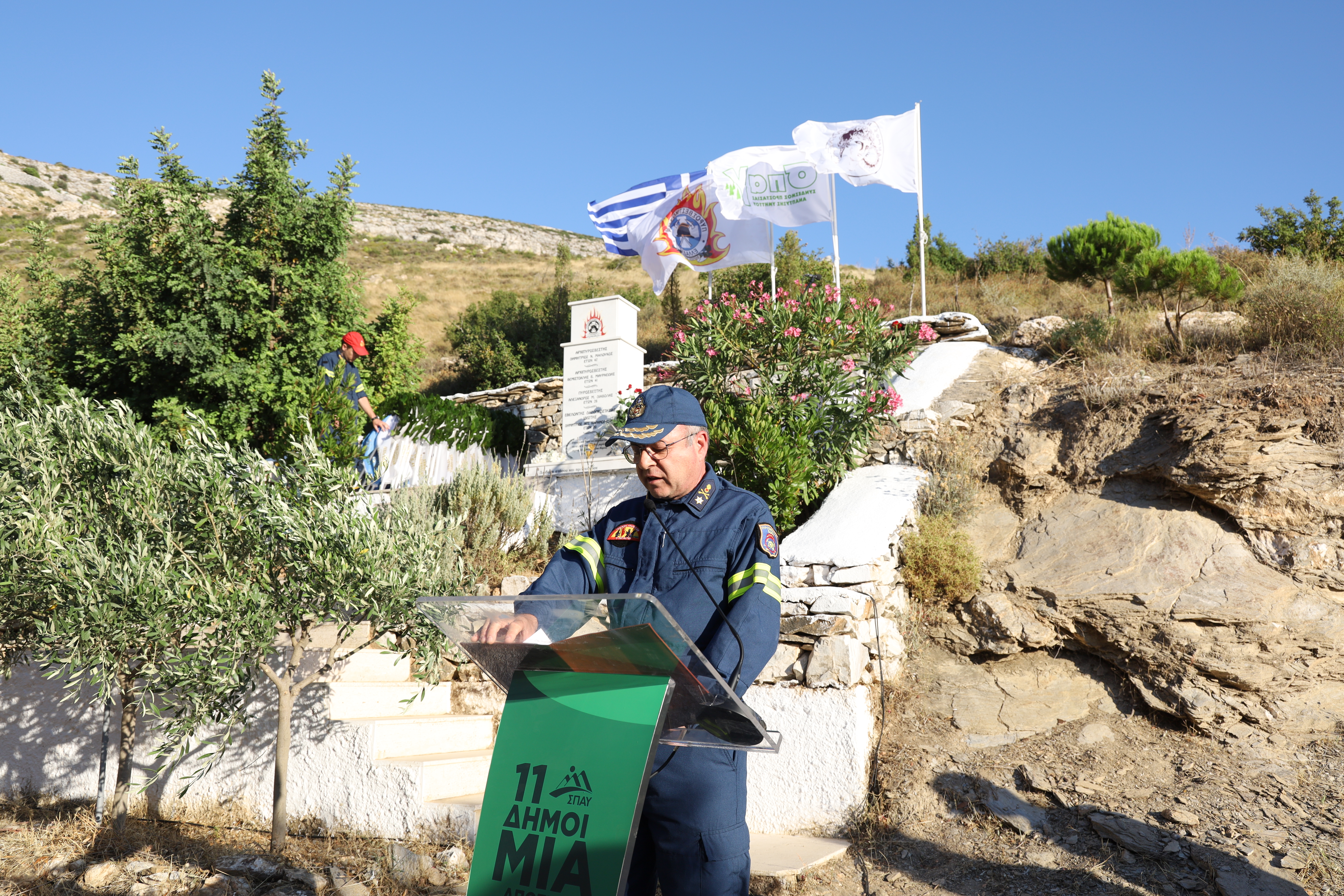 Στην εκδήλωση απηύθυναν σύντομο χαιρετισμό, o Διοικητής Πυροσβεστικών Υπηρεσιών Αθηνών Αρχιπύραρχος Θεόδωρος Βάγιας, εκ μέρους της Περιφέρειας Αττικής ο Αντιπεριφερειάρχης Κεντρικού Τομέα Αθηνών Γεώργιος Δημόπουλος και εκ μέρους του ΣΠΑΥ ο Δήμαρχος Καισαριανής Χρήστος Βοσκόπουλος.