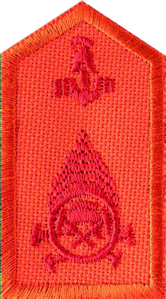 Στην υπ' αριθ. 9 στολή υπηρεσίας στο δεξί πέτο του περιλαίμιου φέρεται επίρραμμα πλάτους 35χιλ. από ύφασμα χρώματος αντίστοιχου με το διακριτικό βαθμού και στο οποίο κεντώνται με ανεξίτηλη κλωστή:
