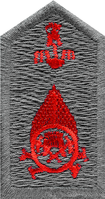 β. το έμβλημα του Πυροσβεστικού Σώματος πλάτους 20χιλ. και μήκους 35χιλ. και στο άνω μέρος κράνος με θώρακα διαστάσεων 15 επί 15χιλ.