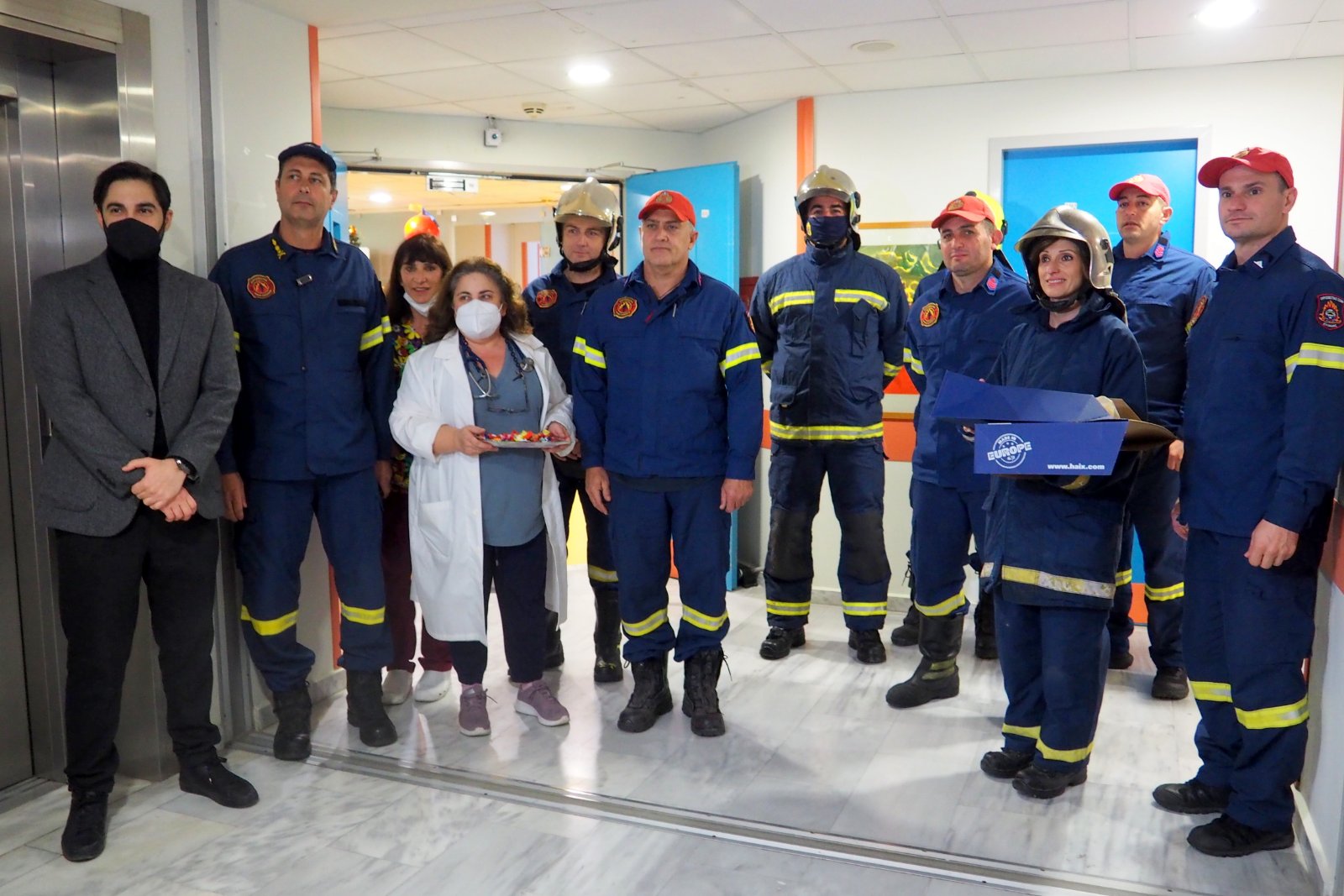 Ιπτάμενοι Πυροσβέστες προσγειώθηκαν στα νοσοκομεία ΠαΓΝΗ, "Βενιζέλειο-Πανάνειο", Γ.Ν. Αγίου Νικολάου, Γ.Ν.Ν. Χανίων και Γ.Ν. Ρεθύμνου Κρήτης, μοιράζοντας δώρα και χαμόγελα στους ασθενείς