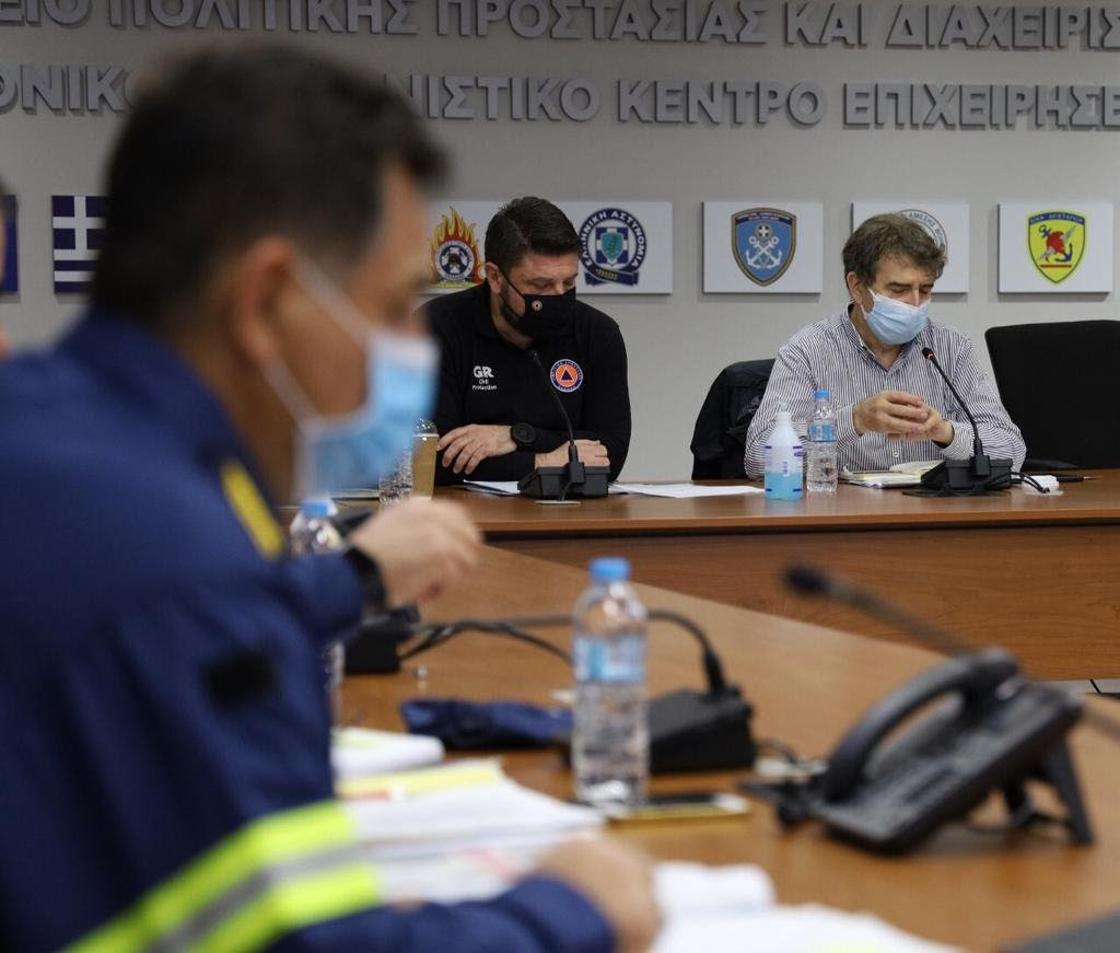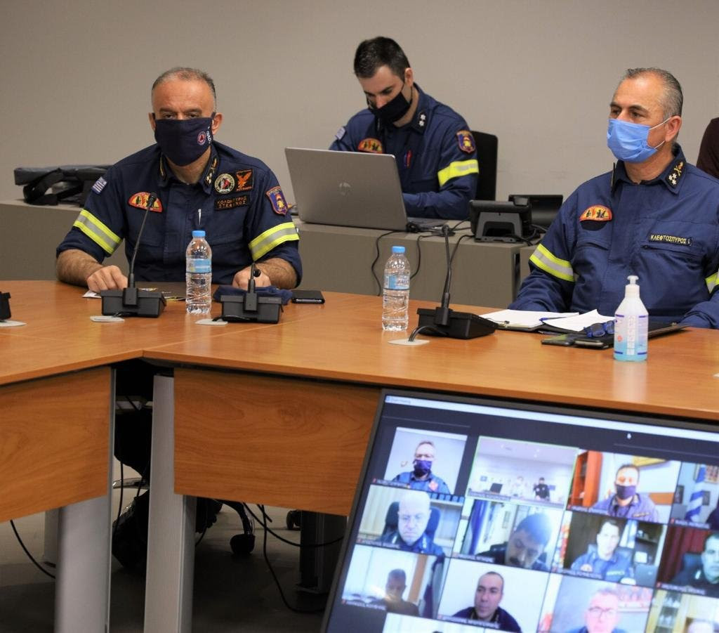 Στη συνέχεια, πραγματοποιήθηκε μέσω τηλεδιάσκεψης Σύσκεψη Επιχειρησιακού Σχεδιασμού, στην οποία μετείχαν ο Διοικητής του Εθνικού Συντονιστικού Κέντρου Επιχειρήσεων και Διαχείρισης Κρίσεων (ΕΣΚΕΔΙΚ), Υποστράτηγος Σπύρος Βαρσάμης., οι έξι περιφερειακοί Συντονιστές Επιχειρήσεων ΠΣ, καθώς και οι Διοικητές των 13 Περιφερειακών Πυροσβεστικών Υπηρεσιών της χώρας.