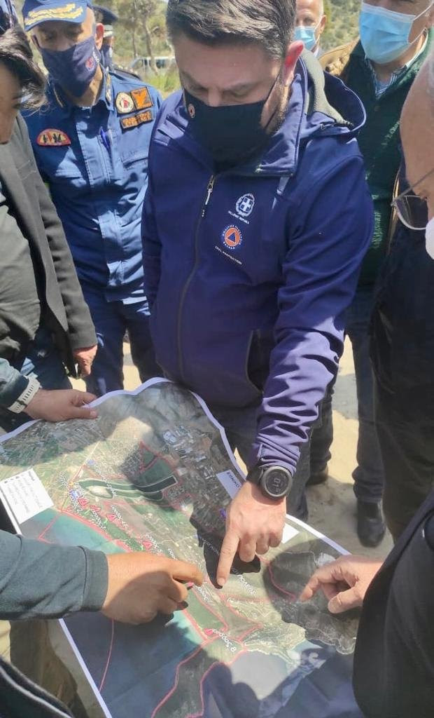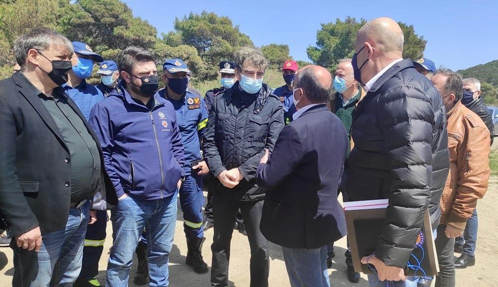 Οι Μιχάλης Χρυσοχοΐδης και Νίκος Χαρδαλιάς, συνοδευόμενοι από τον Γενικό Γραμματέα Πολιτικής Προστασίας, τον Αρχηγό και Υπαρχηγό ΠΣ, τον Προϊστάμενο Κλάδου Επιχειρήσεων ΠΣ, τον Συντονιστή Επιχειρήσεων ΠΣ με έδρα την Αθήνα, Υποστράτηγο Ιωάννη Πετρούτσο, τον Διοικητή Περιφερειακής Πυροσβεστικής Υπηρεσίας Αττικής, Αρχιπύραρχο Κωνσταντίνο Θεοφιλόπουλο και τον Διευθυντή Τροχαίας Αττικής, Ταξίαρχο Σπύρο Λάσκο, πραγματοποίησαν στη συνέχεια εναέρια κατόπτευση περιοχών της βορειοανατολικής Αττικής και ειδικότερα της Ιπποκράτειου Πολιτείας στους πρόποδες της Πάρνηθας, καθώς και του Σχοινιά, με έμφαση στη θωράκιση του πευκοδάσους. Στο πλαίσιο αυτό, πραγματοποίησαν συνάντηση με τον Δήμαρχο Μαραθώνα, Στέργιο Τσίρκα, τον Αντιδήμαρχο αρμόδιο για θέματα Πολιτικής Προστασίας, Χρήστο Στάμο, καθώς και εκπροσώπους του Φορέα Διαχείρισης Εθνικού Πάρκου Σχινιά – Μαραθώνα, Υμηττού και Ανατολικής Αττικής, με τους οποίους συζήτησαν εκτενώς τα ζητήματα που άπτονται της πυροπροστασίας στην περιοχή.