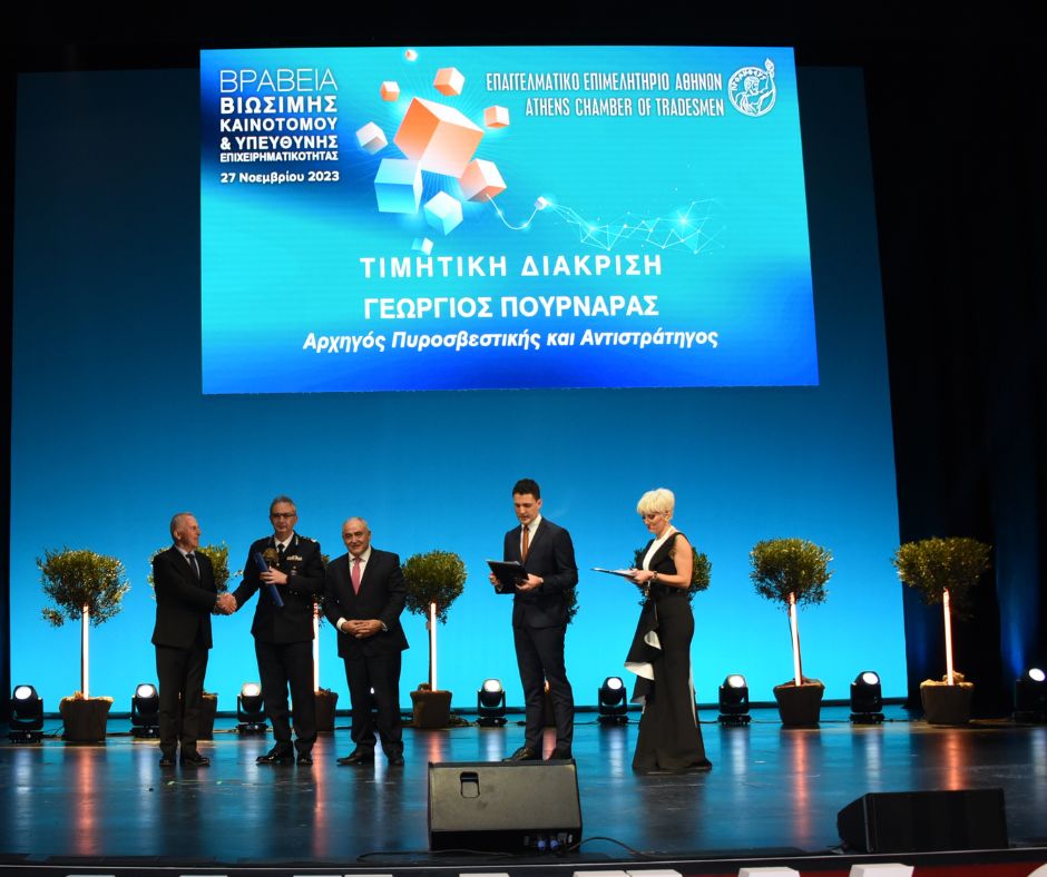 Στον Αρχηγό του Πυροσβεστικού Σώματος Αντιστράτηγο Γεώργιο Πουρναρά απονεμήθηκε το βραβείο «Βιώσιμης – Καινοτόμου & Υπεύθυνης Επιχειρηματικότητας»