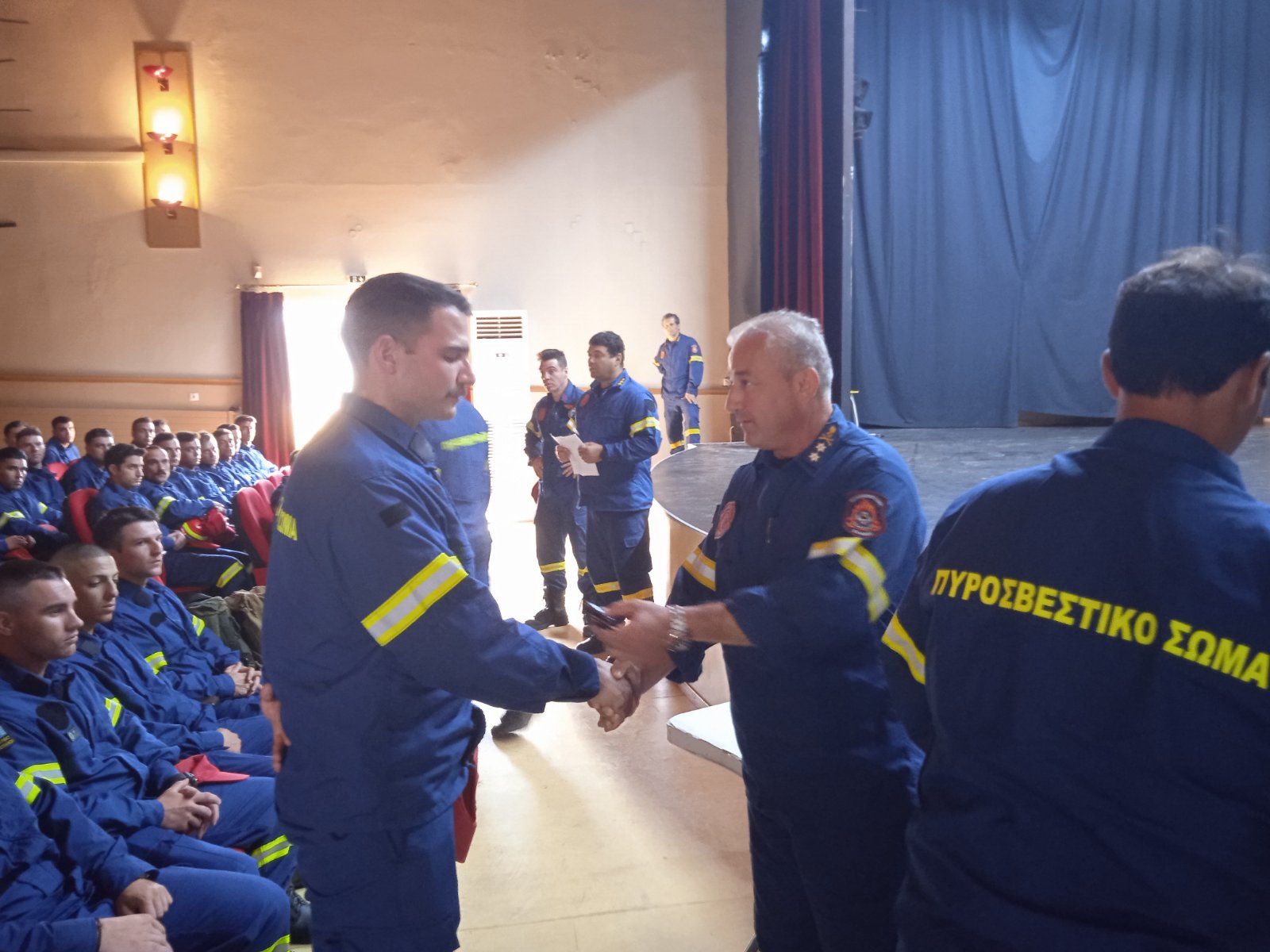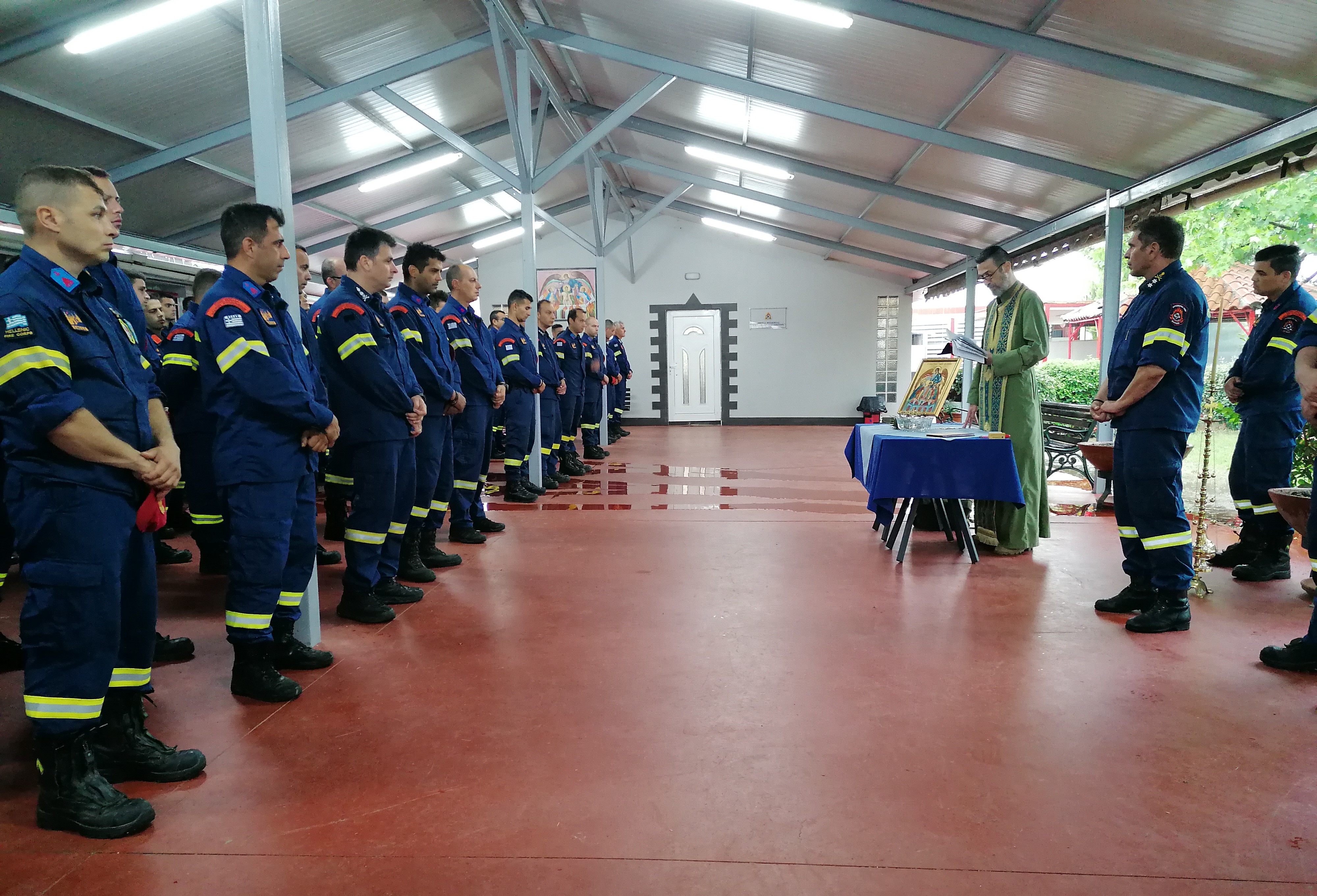 Στην 1η Ε.ΜΟ.Δ.Ε. με έδρα την Ελευσίνα, η τελετή πραγματοποιήθηκε παρουσία του Συντονιστή Επιχειρήσεων Αττικής, Υποστράτηγου ΠΣ Παναγιώτη Νιάφα και του Διοικητή της Υπηρεσίας, Αντιπύραρχου Ιωάννη Κολοβού.