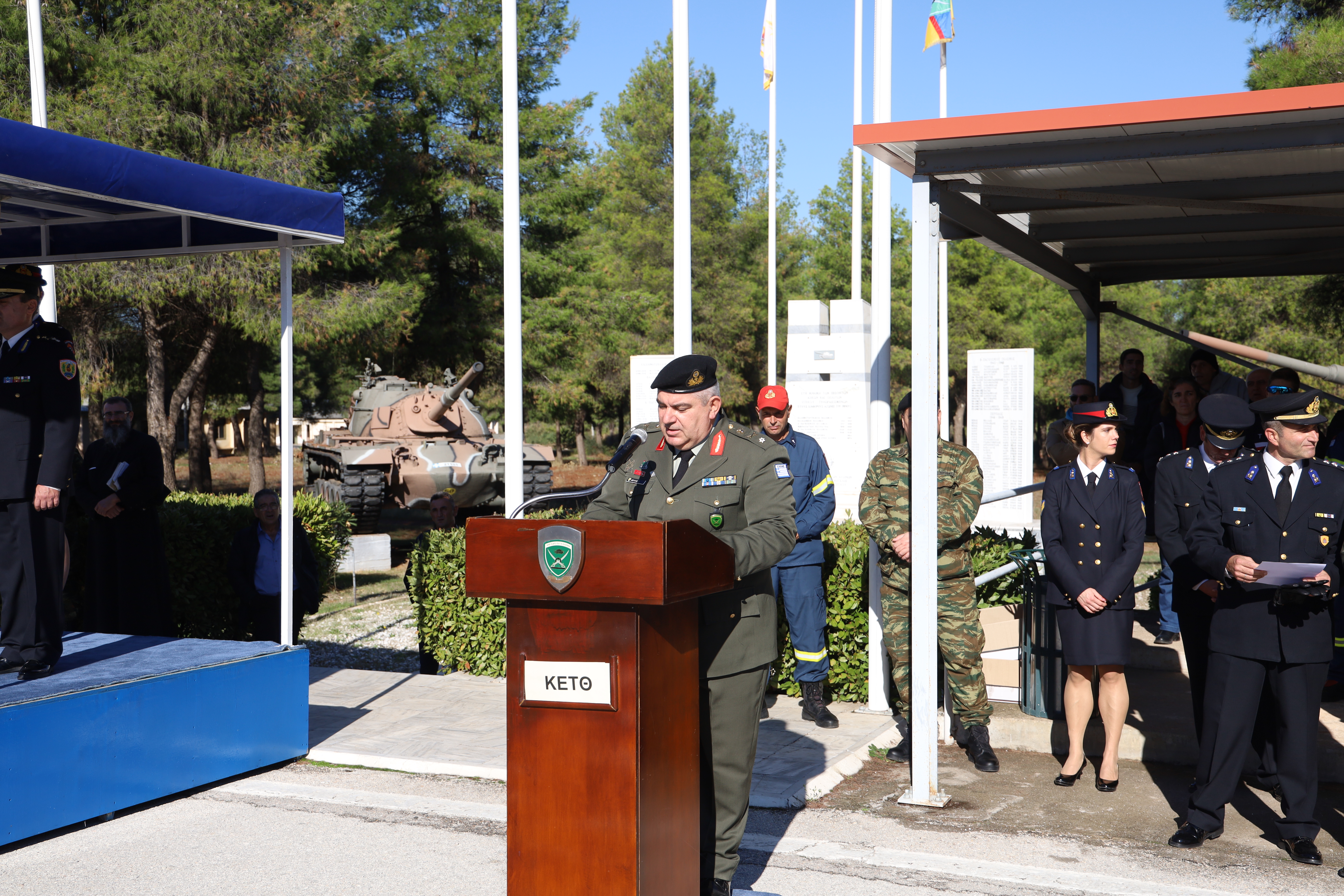 Λαμβάνοντας το λόγο ο Διοικητής του ΚΕΤΘ Αυλώνα, Ταξίαρχος (ΤΘ) Ιωάννης Δέλλας, δήλωσε την απόλυτη ικανοποίησή του για το αποτέλεσμα της στρατιωτικής εκπαίδευσης, αναδεικνύοντας τη συνεργασία του Ελληνικού Στρατού με το Πυροσβεστικό Σώμα, που συμβάλει στην εισαγωγική εκπαίδευση των Δοκίμων και ανέφερε μεταξύ άλλων: «… Δόκιμοι Ανθυποπυραγοί και Πυροσβέστες, ολοκληρώθηκε σήμερα μετά από οχτώ εβδομάδες η βασική στρατιωτική σας εκπαίδευση στο Κέντρο Εκπαιδεύσεως Τεθωρακισμένων, η οποία είναι σημαντική διότι προάγει τις θεμελιώδεις αρχές της πειθαρχίας, της οργάνωσης και της ασφάλειας, που είναι βασικά στοιχεία για την επιτυχή εκτέλεση της αποστολής σας. Οι εκπαιδευτές, σας παρείχαν εκπαίδευση σε μια μεγάλη ποικιλία στρατιωτικών αντικειμένων με ενδεικτικά τις ασκήσεις πυκνής τάξης, τον οπλισμό και τα πυρομαχικά, την πρακτική διδασκαλία βολής και την εκτέλεση βολών, την ατομική τακτική, τις επικοινωνίες καθώς και την σωματική αγωγή. Ως Κέντρο Εκπαιδεύσεως Τεθωρακισμένων καταβάλλαμε κάθε δυνατή προσπάθεια ώστε να σας παρασχεθούν κατά την παραμονή σας στο στρατόπεδο, οι καλύτερες δυνατές συνθήκες διαβίωσης και σίτισης. Είμαι βέβαιος ότι αποκομίσατε το μέγιστο δυνατό όφελος και αυτό θα συντελέσει σημαντικά στην εκπλήρωση των αποστολών που θα αναλάβετε στο μέλλον … »