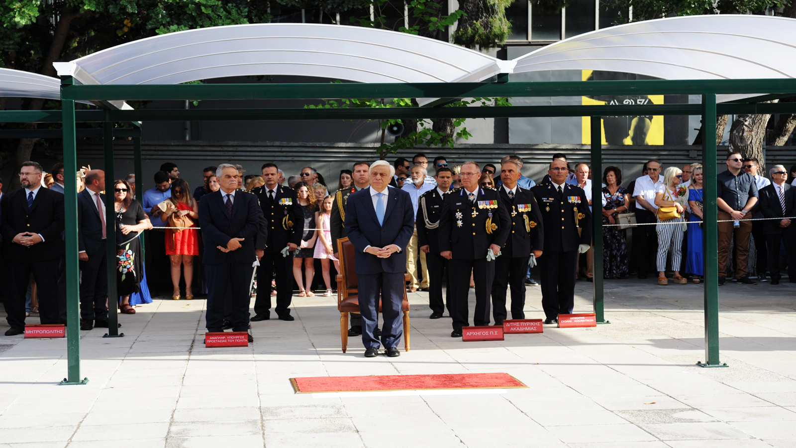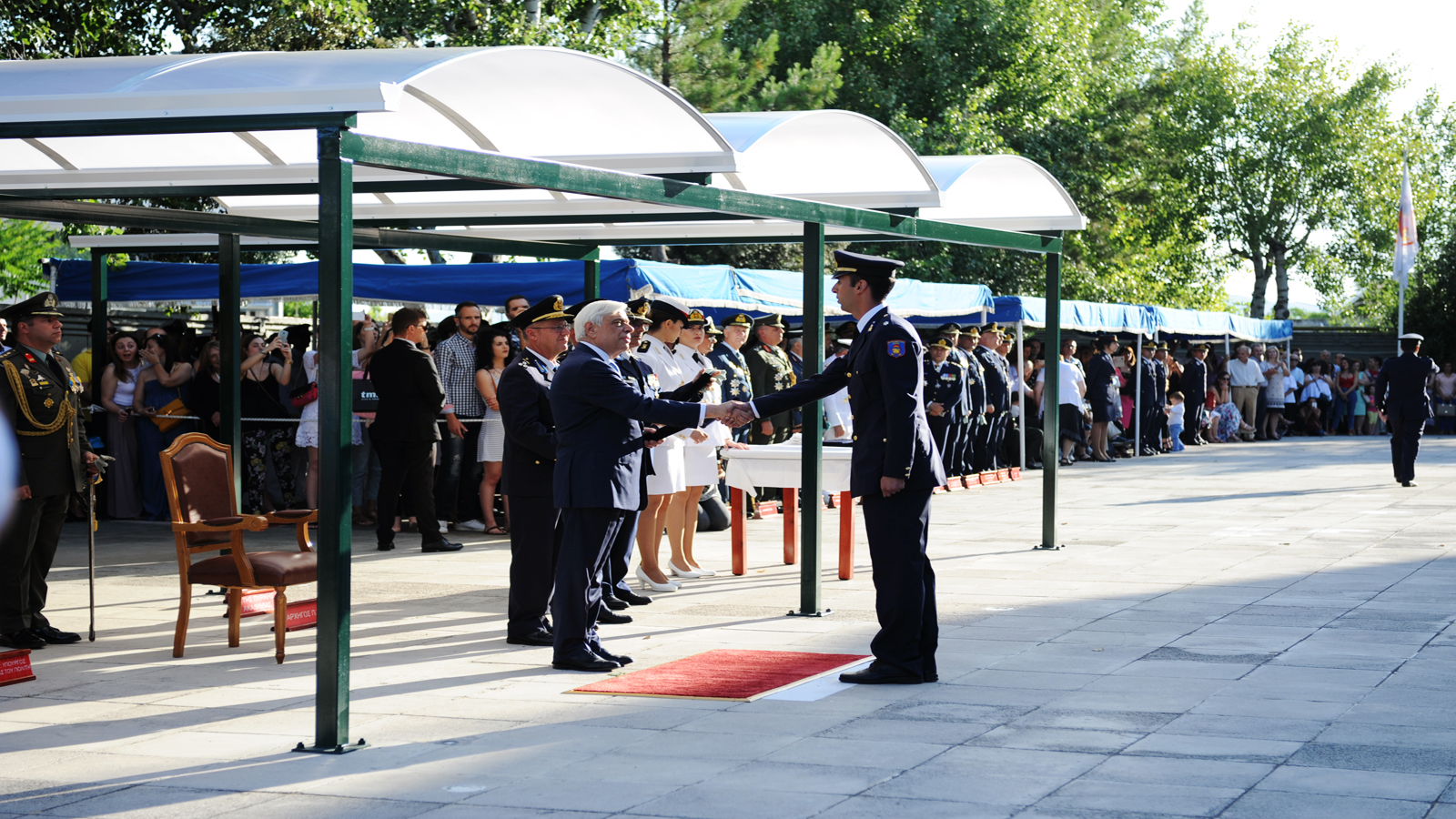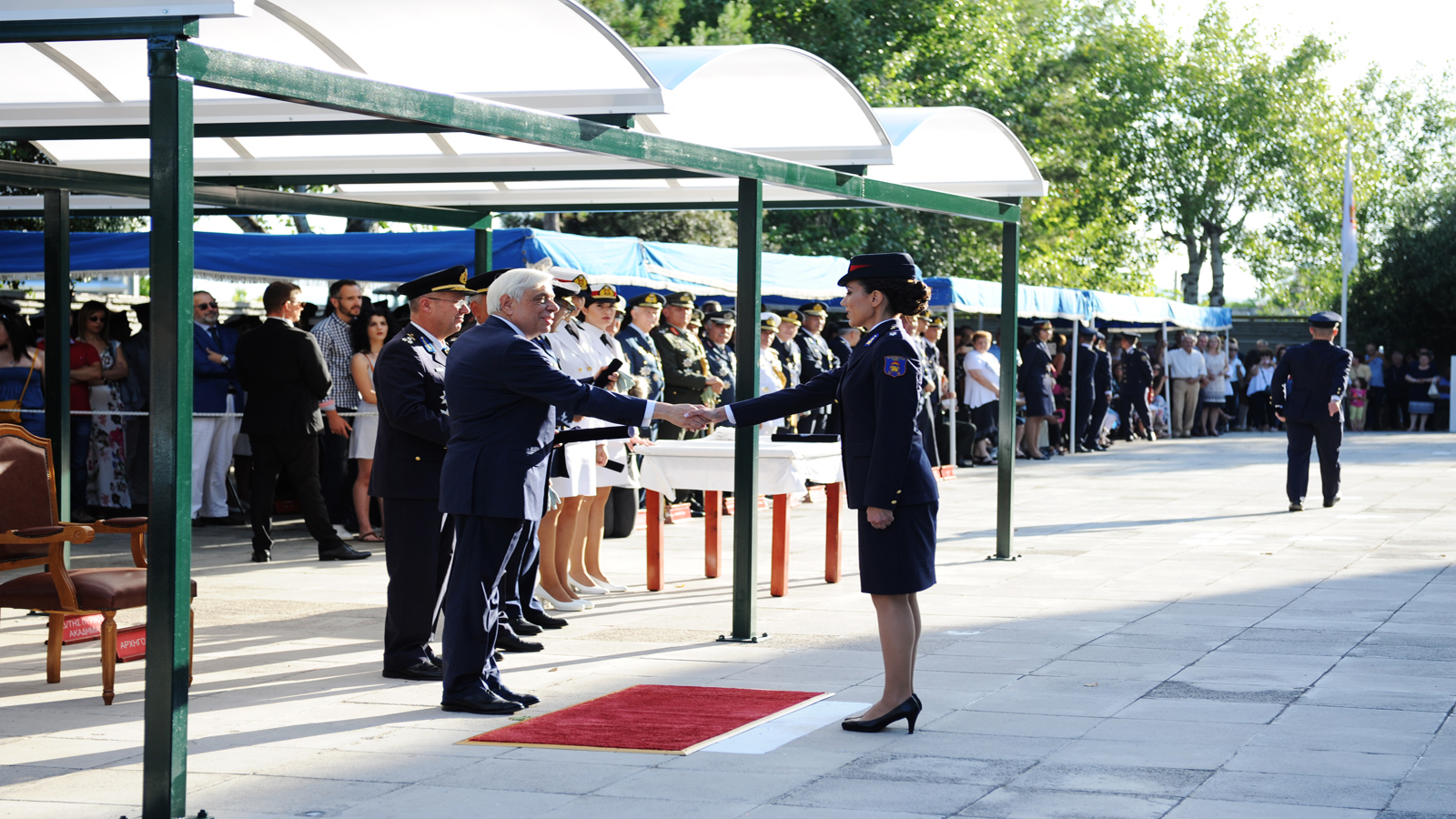 Τα πτυχία στους νέους Ανθυποπυραγούς παρέδωσε η Α.Ε. o Πρόεδρος της Ελληνικής Δημοκρατίας Προκόπης Παυλόπουλος, παρουσία του Αναπληρωτή Υπουργού Προστασίας του Πολίτη Νίκου Τόσκα, ως εκπροσώπου της κυβέρνησης, του Αρχηγού του Πυροσβεστικού Σώματος Αντιστράτηγου ΠΣ Σωτηρίου Τερζούδη και του Διοικητή της Πυροσβεστικής Ακαδημίας Αρχιπύραρχου Σπυρίδωνα Βαρσάμη.