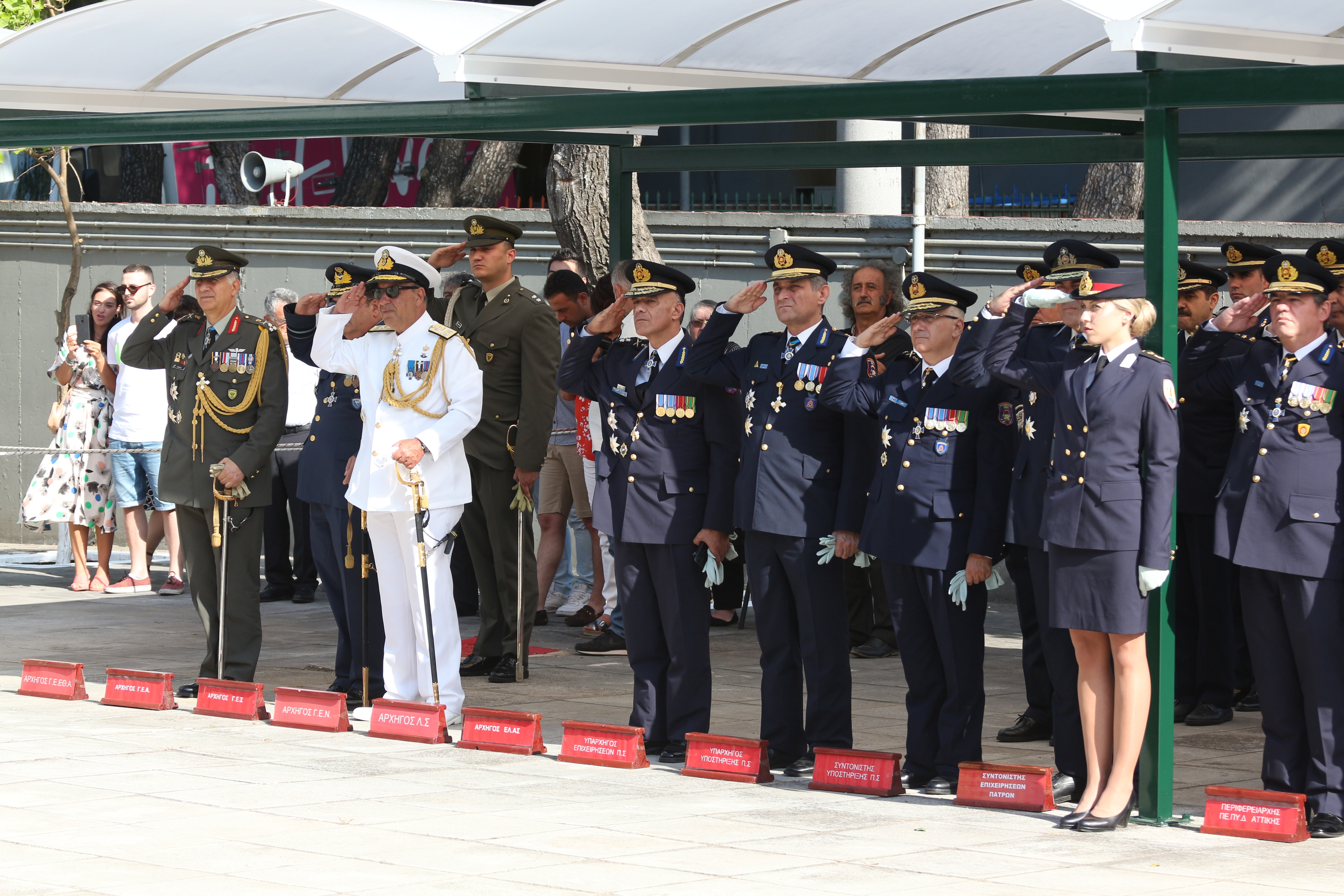 Την εκδήλωση με την παρουσία τους τίμησαν: Η βουλευτής του ΣΥ.ΡΙΖ.Α. Χαρά Καφαντάρη, ο ανεξάρτητος βουλευτής της Β΄ Αθηνών Γρηγόρης Ψαριανός, ο εκπρόσωπος του Κ.Κ.Ε. Γιώργος Παλιούρας, ο Αρχηγός ΓΕΕΘΑ Πτέραρχος Χρήστος Χριστοδούλου, ο Αρχηγός Γ.Ε.Α. Αντιπτέραρχος Γεώργιος Μπλιούμης, ο Υπαρχηγός Γ.Ε.Σ. Αντιστράτηγος Δημήτριος Μπονώρας ως εκπρόσωπος του Αρχηγού Γ.Ε.Σ., ο Υποναύαρχος ΠΝ Νικόλαος Πέτσος ως εκπρόσωπος του Αρχηγού Γ.Ε.Ν., ο Αρχηγός του Λιμενικού Σώματος - Ελληνικής Ακτοφυλακής Αντιναύαρχος Λ.Σ. Σταμάτιος Ράπτης, η Ταξίαρχος Σοφία Λαμπροπούλου ως εκπρόσωπος του Αρχηγού της ΕΛ.ΑΣ. και ο Γενικός Γραμματέας Πολιτικής Προστασίας Γιάννης Ταφύλλης.
