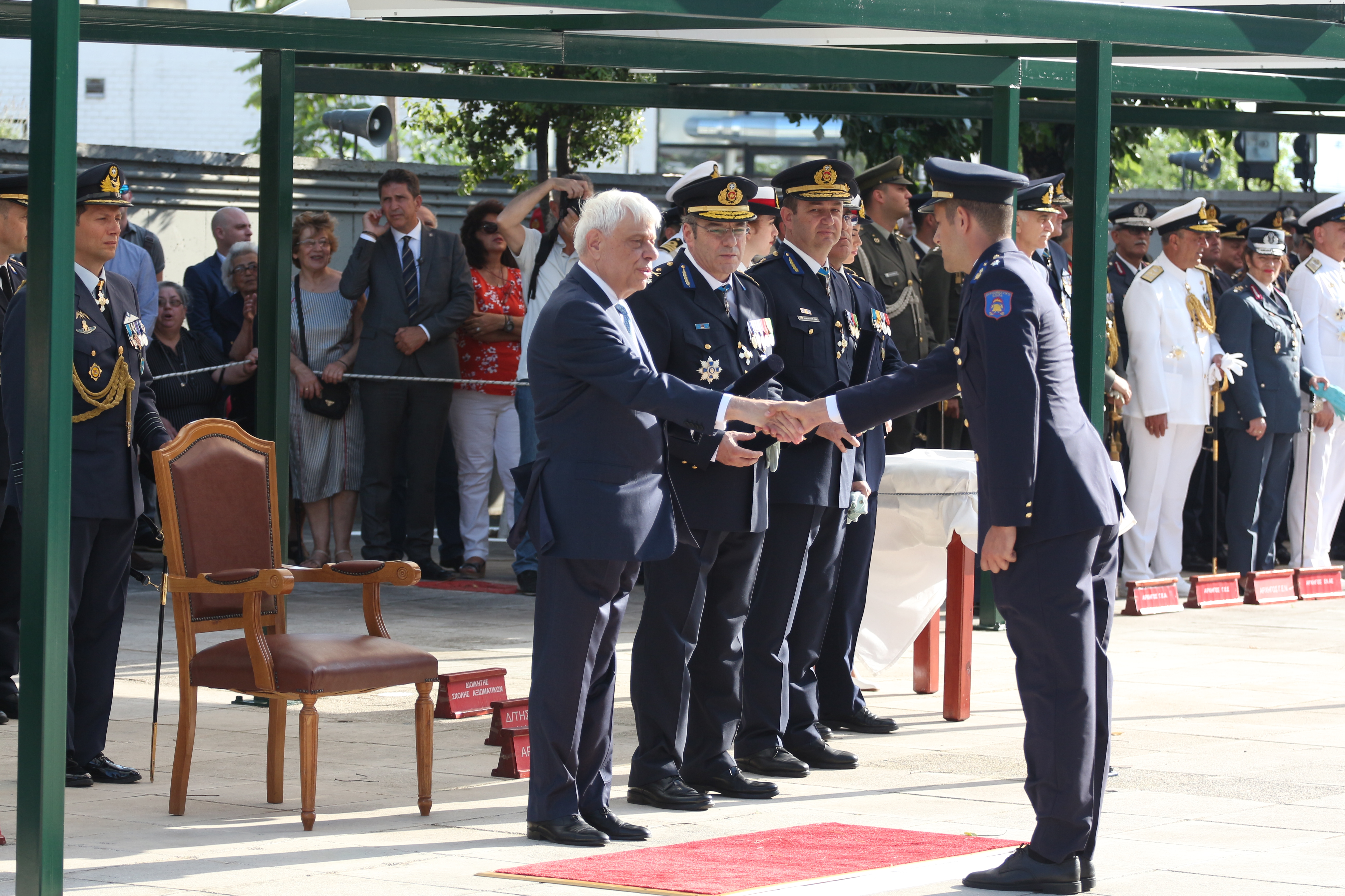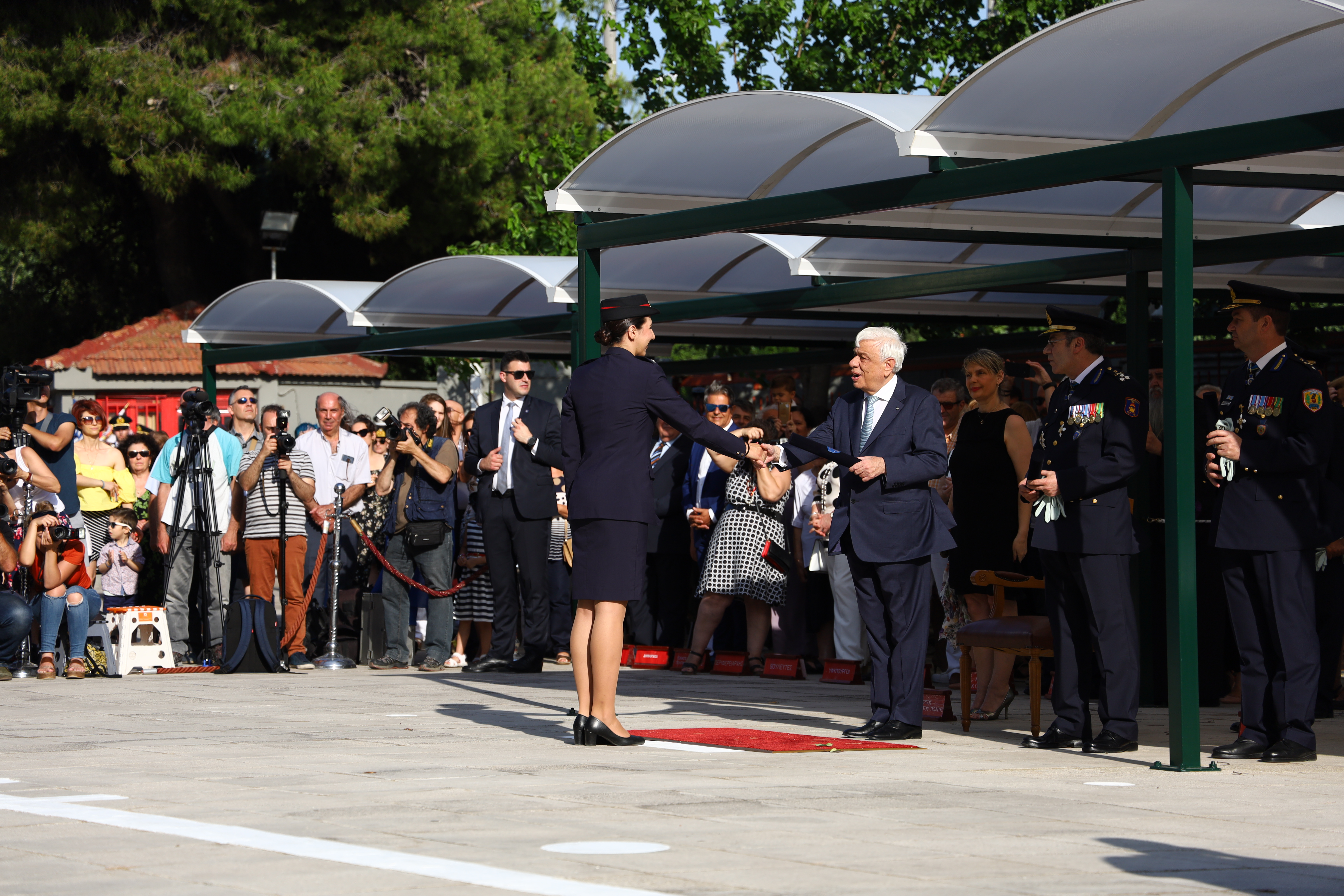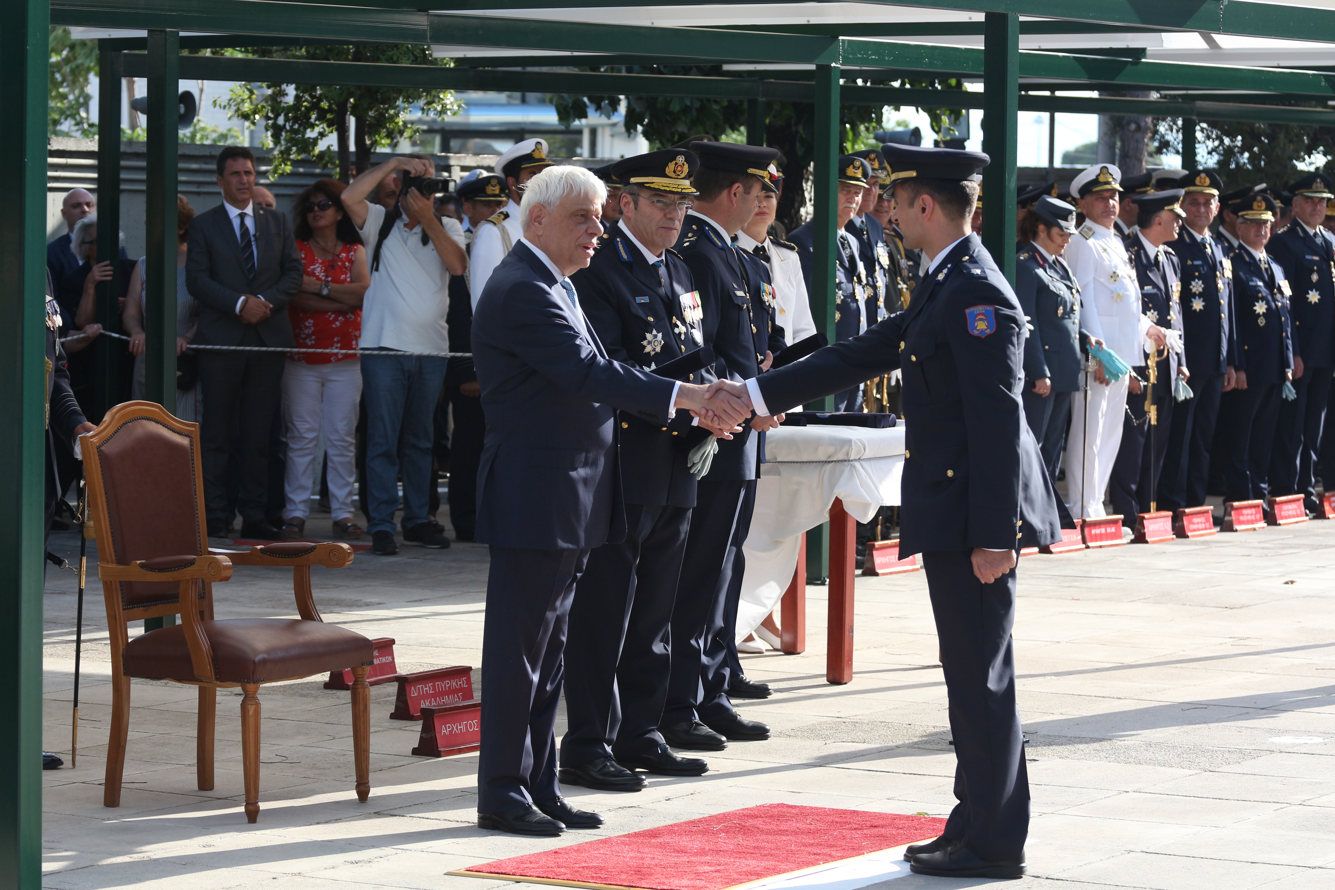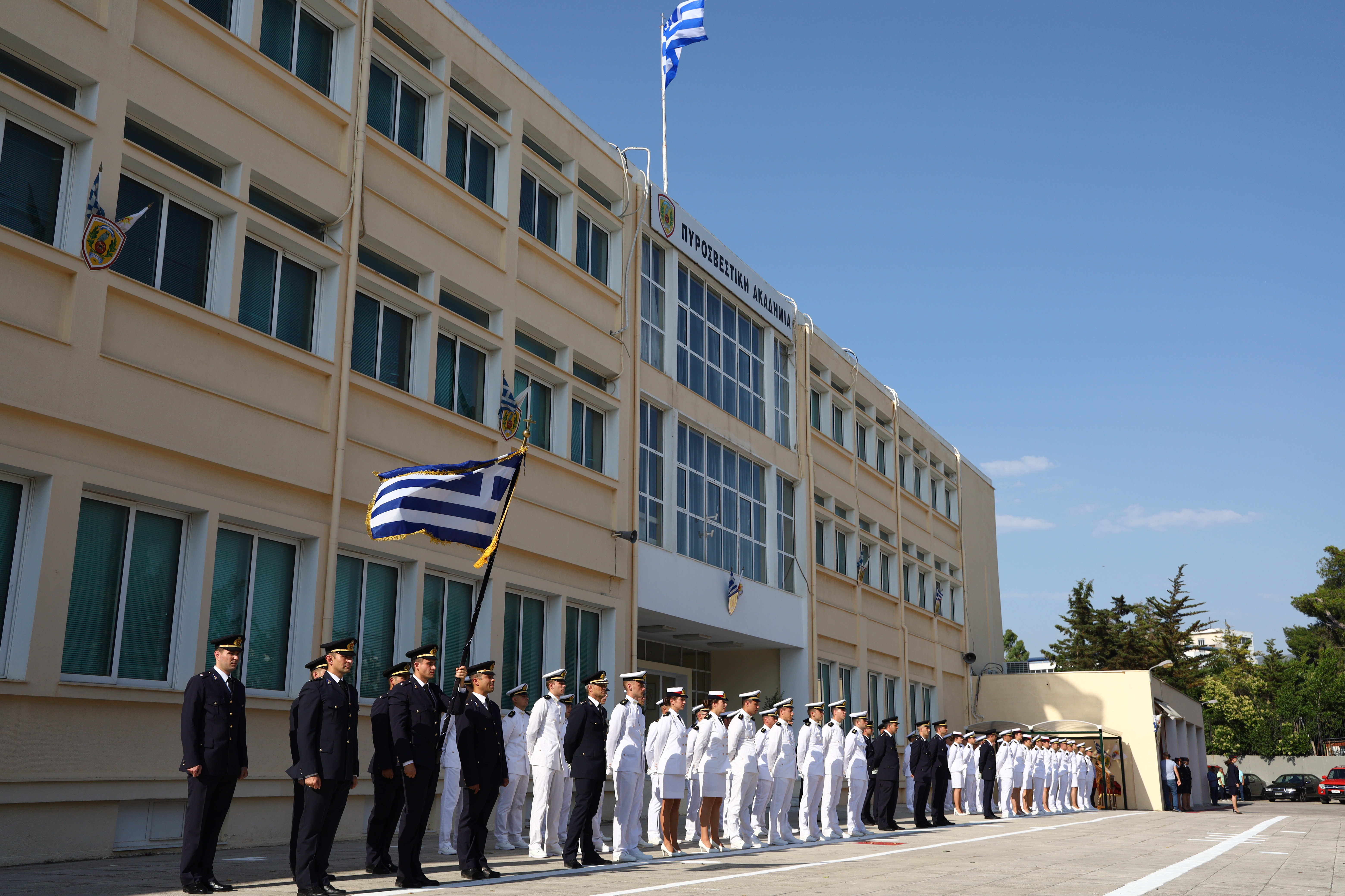 Τα πτυχία στους νέους Ανθυποπυραγούς παρέδωσε η Α.Ε. o Πρόεδρος της Ελληνικής Δημοκρατίας Προκόπης Παυλόπουλος, παρουσία της Υφυπουργού Προστασίας του Πολίτη Κατερίνας Παπακώστα- Σιδηροπούλου, ως εκπροσώπου της κυβέρνησης, του Αρχηγού του Πυροσβεστικού Σώματος Αντιστράτηγου ΠΣ Βασιλείου Ματθαιόπουλου και του Διοικητή της Πυροσβεστικής Ακαδημίας Αρχιπύραρχου Εμμανουήλ Δαμουλάκη.