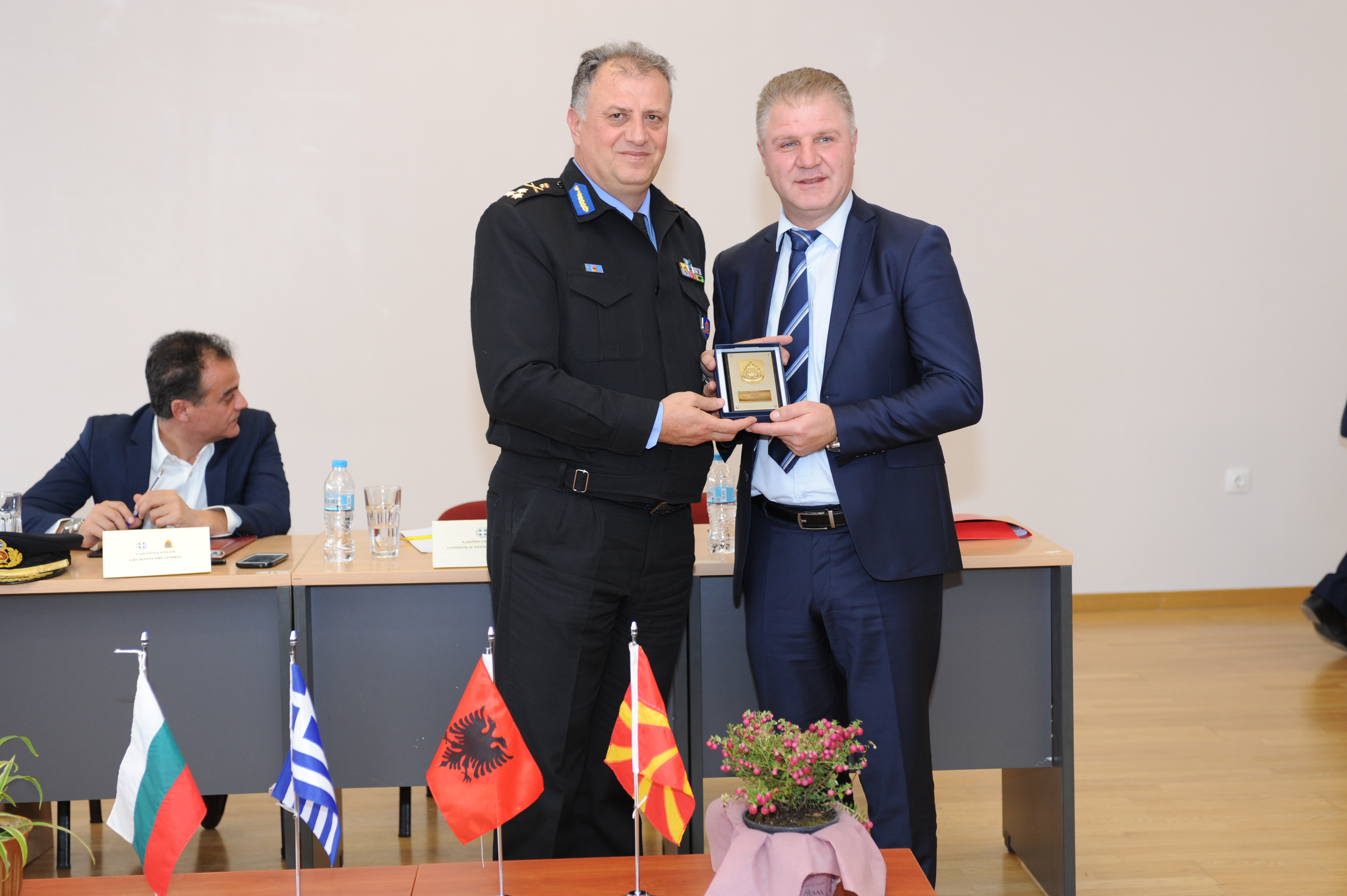 Ο Αρχηγός του Πυροσβεστικού Σώματος Αντιστράτηγος ΠΣ Βασίλειος Καπέλιος συναντήθηκε με τον Γενικό Διευθυντή Υπηρεσιών Πυρόσβεσης και Διάσωσης της Αλβανίας Alfred Kristuli, τον Περιφερειακό Διευθυντή Πολιτικής Προστασίας του Blagoevgrad της Βουλγαρίας Georgi Parmakov και τον Διευθυντή Υπηρεσιών Προστασίας και Διάσωσης της ΠΓΔΜ Adnan Dzaferoski και αντάλλαξαν απόψεις και προτάσεις σχετικά με την υφιστάμενη κατάσταση και τις προοπτικές της διασυνοριακής συνεργασίας, με στόχο την αύξηση της ικανότητας των υπηρεσιών των τεσσάρων χωρών για παροχή έγκαιρης και αποτελεσματικής απόκρισης, σε περιπτώσεις εκτάκτων αναγκών που σχετίζονται με φυσικές και ανθρωπογενείς καταστροφές.