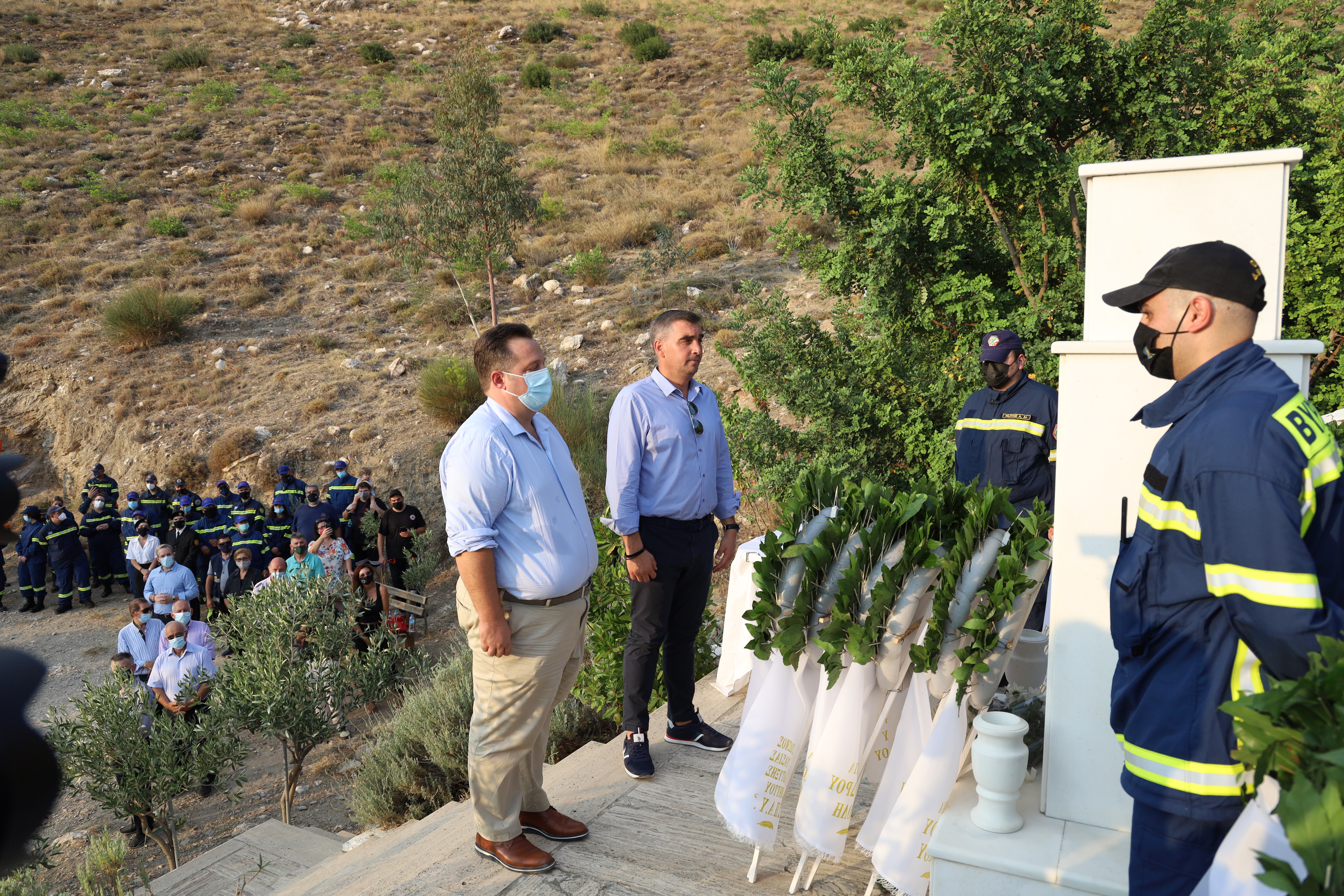 Επίσης στην τελετή, εκτός από τις οικογένειες, τους συγγενείς και τους φίλους των αδικοχαμένων συναδέλφων, παρέστησαν ο Αντιπρόεδρος του ΣΠΑΥ & Δήμαρχος Ηλιούπολης Γιώργος Χατζηδάκης, ο Δήμαρχος Βύρωνα Γρηγόρης Κατωπόδης, ο Διοικητής Πυροσβεστικών Υπηρεσιών Αττικής Κωνσταντίνος Θεοφιλόπουλος, ο Διοικητής 2ου Πυροσβεστικού Σταθμού Αθηνών Αντιπύραρχος Γεώργιος Μπαλαούρας, ο Διοικητής του 7ου Πυροσβεστικού Σταθμού Αθηνών Αντιπύραρχος Σωτήριος Κακλέας, εκπρόσωπος του Δασαρχείου Πεντέλης, εκπρόσωποι όμορων Δήμων γύρω από τον Υμηττό, εκπρόσωποι Εθελοντών Π.Σ., εκπρόσωποι συνδικαλιστικών ενώσεων του Π.Σ. και των ενώσεων αποστράτων του Πυροσβεστικού Σώματος καθώς και πλήθος συναδέλφων.