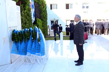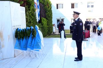 Ο Αρχηγός του Π.Σ. στην ομιλία του, τόνισε μεταξύ άλλων : «[…] Παρευρισκόμενοι όλοι εμείς σε αυτό εδώ τον χώρο, έχουμε ως καθήκον να θυμηθούμε τις πράξεις αυτοθυσίας των συναδέλφων μας και να δώσουμε όρκο αδιαπραγμάτευτο και απόλυτα σταθερό, ότι θα υπερασπιστούμε τα ιδανικά για τα οποία έπεσαν και τα οποία προσδιορίζουν και καθορίζουν διαχρονικά τη διαδρομή και την αποστολή του σώματος. Τους υποσχόμαστε ότι η θυσία τους δεν θα πάει χαμένη και ότι εμείς θα συνεχίσουμε το έργο τους με γνώμονα πάντα τον επαγγελματισμό και το αίσθημα ευθύνης απέναντι στον Έλληνα Πολίτη[…]»