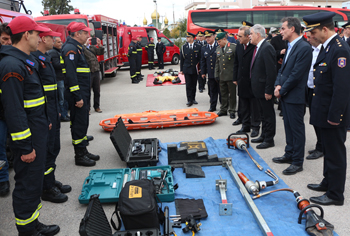Στη συνεχεία πραγματοποιήθηκε στην αίθουσα εκδηλώσεων της 1ης Ε.ΜΑ.Κ. ο απολογισμός της Αντιπυρικής περιόδου 2015, όπου και απεύθυναν χαιρετισμό ο Αναπληρωτής Υπουργός Προστασίας του Πολίτη κ. Νίκος Τόσκας και ο Γενικός Γραμματέας Πολιτικής Προστασίας κ. Γιάννης Καπάκης.