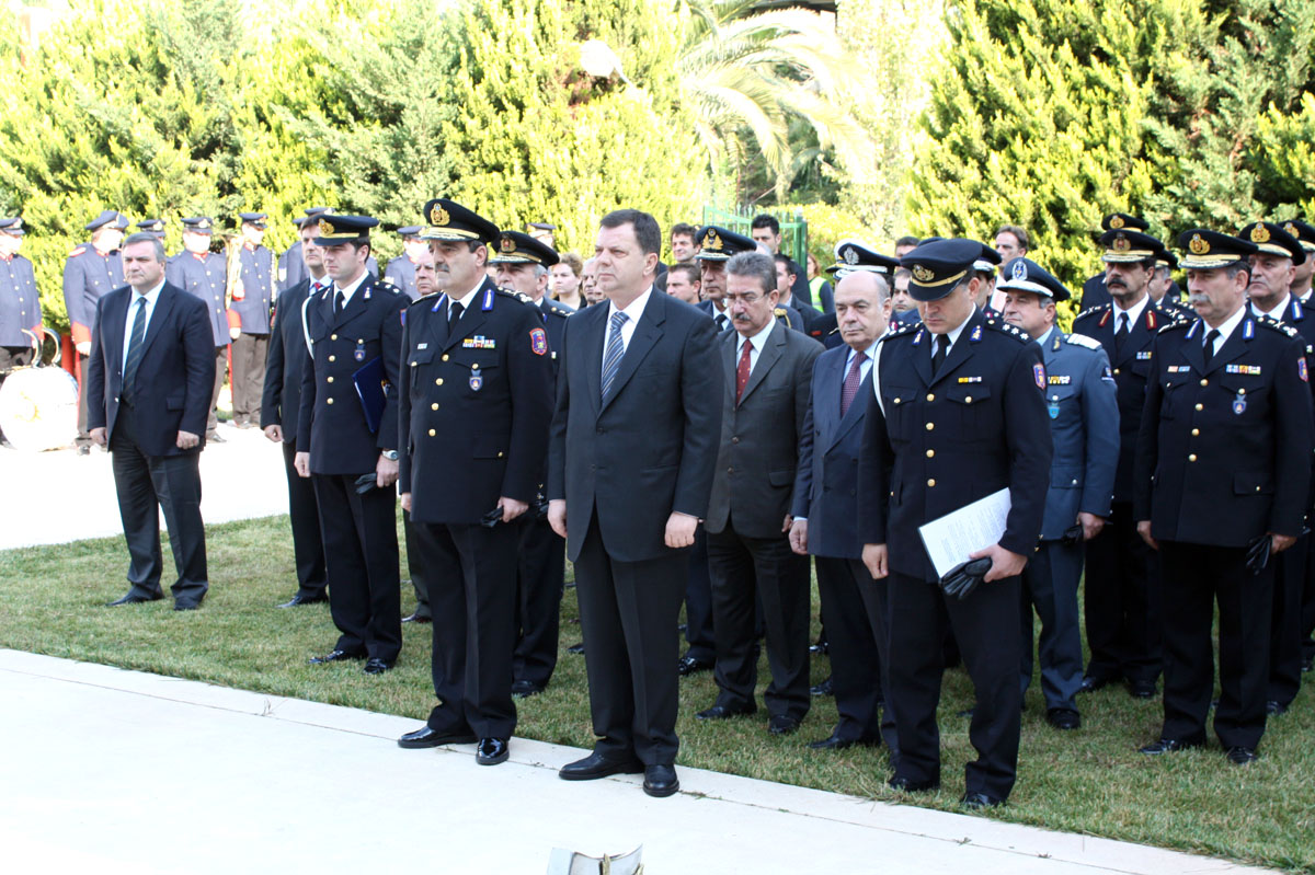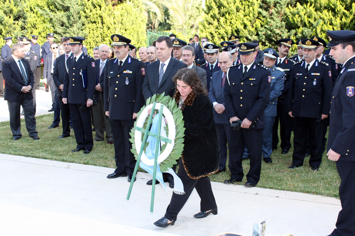 Στεφάνια κατέθεσαν ο Υφυπουργός Εσωτερικών κ. Παναγιώτης Χηνοφώτης, ο Αρχηγός του Π.Σ. Αντιστράτηγος Αθανάσιος Κοντοκώστας, οι εκπρόσωποι των συνδικαλιστικών οργανώσεων του Π.Σ., καθώς και οι συγγενείς των πεσόντων.