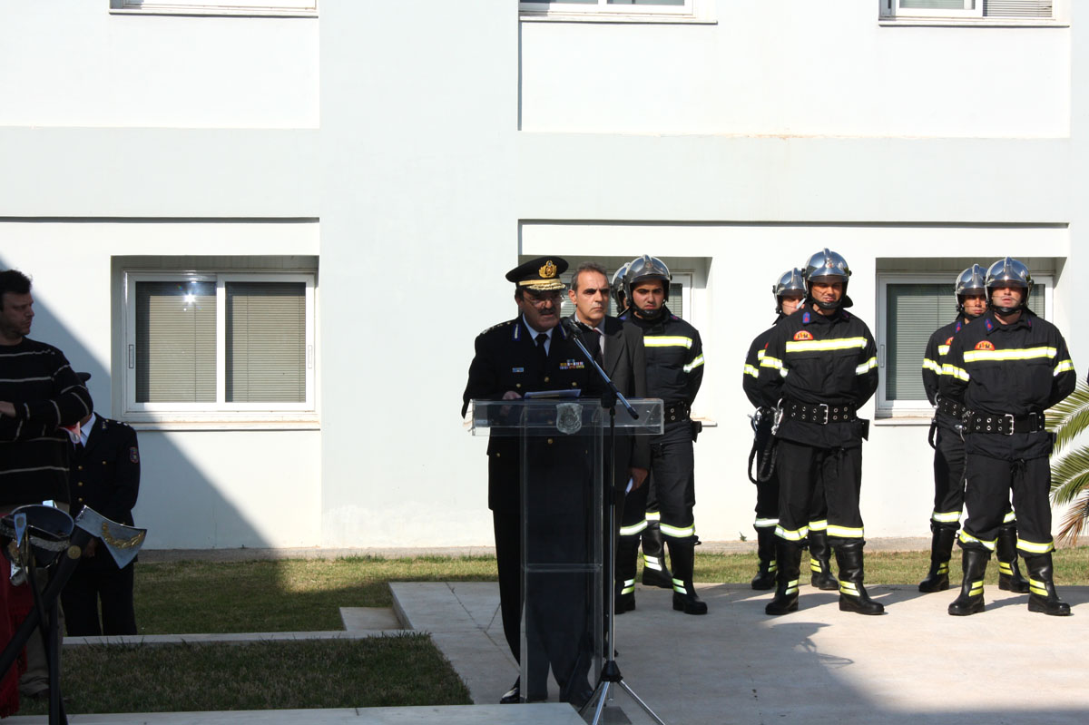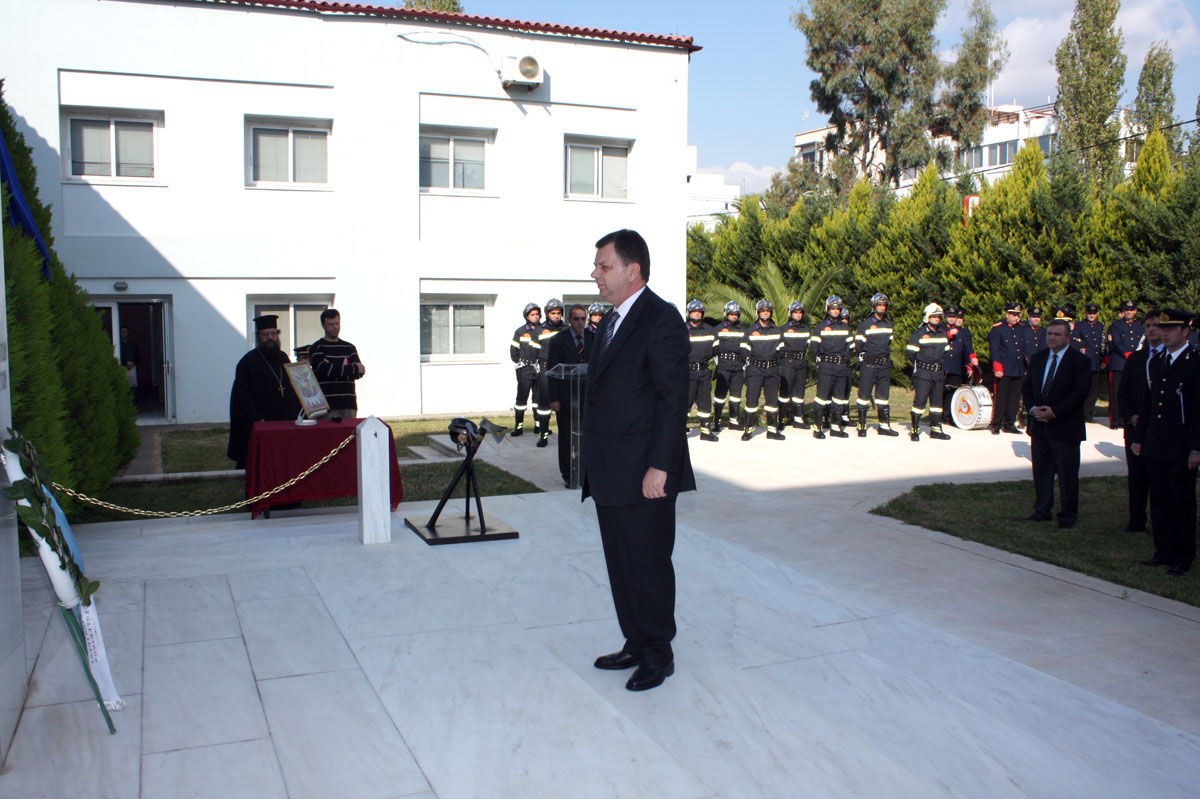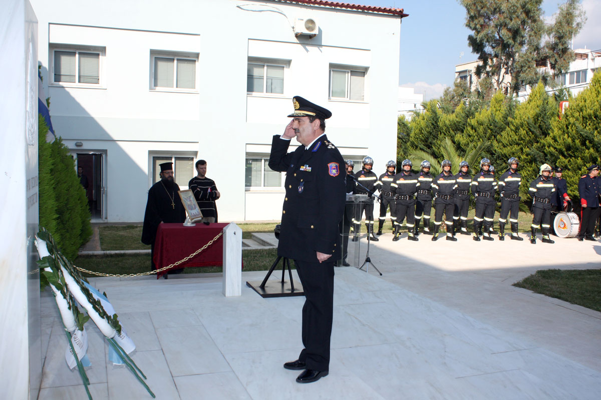 Προηγούμενα, ο Αρχηγός του Π.Σ. Αντιστράτηγος Αθανάσιος Κοντοκώστας, στη σύντομη ομιλία του, υπογράμμισε ότι «με την τελετή αυτή, που έχει καθιερωθεί πλέον ως θεσμός, αποδίδουμε στους πεσόντες μας τιμές που αρμόζουν σε ήρωες πολέμου. Γιατί, πράγματι, υπήρξαν ήρωες ενός ακήρυχτου και συνεχούς πολέμου, για την προστασία της ζωής των πολιτών, τον περιορισμό των επιπτώσεων από τις φυσικές και τεχνολογικές καταστροφές και τη μείωση των καμένων δασικών εκτάσεων».