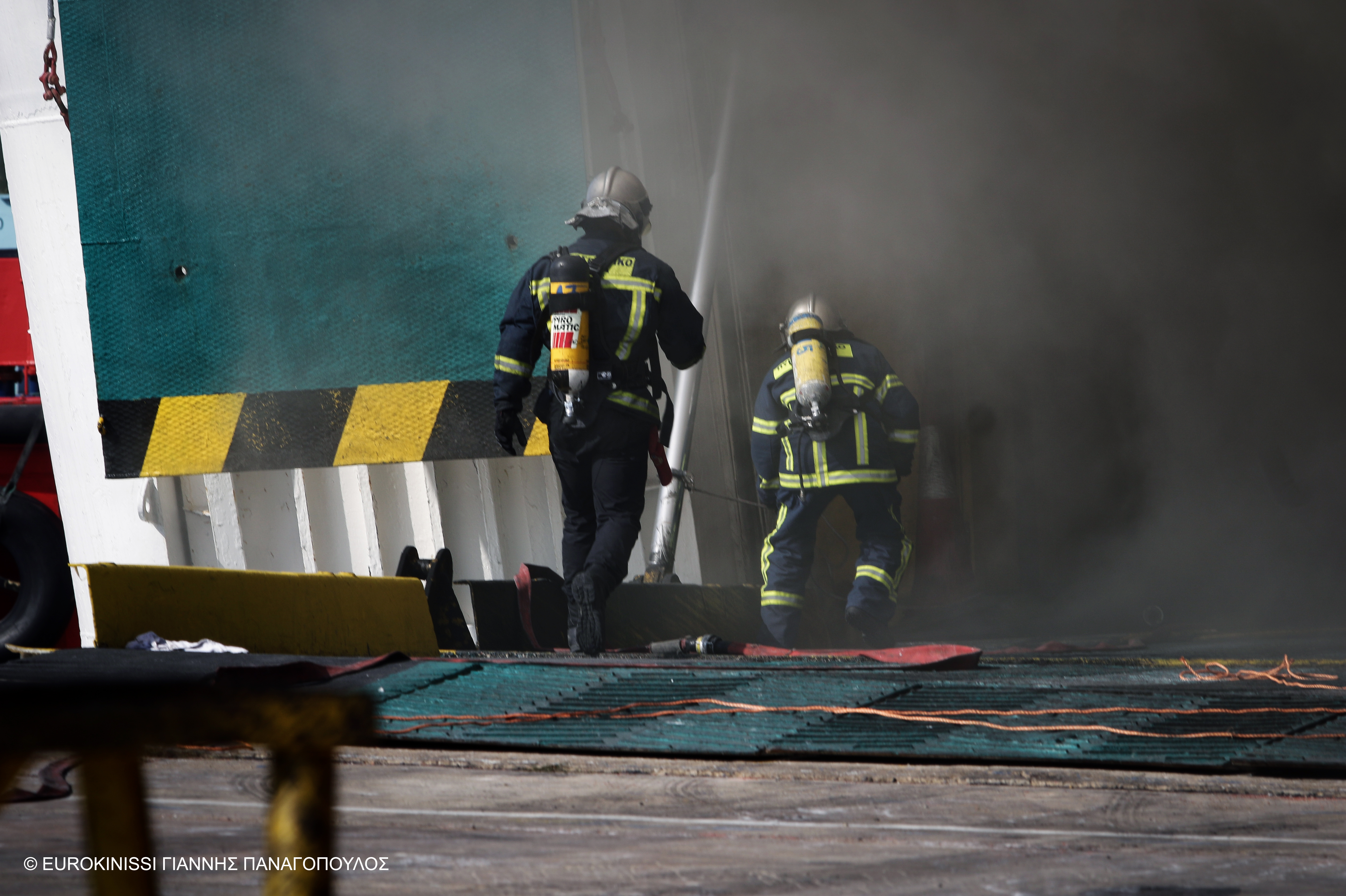 11_23_2018 - Φωτογραφικό στιγμιότυπο από επιχείρηση κατάσβεσης πυρκαγιάς σε πλοίο. 11_23_2018