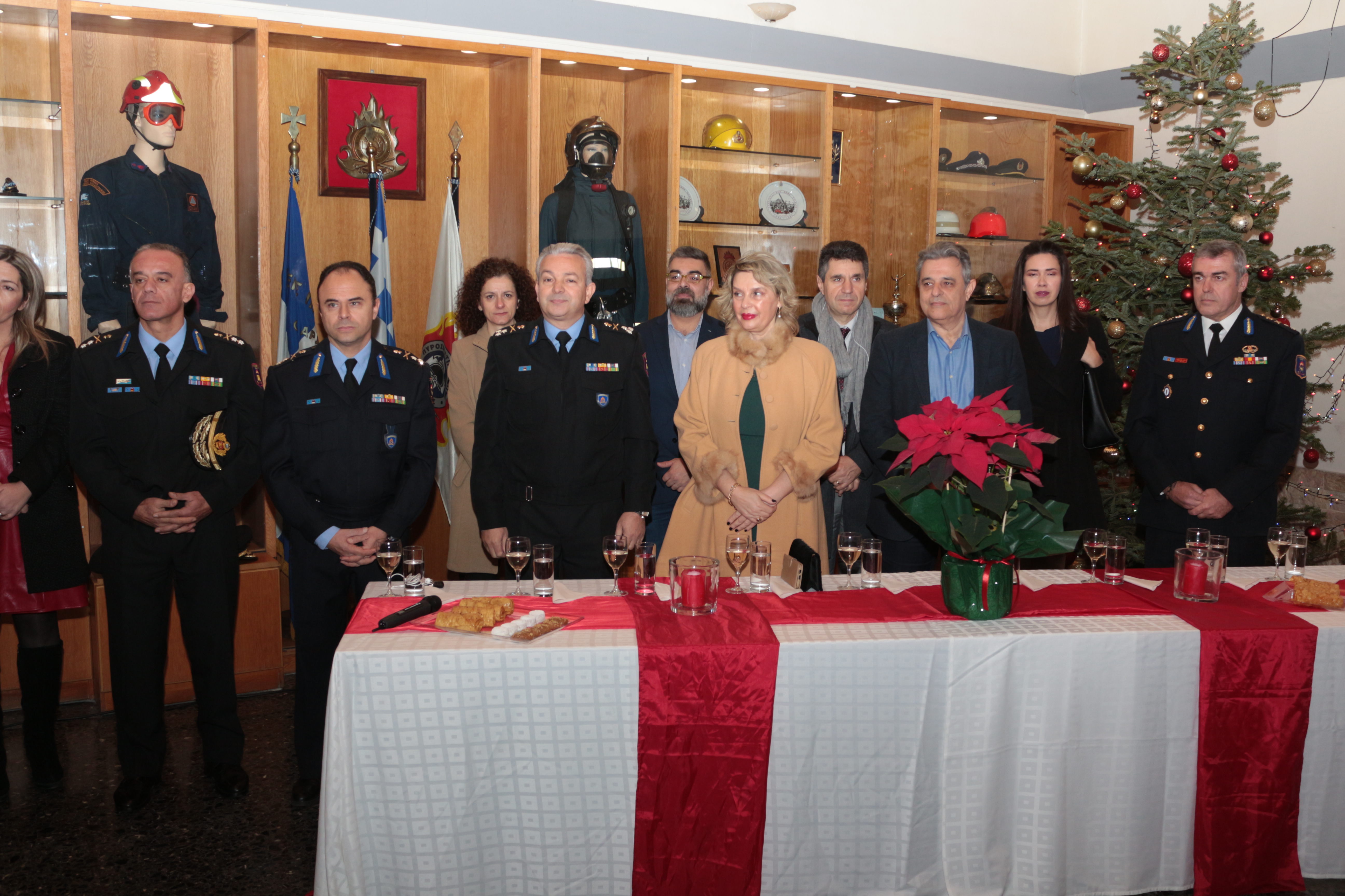 Παρουσία της Υφυπουργού Προστασίας του Πολίτη Αικατερίνης Παπακώστα – Σιδηροπούλου, του Γενικού Γραμματέα Πολιτικής Προστασίας Γιάννη Ταφύλλη, του Υπαρχηγού Επιχειρήσεων Αντιστράτηγου ΠΣ Κωνσταντίνου Γιόβα, του Συντονιστή Υποστήριξης Υποστράτηγου ΠΣ Ιωάννη Ράμφου, του Διοικητή Περιφερειακής Πυροσβεστικής Διοίκησης Αττικής Υποστράτηγου ΠΣ Αχιλλέα Τζουβάρα και του Συντονιστή Επιχειρήσεων με έδρα τον Πειραιά Υποστράτηγου ΠΣ Στέφανου Κολοκούρη, ακούστηκαν και φέτος τα κάλαντα της Πρωτοχρονιάς από τη μεικτή μπάντα του Πυροσβεστικού Σώματος και της Ελληνικής Αστυνομίας, στην εορταστική εκδήλωση που πραγματοποιήθηκε σήμερα 31 Δεκεμβρίου, στις εγκαταστάσεις του Αρχηγείου του Πυροσβεστικού Σώματος.