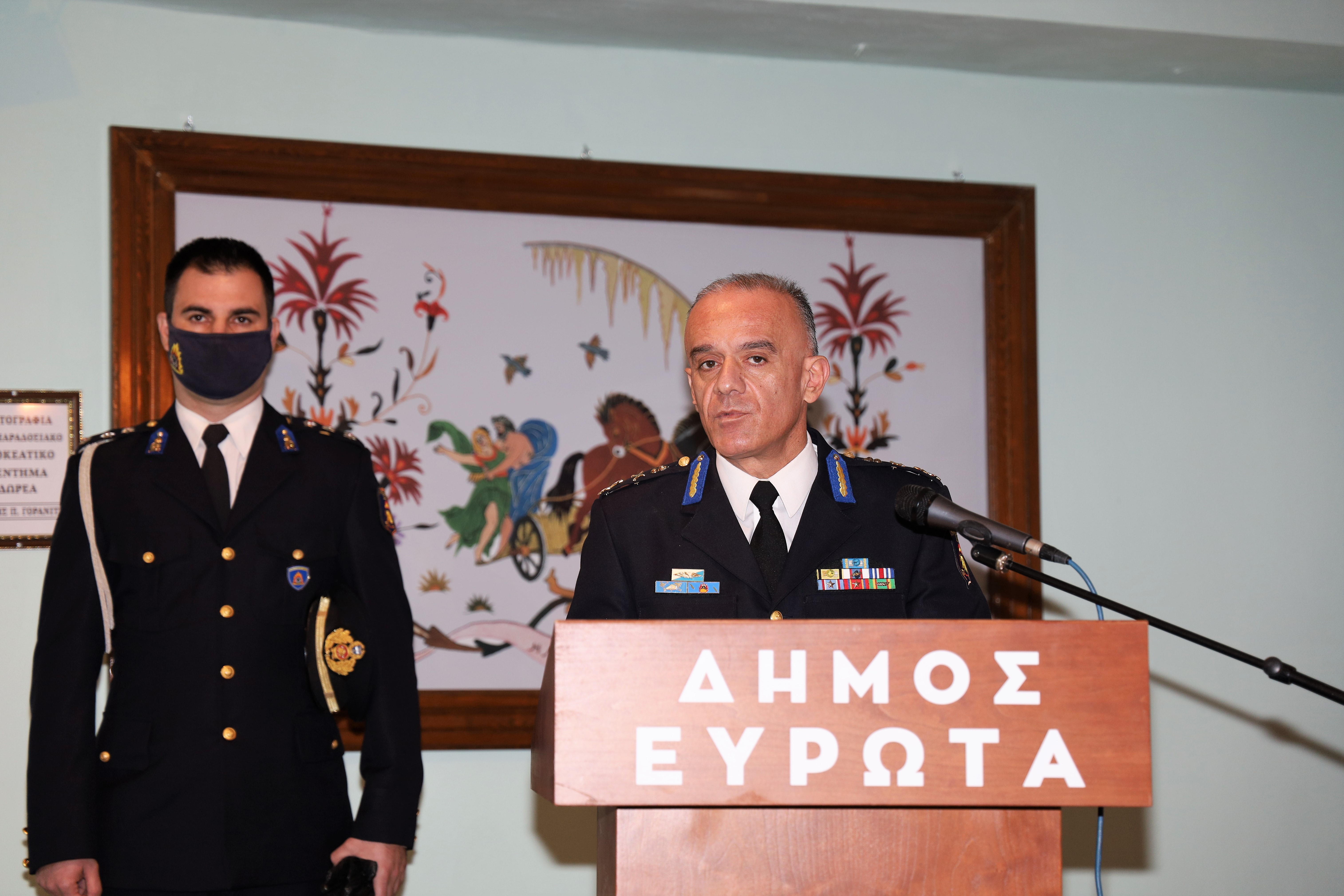 Στη συνέχεια, ο Αρχηγός του Πυροσβεστικού Σώματος Αντιστράτηγος Στέφανος Κολοκούρης απηύθυνε σύντομο χαιρετισμό τονίζοντας ότι: «… σας ευχαριστώ που μας κάνετε την τιμή να παραβρίσκεστε σήμερα εδώ,  στην τελετή εγκαινίων του Πυροσβεστικού  Εθελοντικού Κλιμακίου Κροκεών του Δήμου Ευρώτα, μια μέρα πριν την την 5η Δεκεμβρίου, η οποία  καθιερώθηκε το 1985 από τον ΟΗΕ, ως η Παγκόσμια Ημέρα Εθελοντισμού.