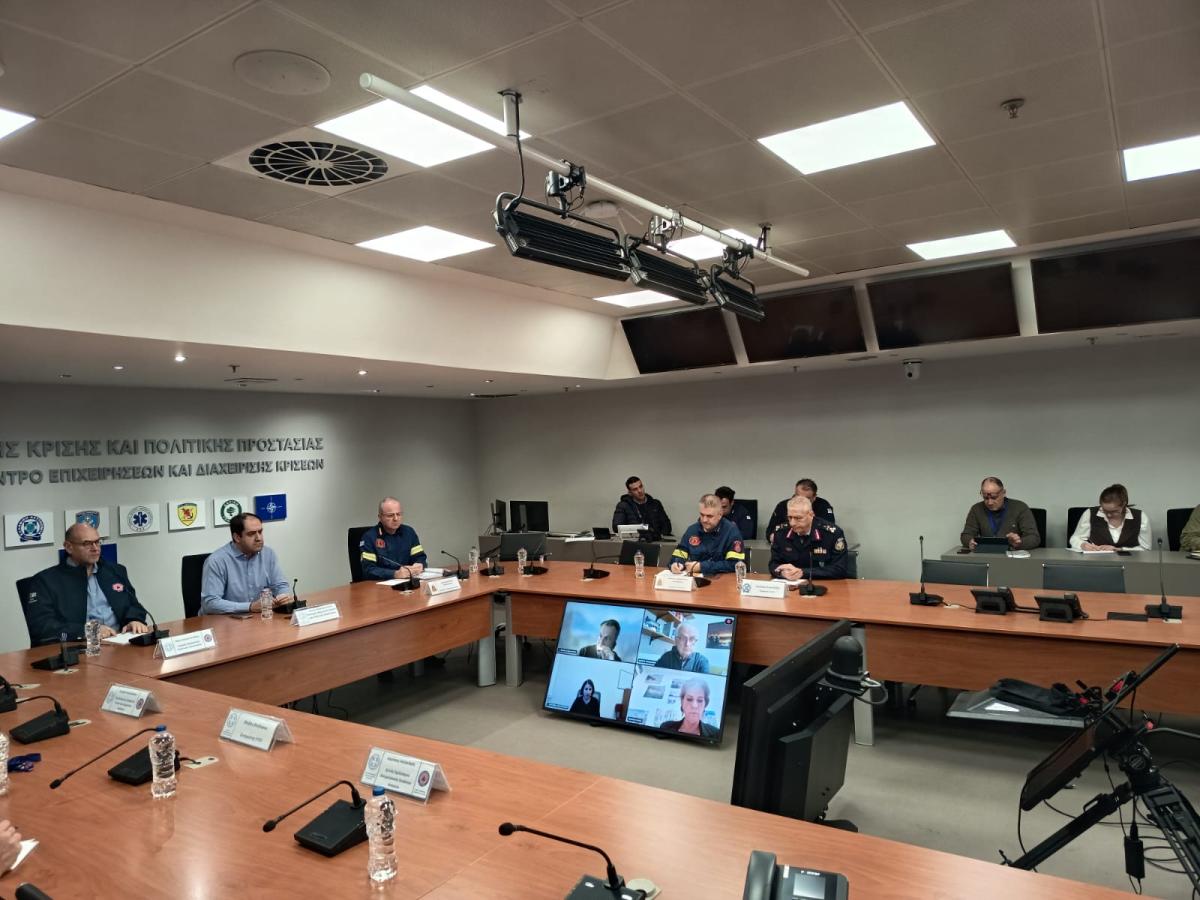 Το Εθνικό Συντονιστικό Κέντρο Επιχειρήσεων και Διαχείρισης Κρίσεων (Ε.Σ.Κ.Ε.ΔΙ.Κ.) βρίσκεται διαρκώς σε επικοινωνία με τους ΟΤΑ Α’ και Β’ βαθμού, καθώς και με όλους τους εμπλεκόμενους φορείς για την εξέλιξη των καιρικών φαινομένων προκειμένου να υπάρχει η αντίστοιχη επιχειρησιακή ετοιμότητα και αντιμετώπιση των συνεπειών αυτών.
