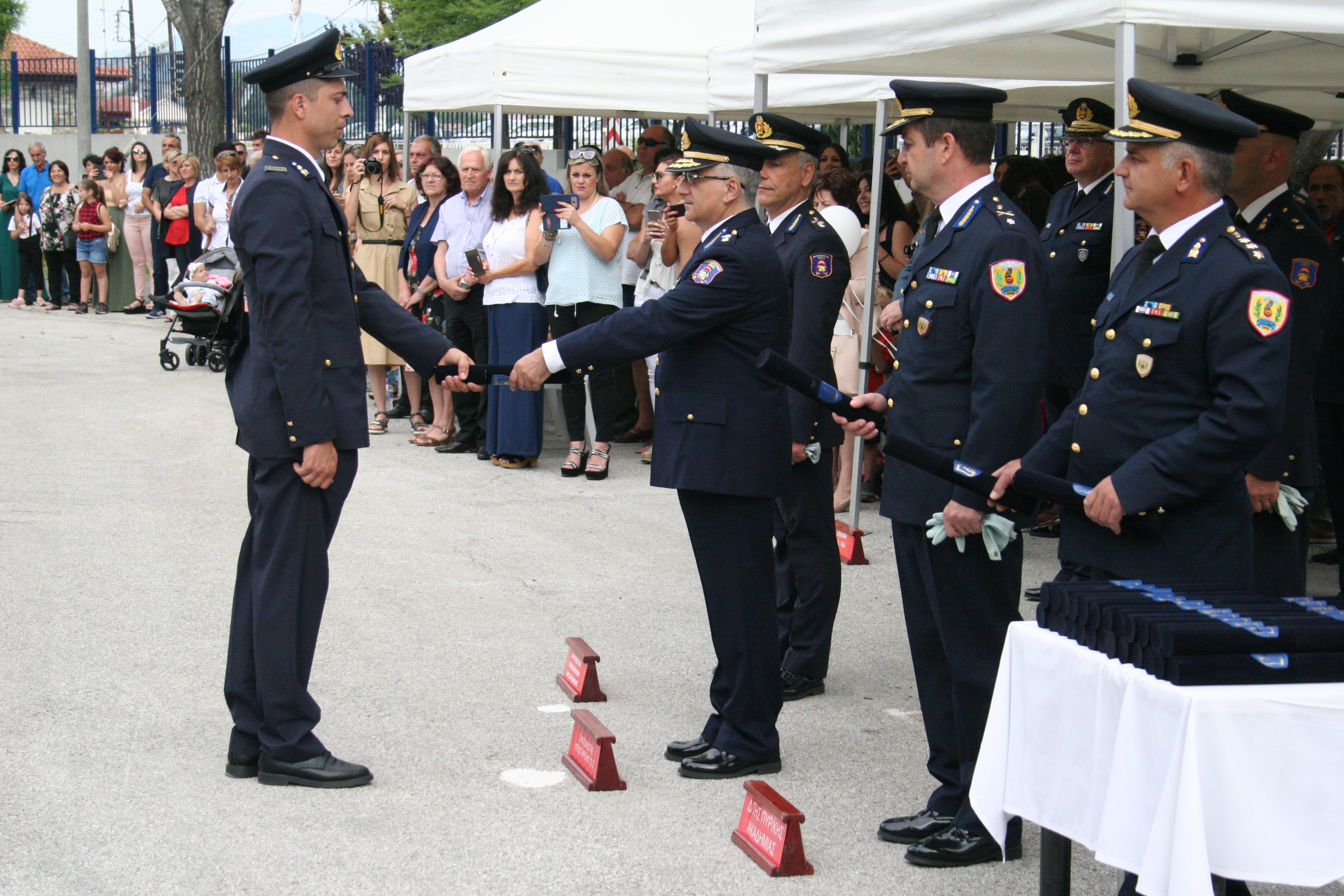 Επίσης παραβρέθηκαν, Αξιωματικοί του Πυροσβεστικού Σώματος, Πυροσβέστες καθώς και συγγενείς και φίλοι των νέων Πυροσβεστών.