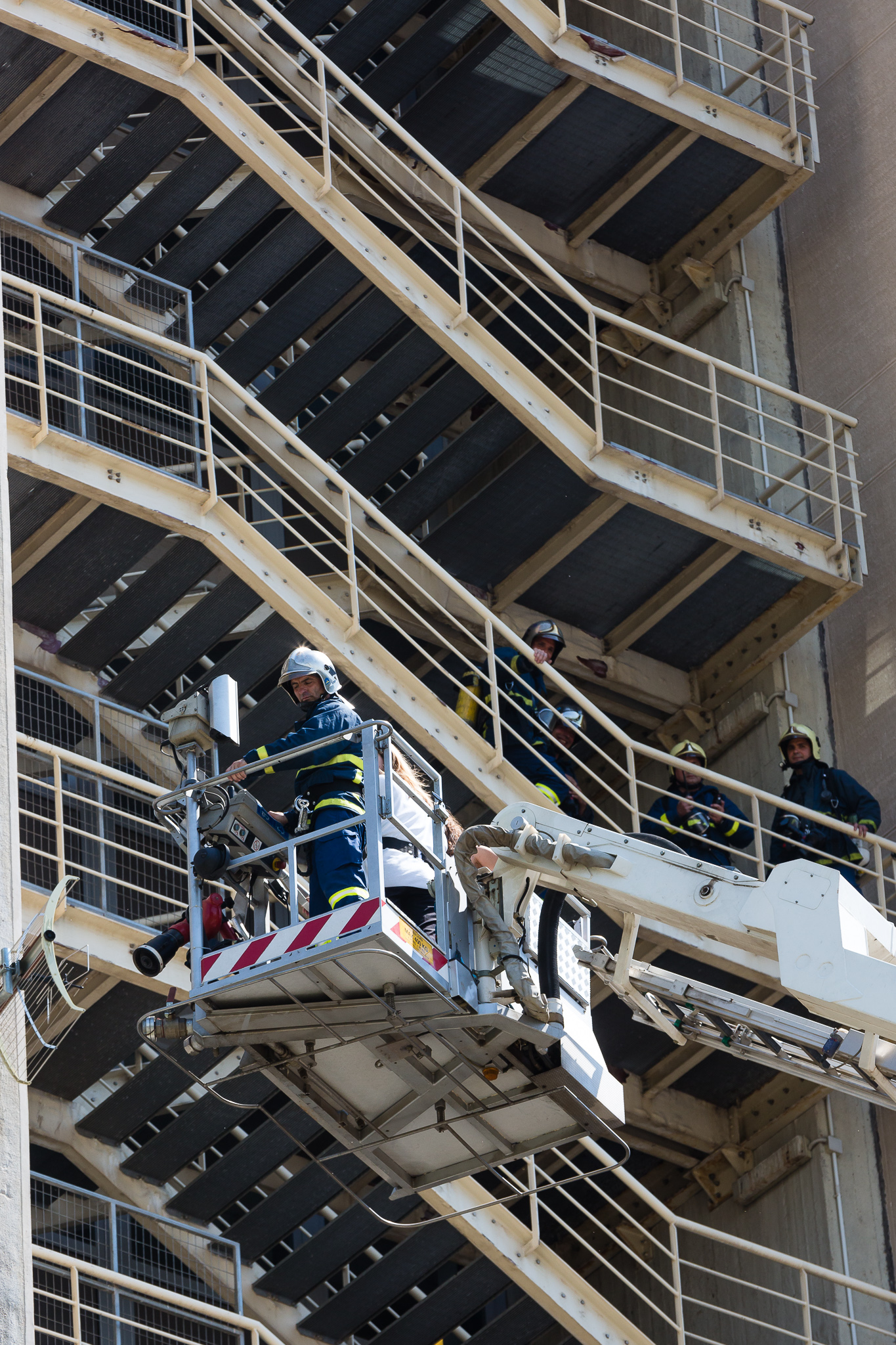 Η πυρκαγιά γίνεται αντιληπτή από τους υπαλλήλους του γραφείου, οι οποίοι και προσπαθούν να την κατασβήσουν με τη χρήση φορητών πυροσβεστήρων, όμως αποτυγχάνουν λόγω της γρήγορης εξάπλωσής της. Ταυτόχρονα ενεργοποιείται το σύστημα πυρανίχνευσης και ειδοποιείται η Πυροσβεστική Υπηρεσία, ενώ παράλληλα δίνεται εντολή για την εκκένωση του ορόφου, καθώς και του υποκείμενου και υπερκείμενου αυτού. Επειδή υπάρχει κίνδυνος διάχυσης των καπνών και σε άλλους ορόφους, λαμβάνεται η απόφαση για την πλήρη εκκένωση του κτιρίου. Στο σημείο καταφθάνουν οι πρώτες πυροσβεστικές δυνάμεις που προσεγγίζουν τον 6ο όροφο ενεργώντας κατάσβεση και έλεγχο για διαπίστωση τυχόν εγκλωβισμένων ατόμων. Μετά το πέρας της καταμέτρησης στους χώρους συγκέντρωσης, επιβεβαιώνεται η ύπαρξη εγκλωβισμένων ατόμων. Καταφθάνουν τα ειδικά οχήματα (διασωστικά, βραχιονοφόρα, κλιμακοφόρα) που πραγματοποιούν ρίψη νερού εξωτερικά του κτιρίου στο ύψος του 6ου ορόφου και ξεκινά επιχείρηση διάσωσης από το εξωτερικό μεταλλικό κλιμακοστάσιο στο ύψος του 9ου ορόφου.